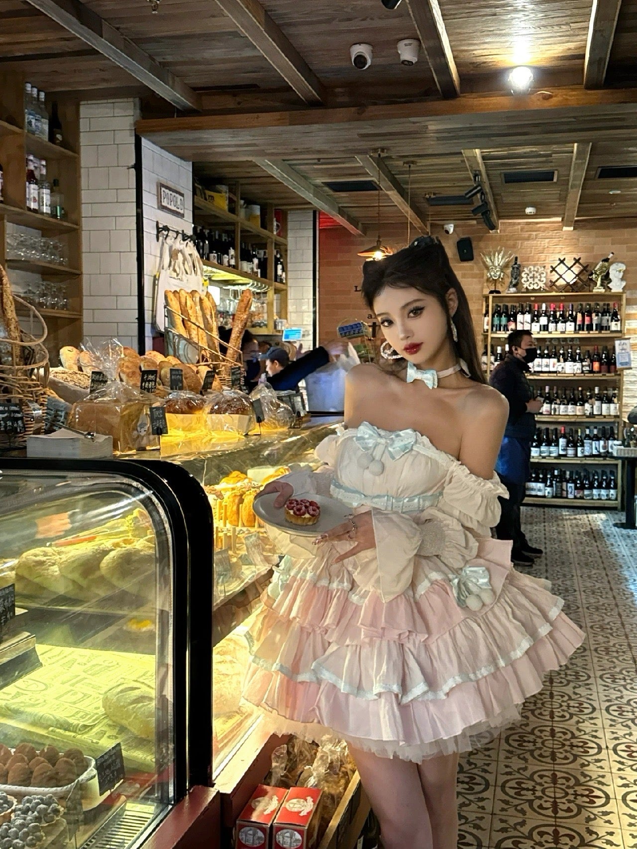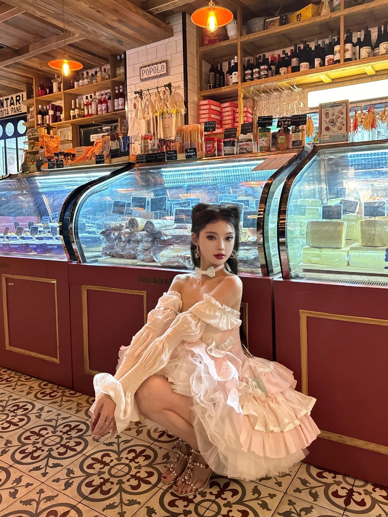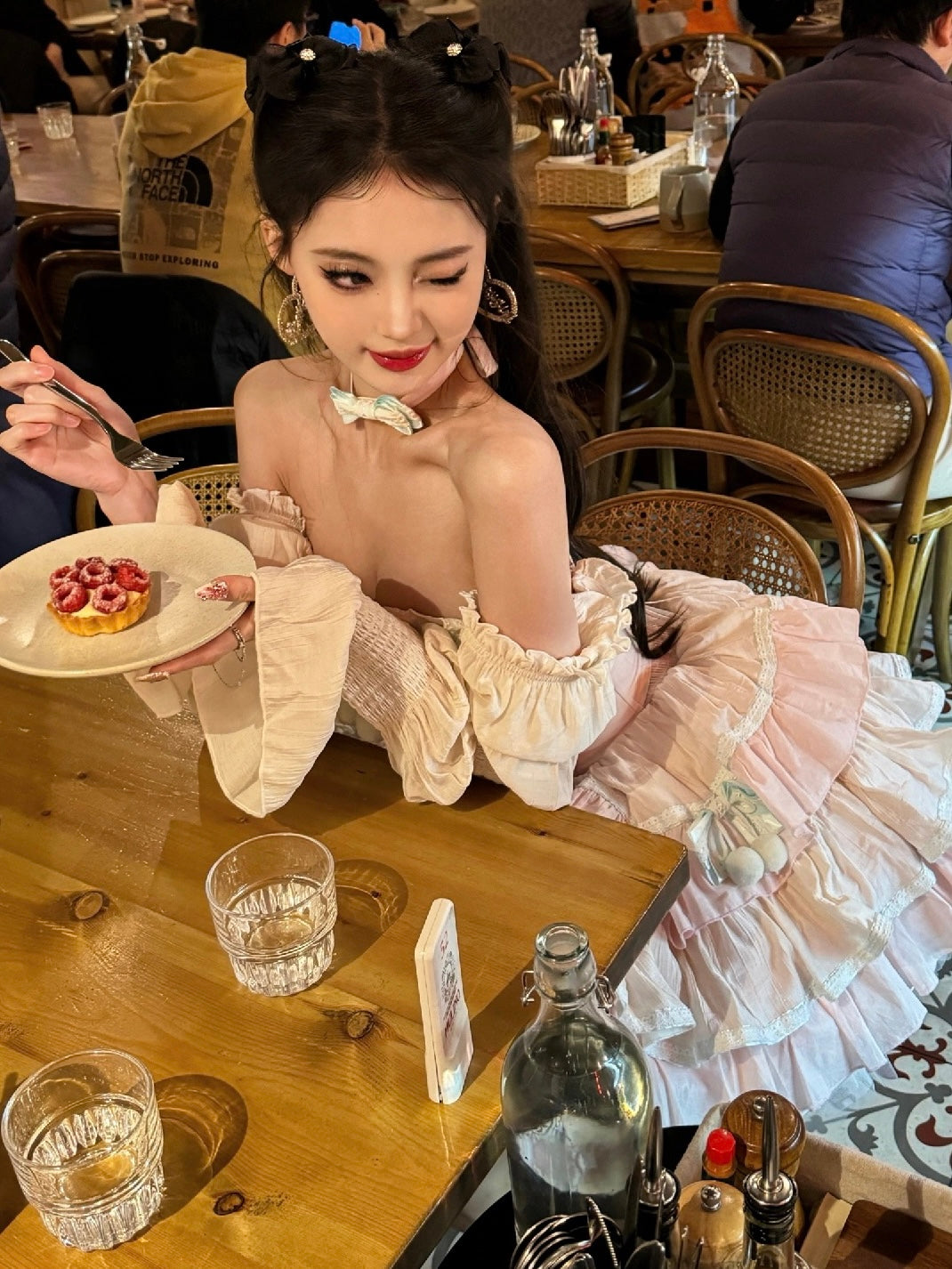 ピンクと白のオールドスクールロリータファッションドレス、蝶結びディテール、ロリータJSKセット