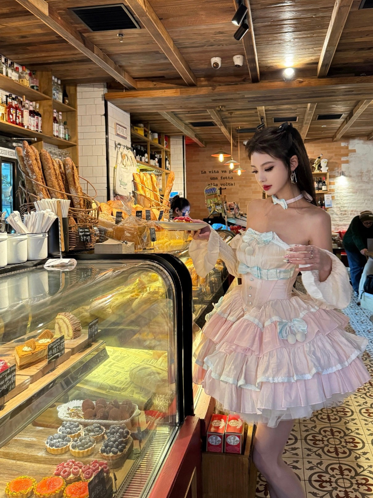 ホワイトとピンクのロリータボンネットチョーカー