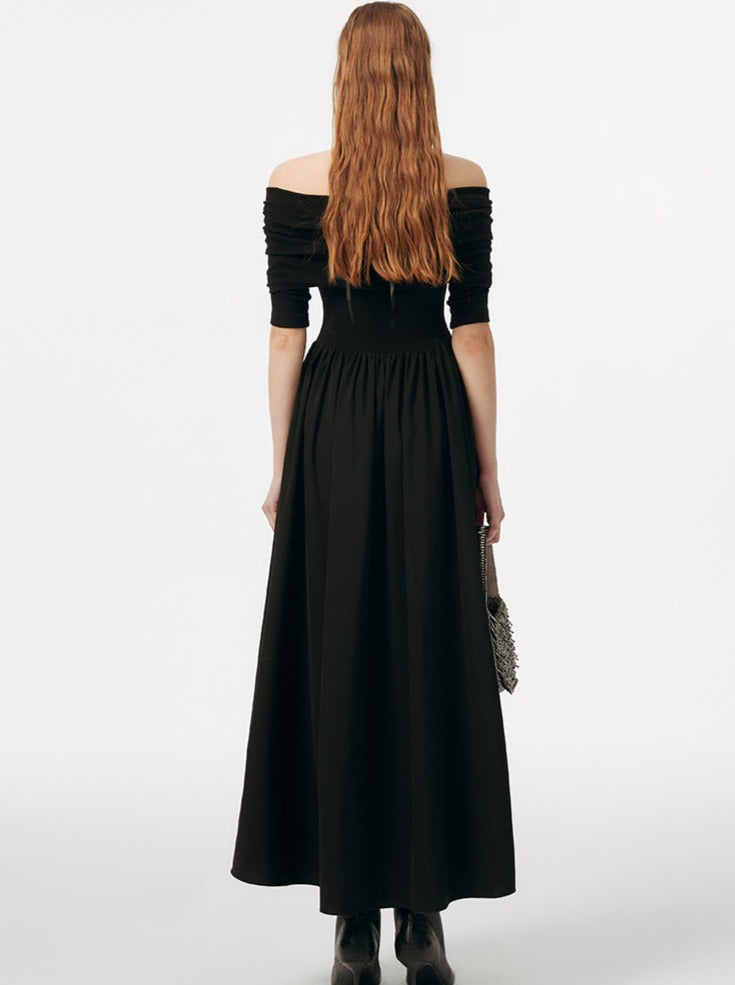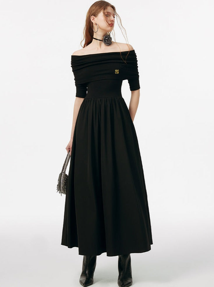 このモードなオフショルダーロングドレスは、キュートでありながらシックな雰囲気を求める方にぴったりです。デコルテを美しく見せるオフショルダーデザインと、ロング丈がエレガントな雰囲気をプラス。このドレスで存在感を放ち、どこへ行っても注目を集めること間違いなしです。