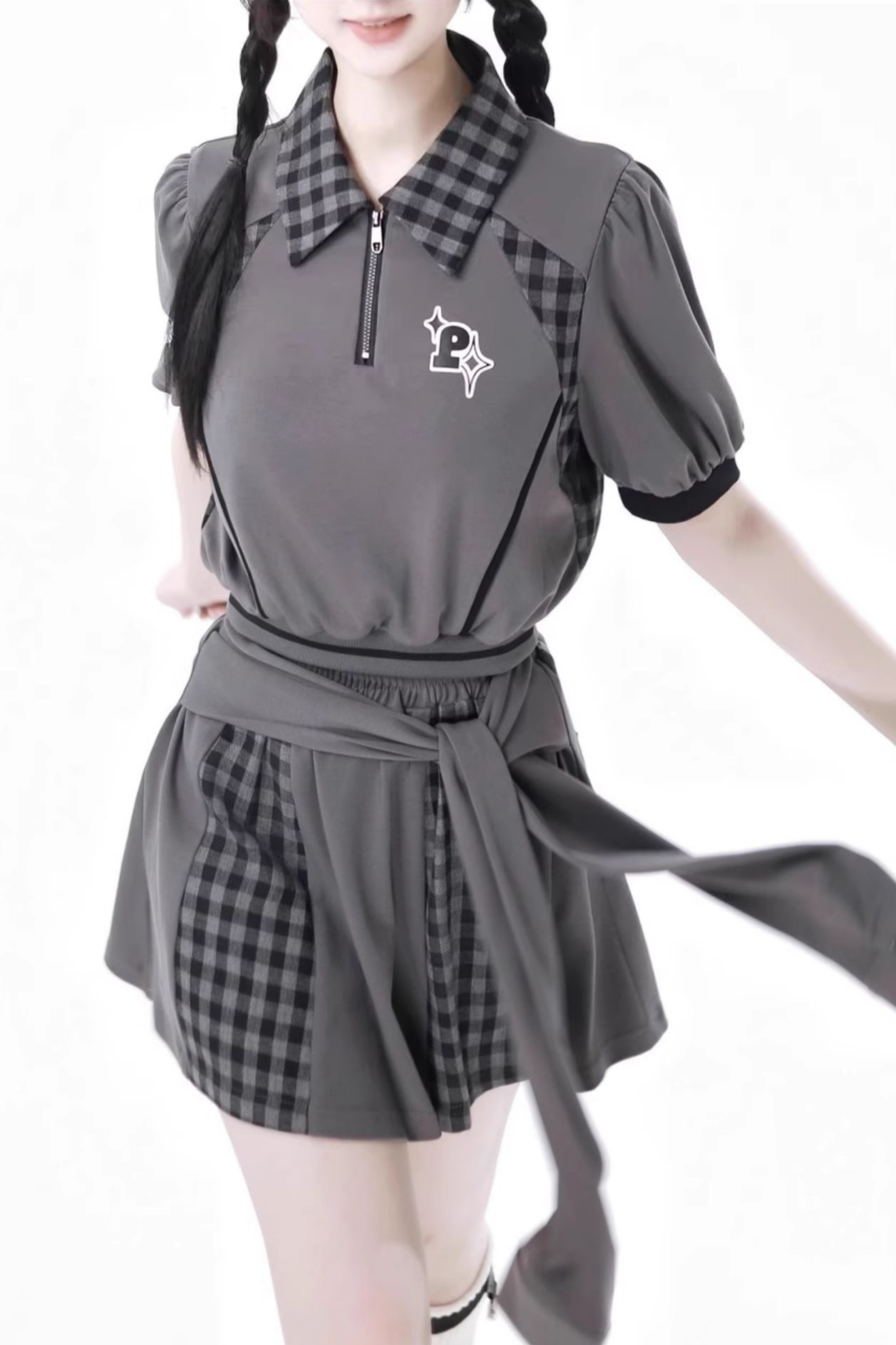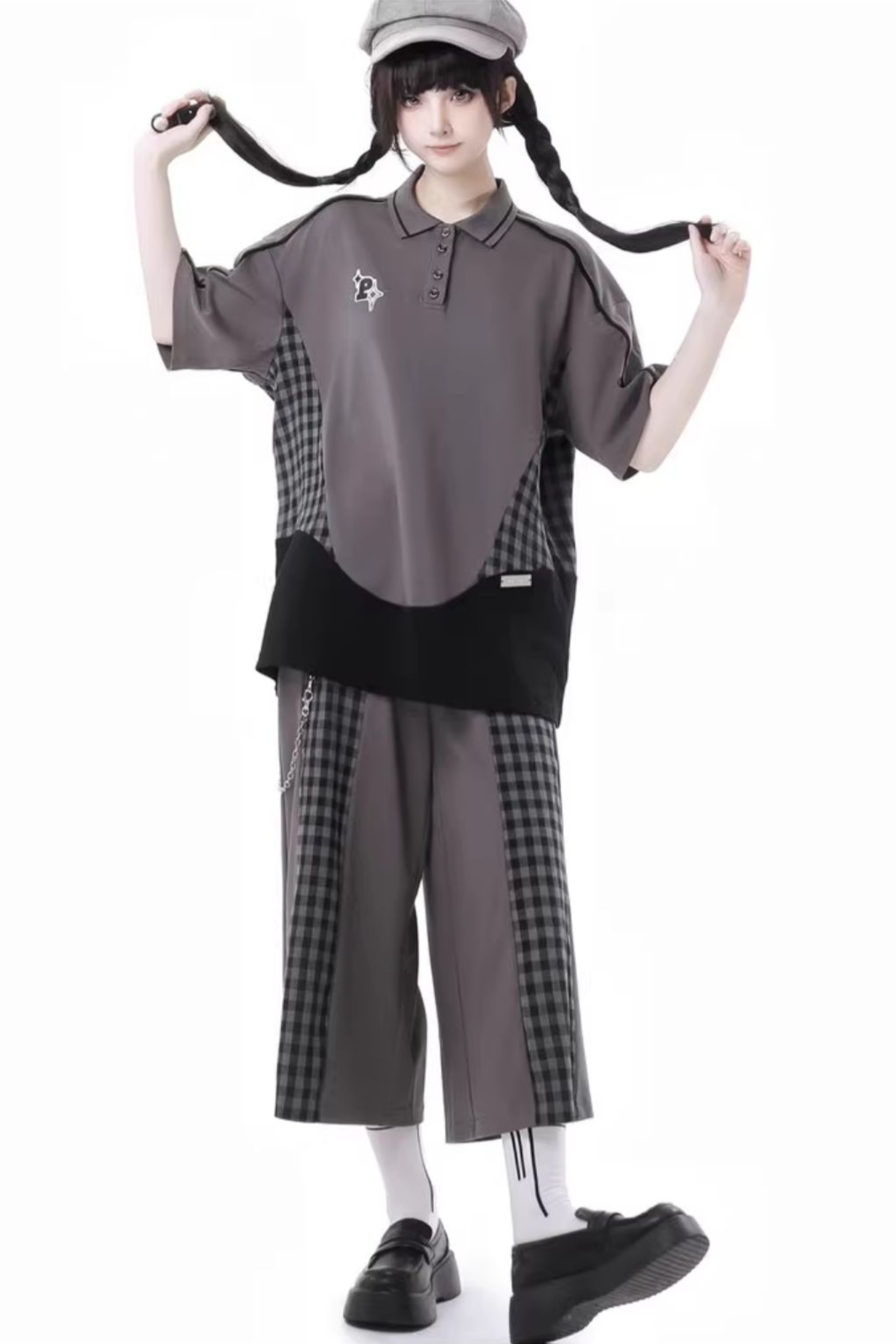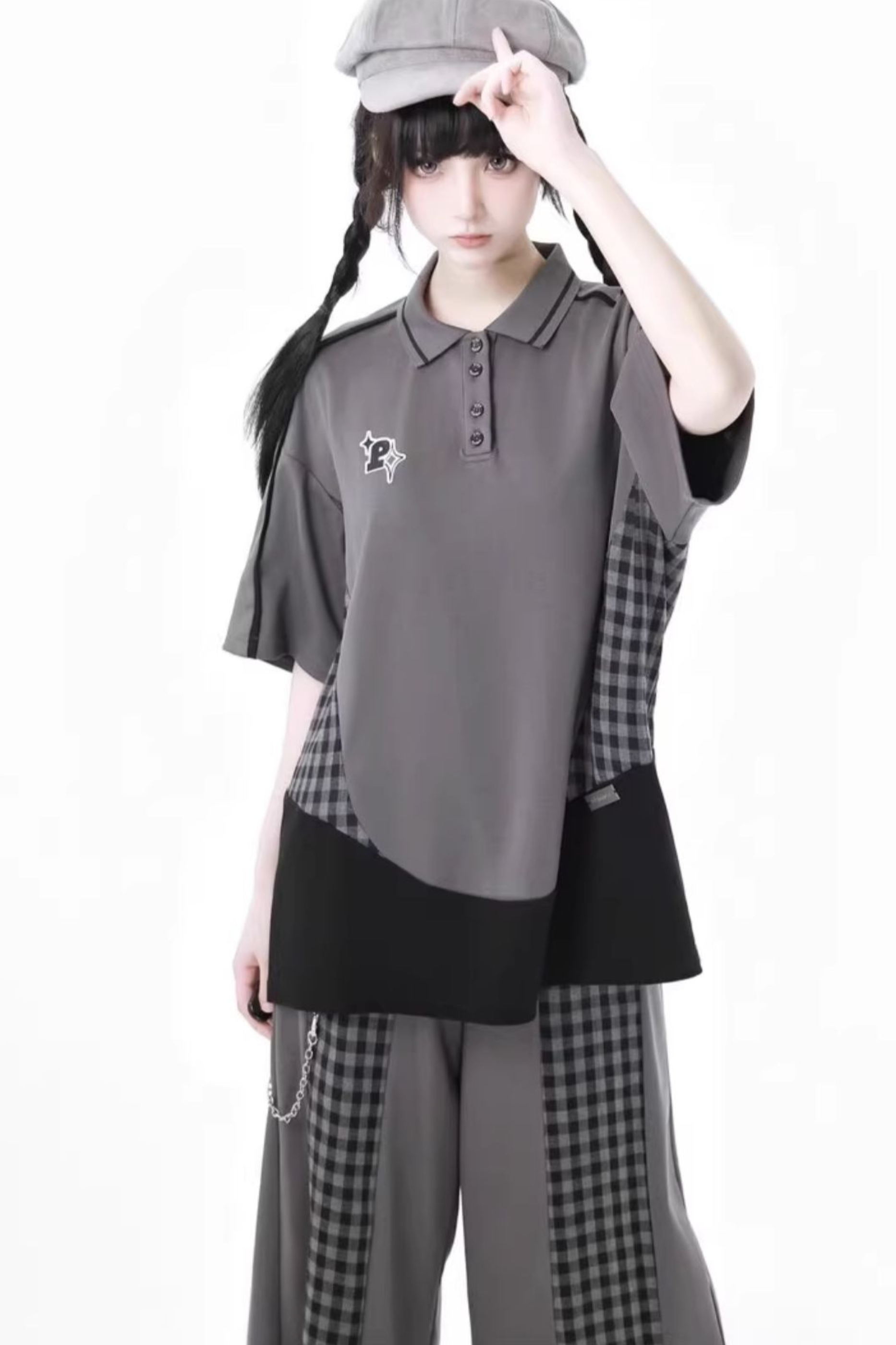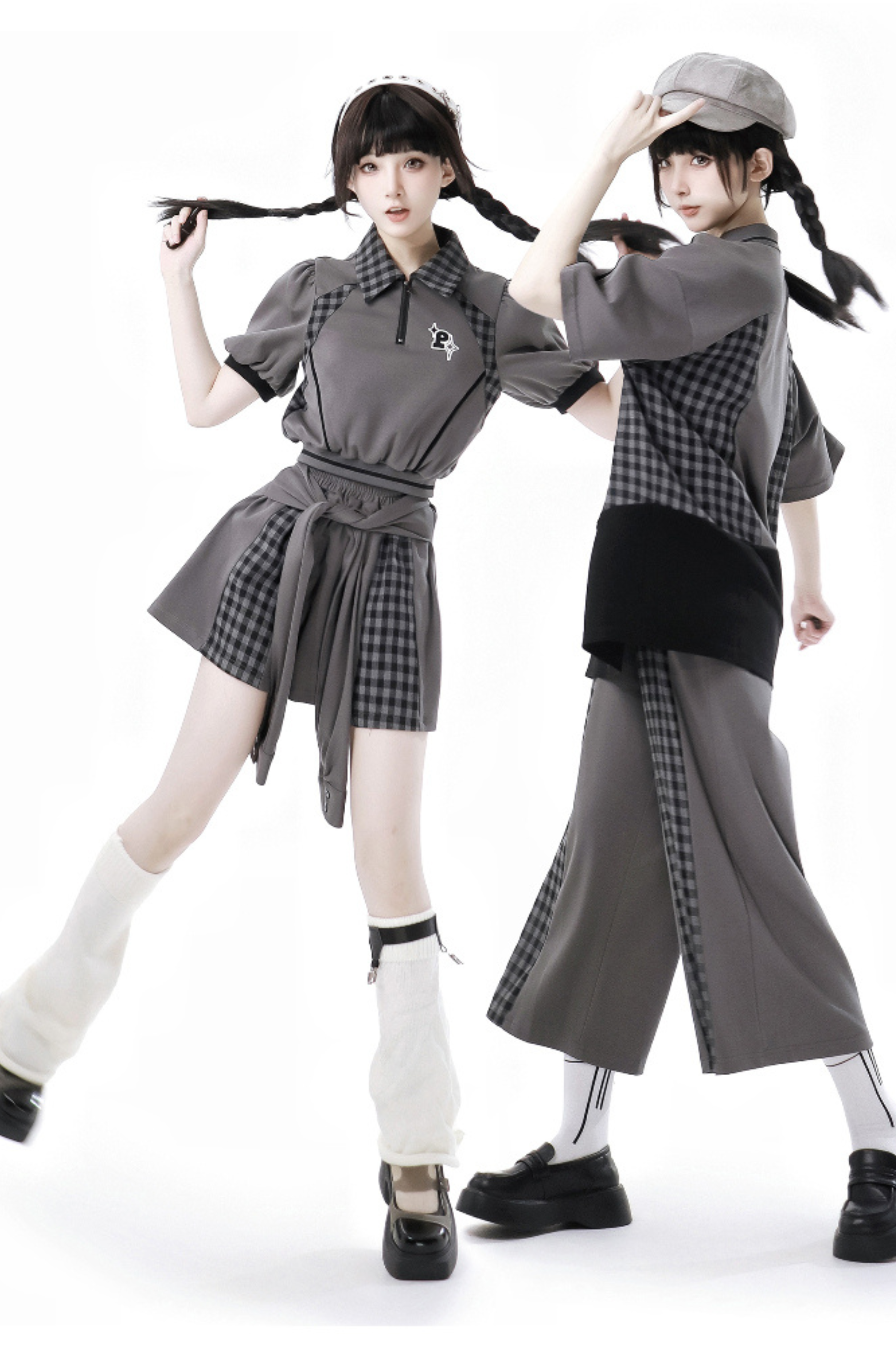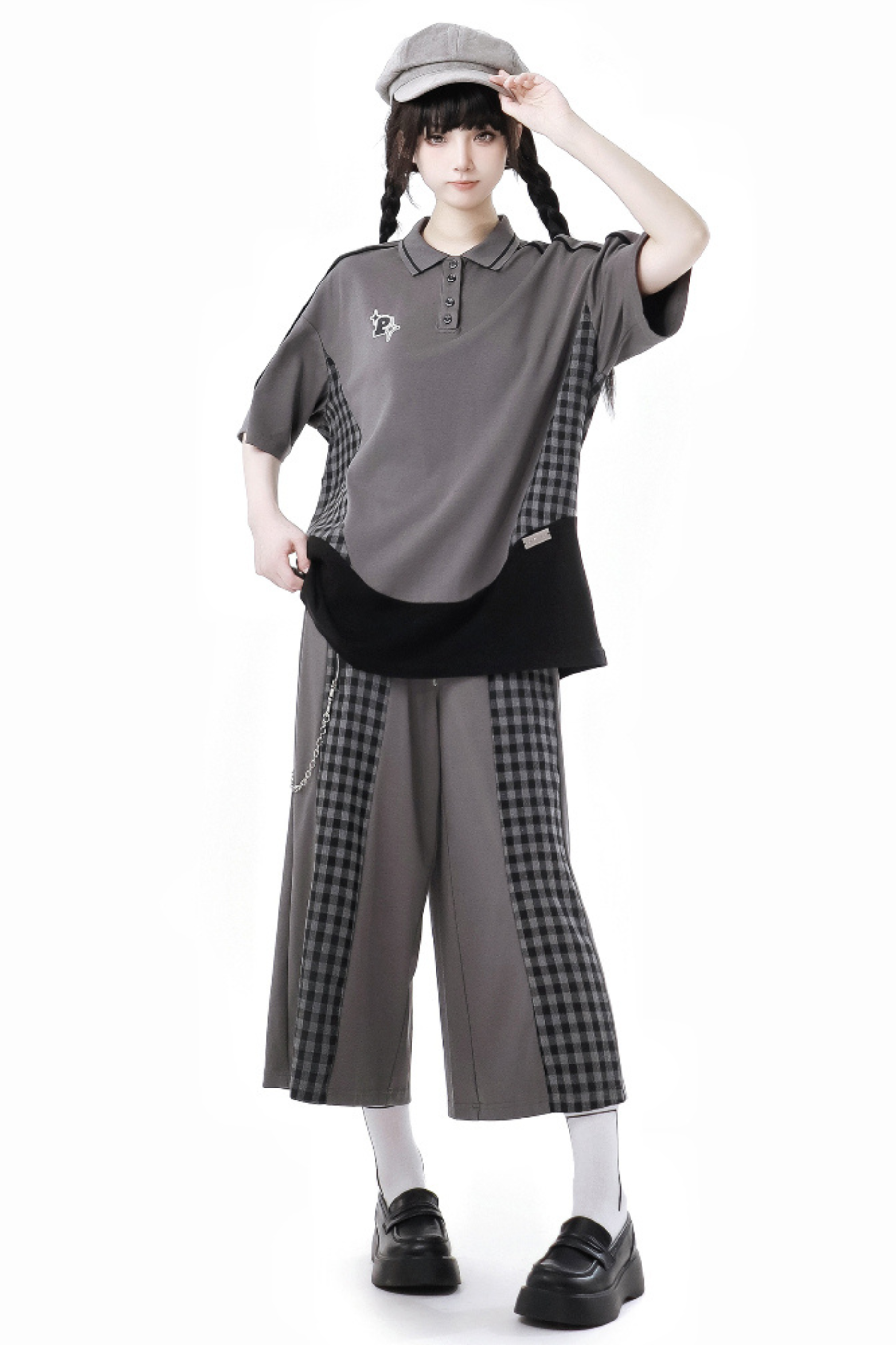 ❤モードチェックトップス+スカート+カジュアルワイドパンツ❤