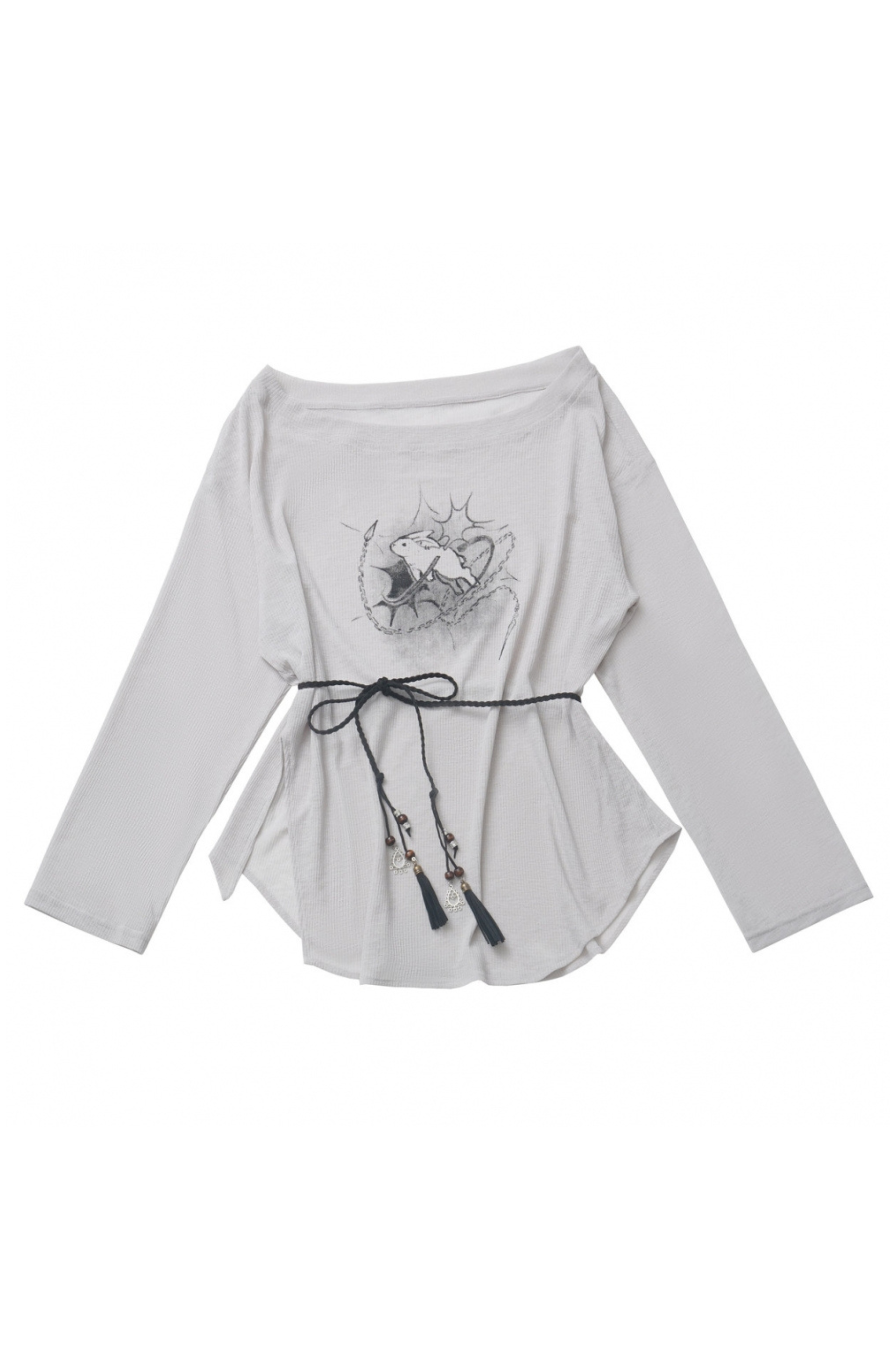 モードなトップスTシャツパンツワイド+デザインレースアップウエスト