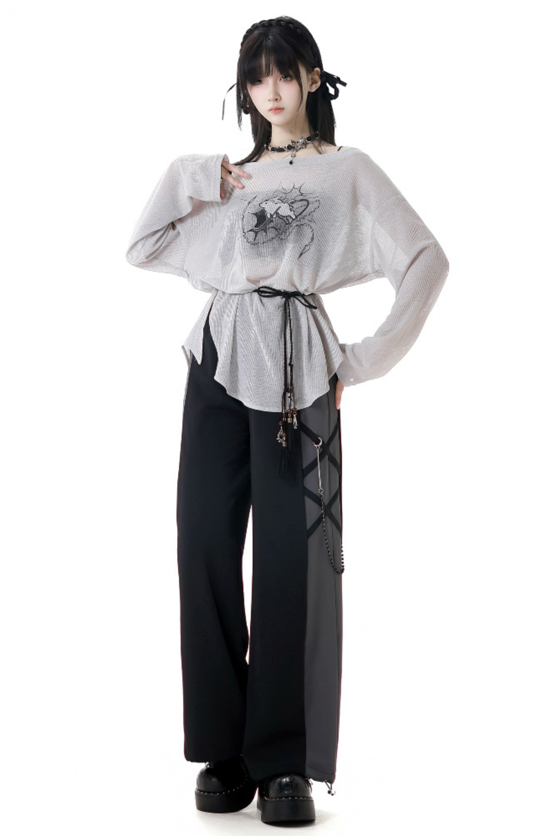 ❤モードなレースアップTシャツ+ウエストデザイントップス+ワイドパンツ❤