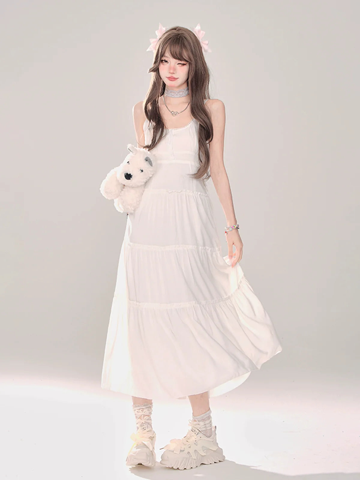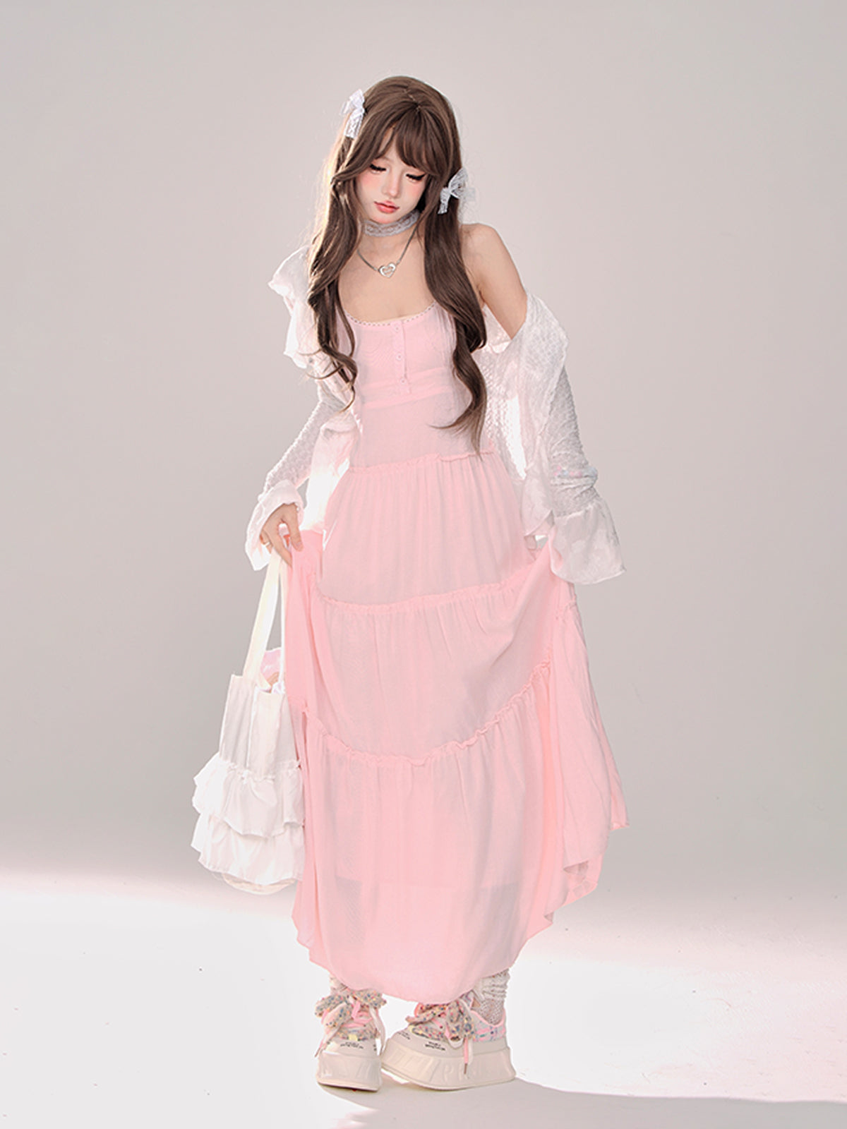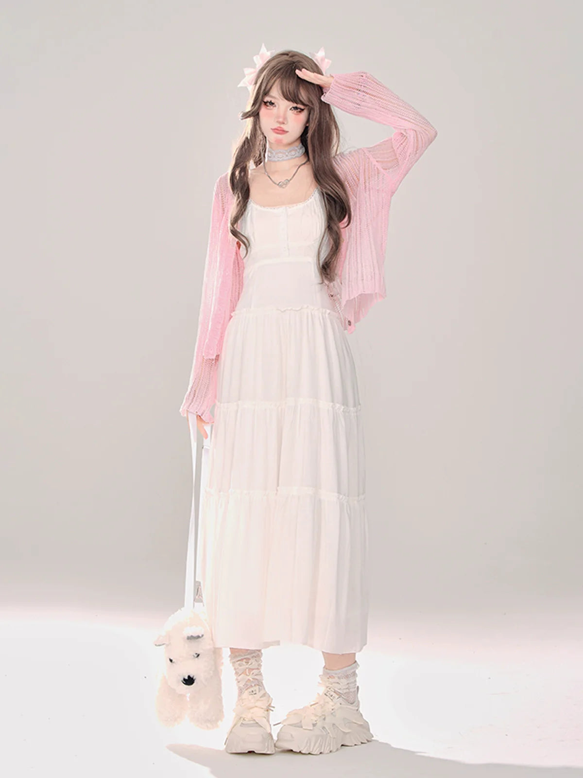 ホワイトとピンクのロリータボンネットチョーカー