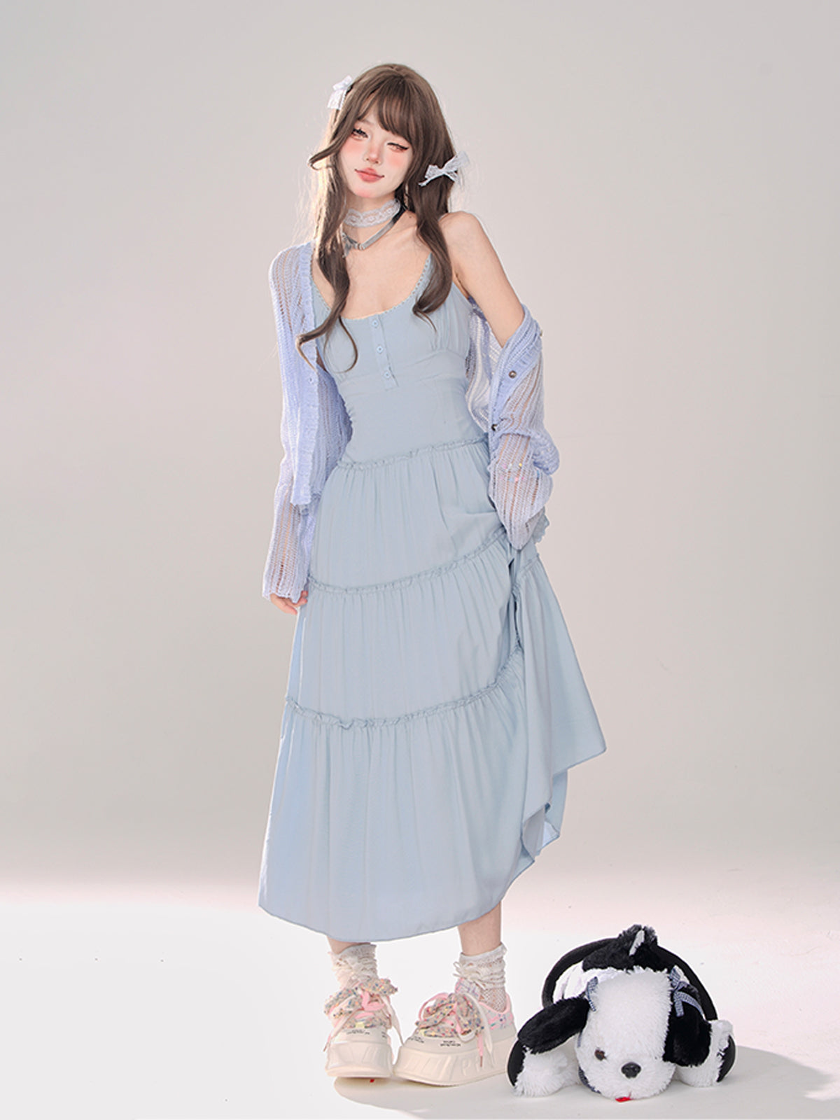 キュートなムーンライト+カーディガンサスペンダーニットのサマードレス(透け感あり)は、ワードローブに華を添えます。繊細なニット素材とサスペンダーがスタイルを格上げし、どんなシーンでも存在感を放ちます。夏の日中や夜にぴったりのこのドレスは、ファッショニスタならマストハブアイテムです。