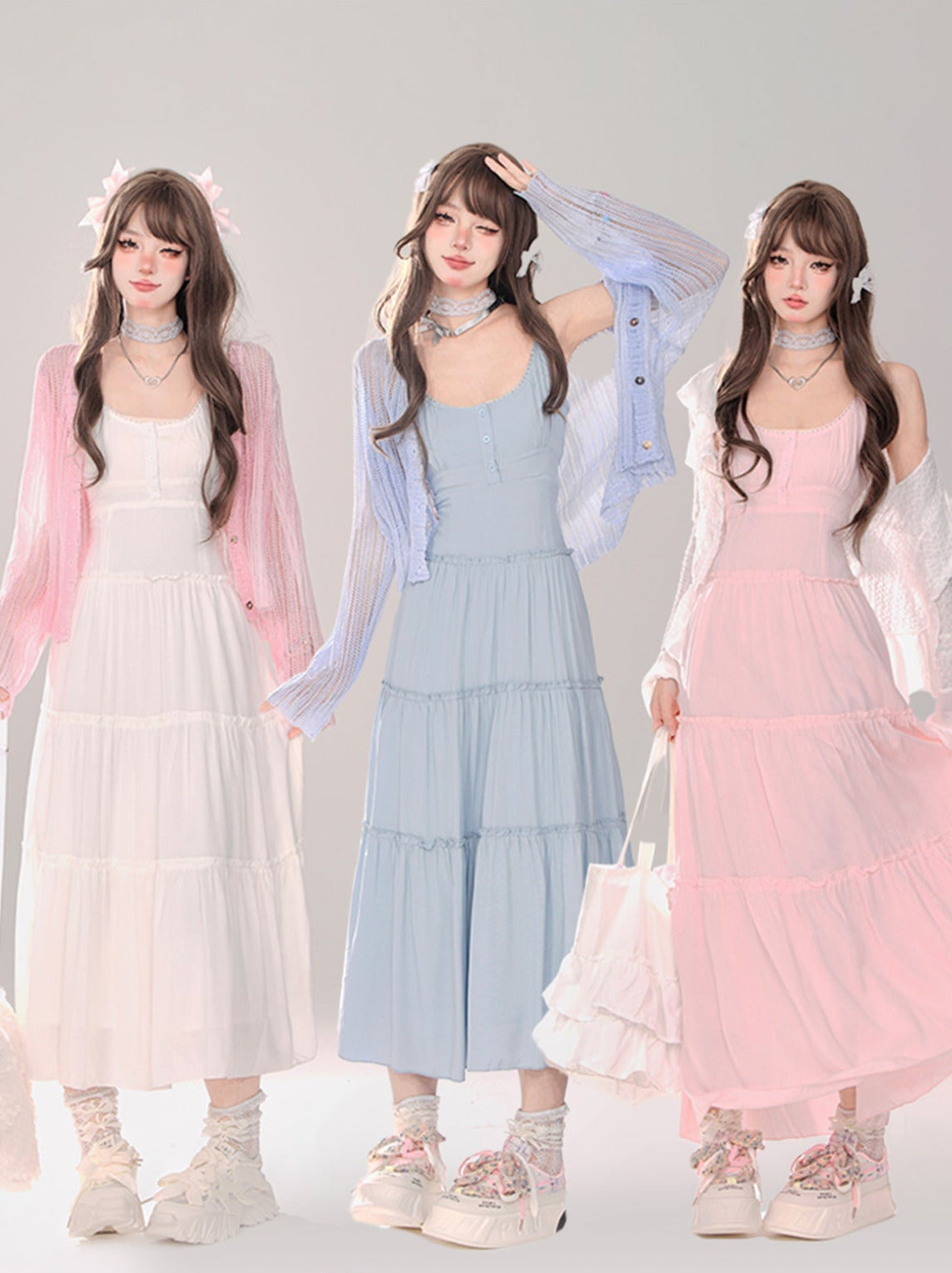 ムーンライト + カーディガン サスペンダー ニット サマードレス シアー