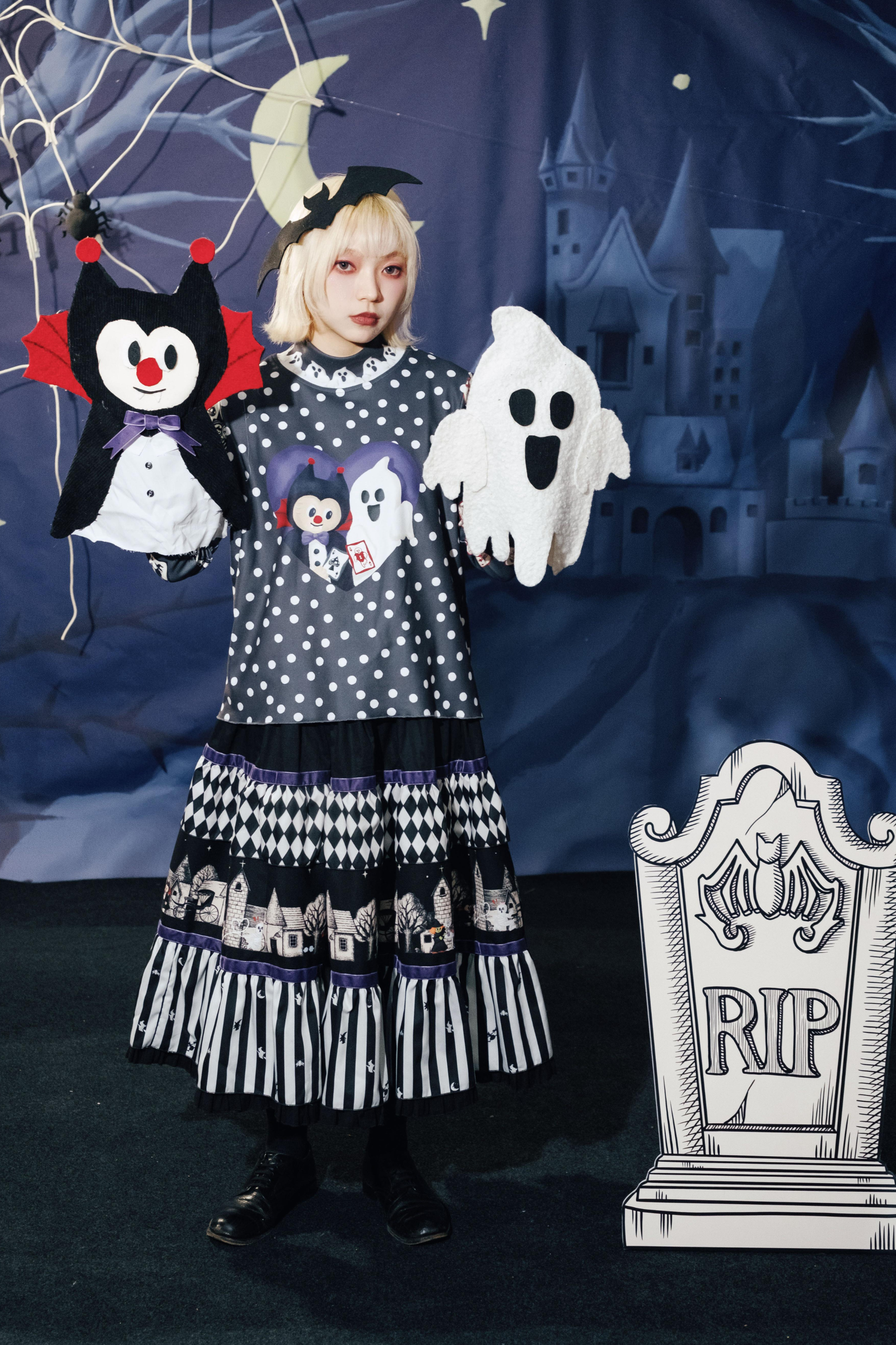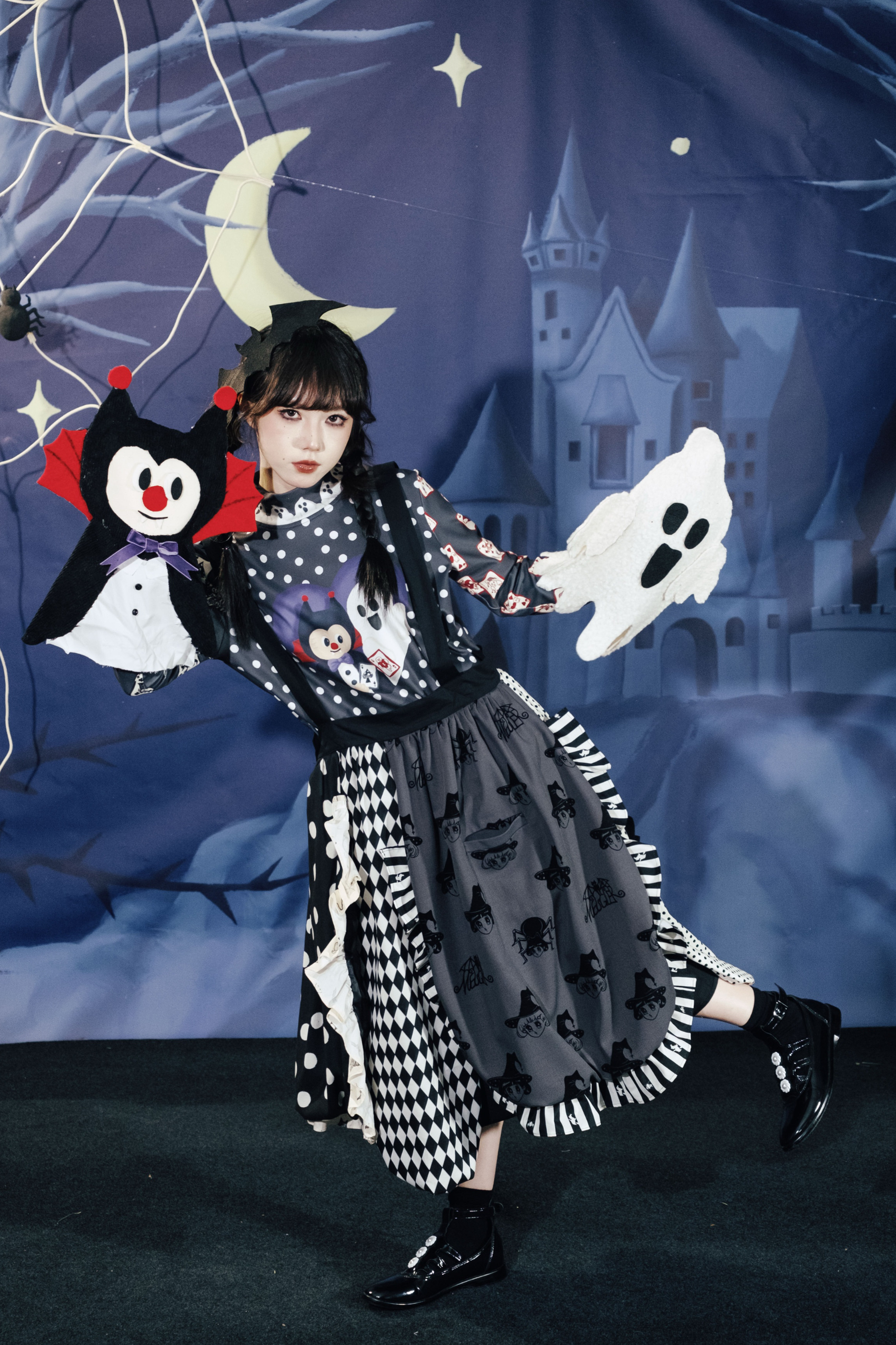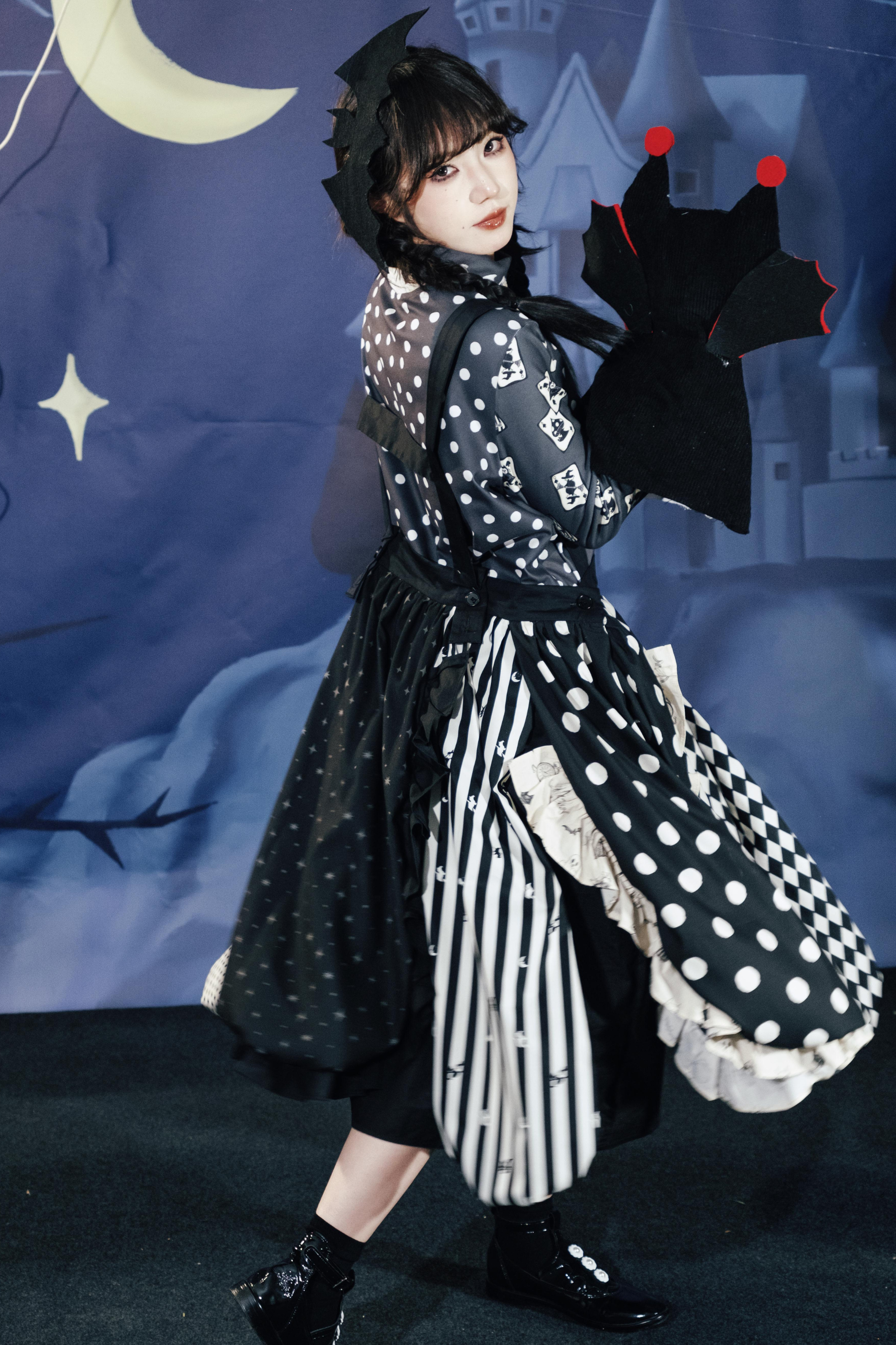 黒と白のオールドスクールロリータファッションドレス蝶結びロリータJSKセット