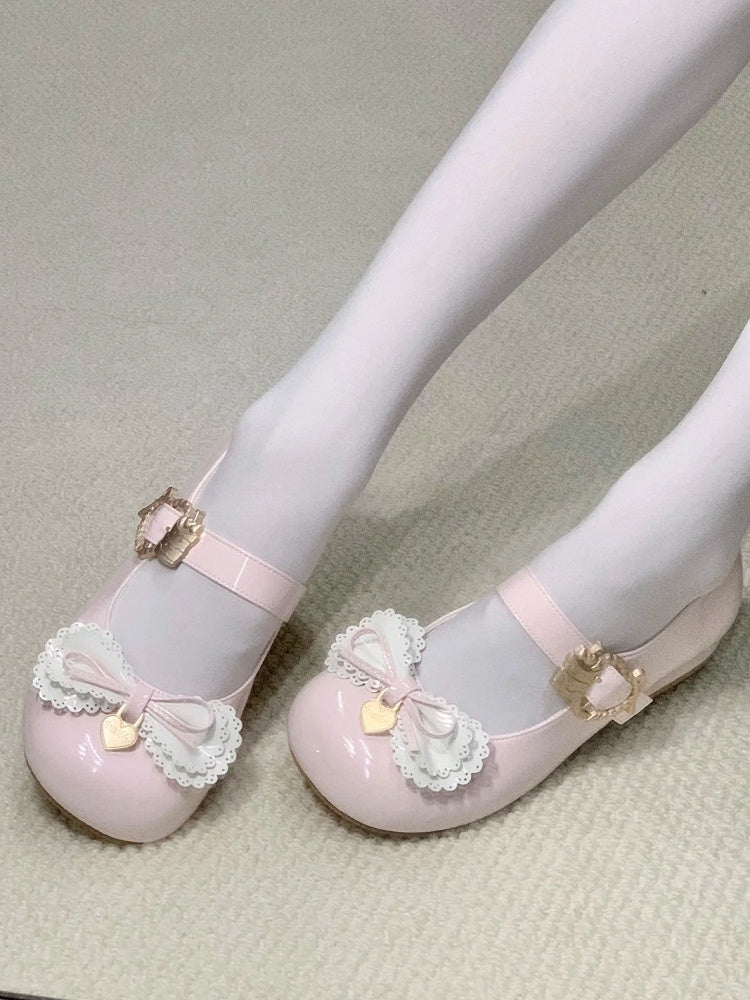Multi-layer Cake Bows Light Pink Buckle Low Heels with Sweet
