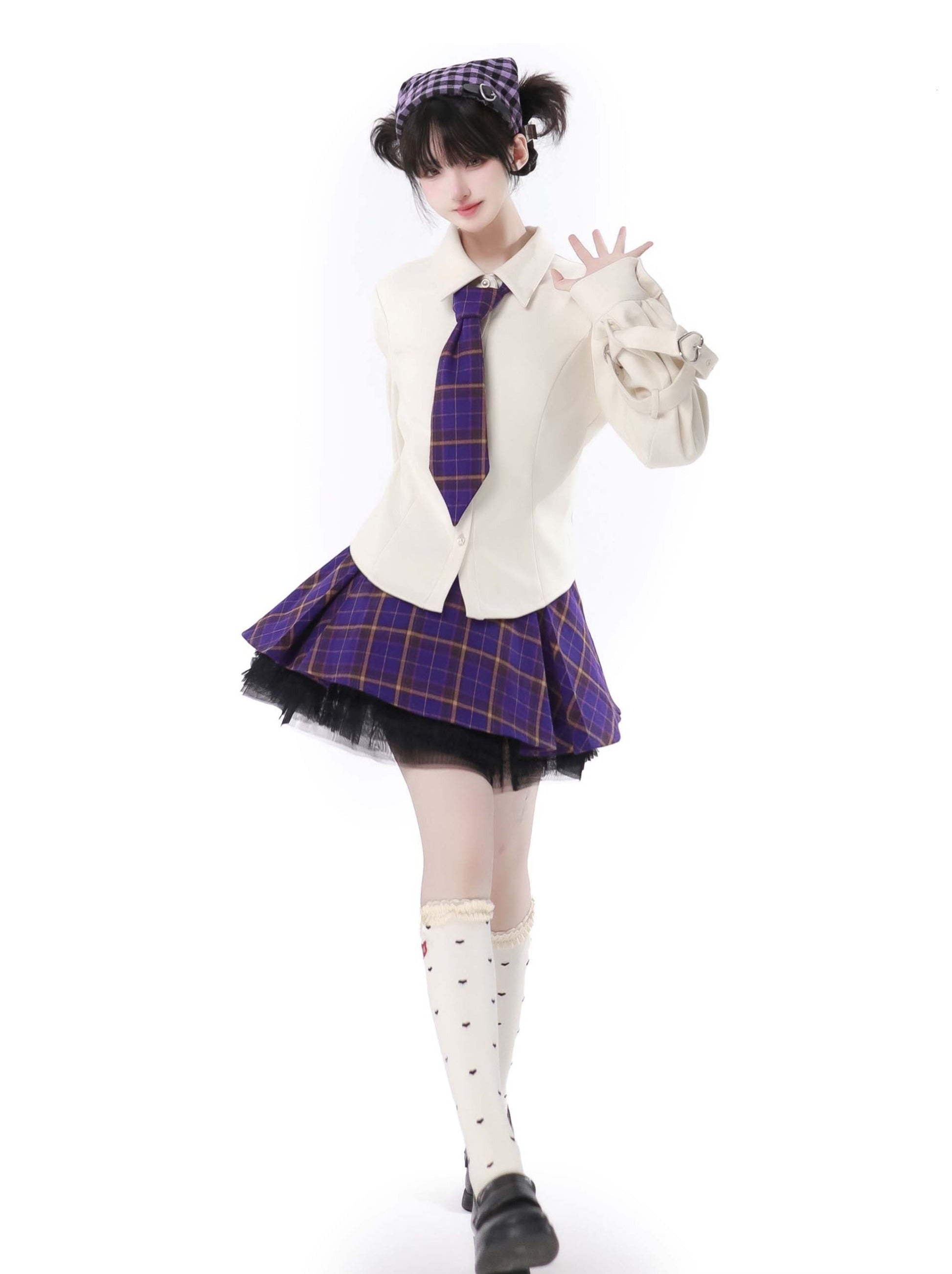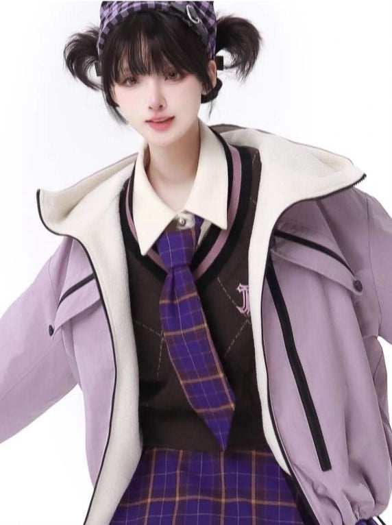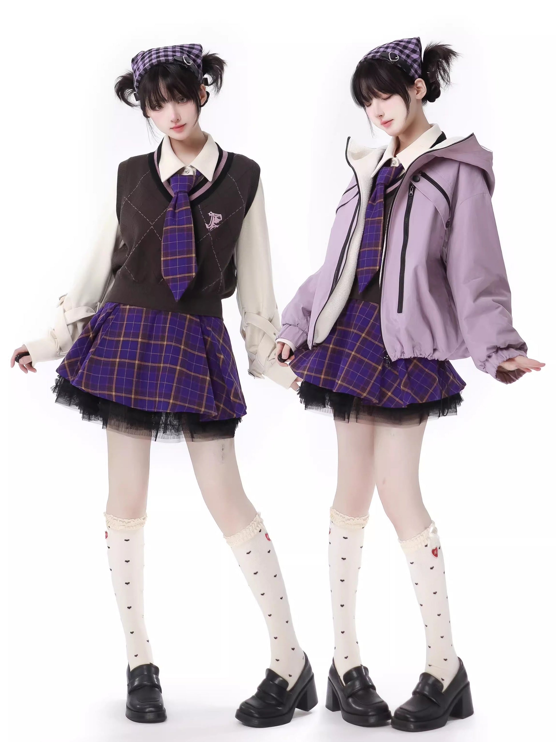 愛らしいマルチポケットのタロ柄パープルジャケットニットベストスカートスーツで、ワードローブをアップデートしましょう!複数のポケットで持ち物をしっかり収納でき、キュートでスタイリッシュな印象に。どんなシーンにもぴったりのこのスーツは、快適でファッショナブルな着こなしを叶えます。
