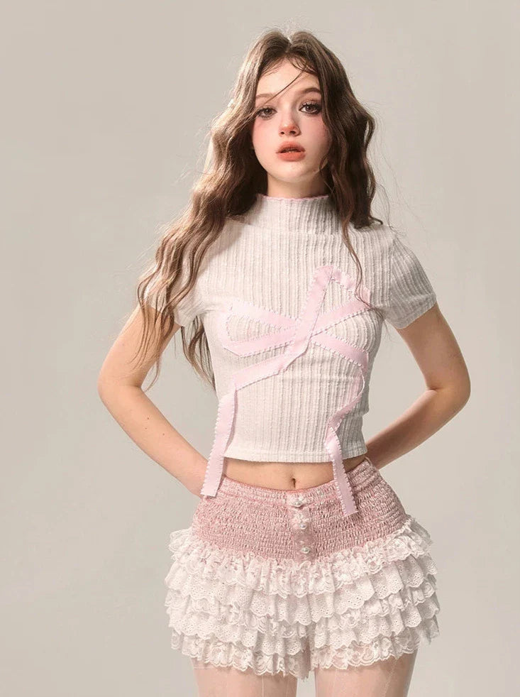 ネックスイートビッグショートアメリカンTシャツハイリボン