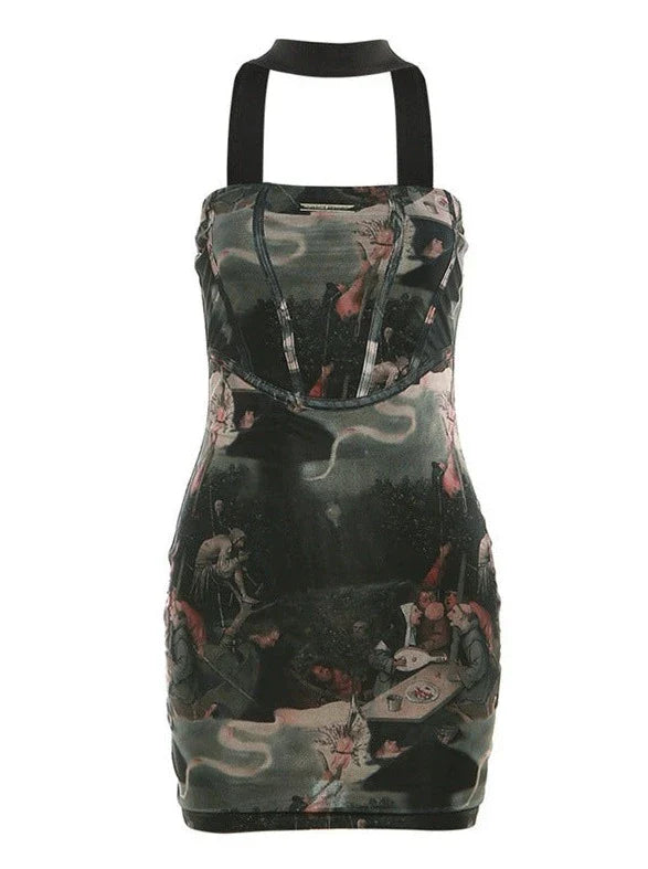 キュートなネックホールイラストのレトロアートドレスで、周りの視線を釘付けに!個性的なネックホールデザインが特徴のこのドレスは、スタイリッシュで着心地も抜群。ワードローブにヴィンテージ感をプラスするマストハブドレスです。
