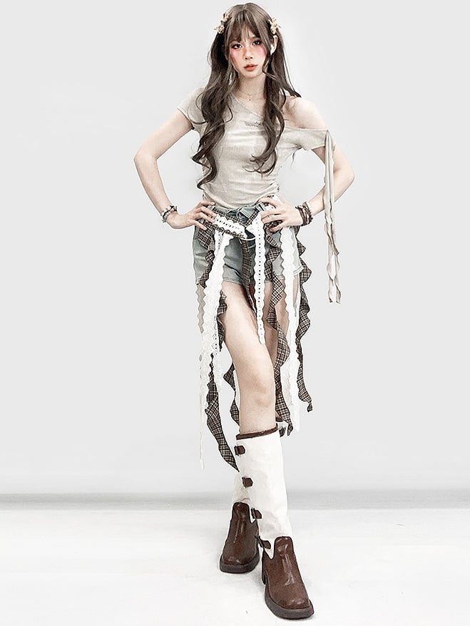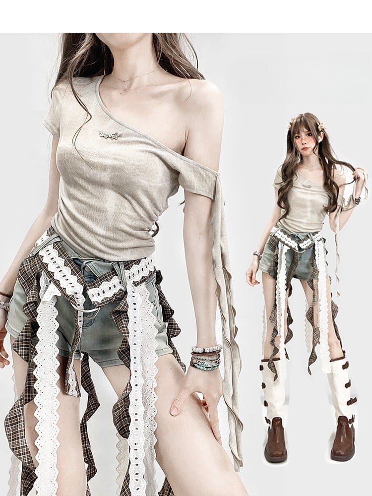 ネックラインベージュグラマラスTシャツアシンメトリー