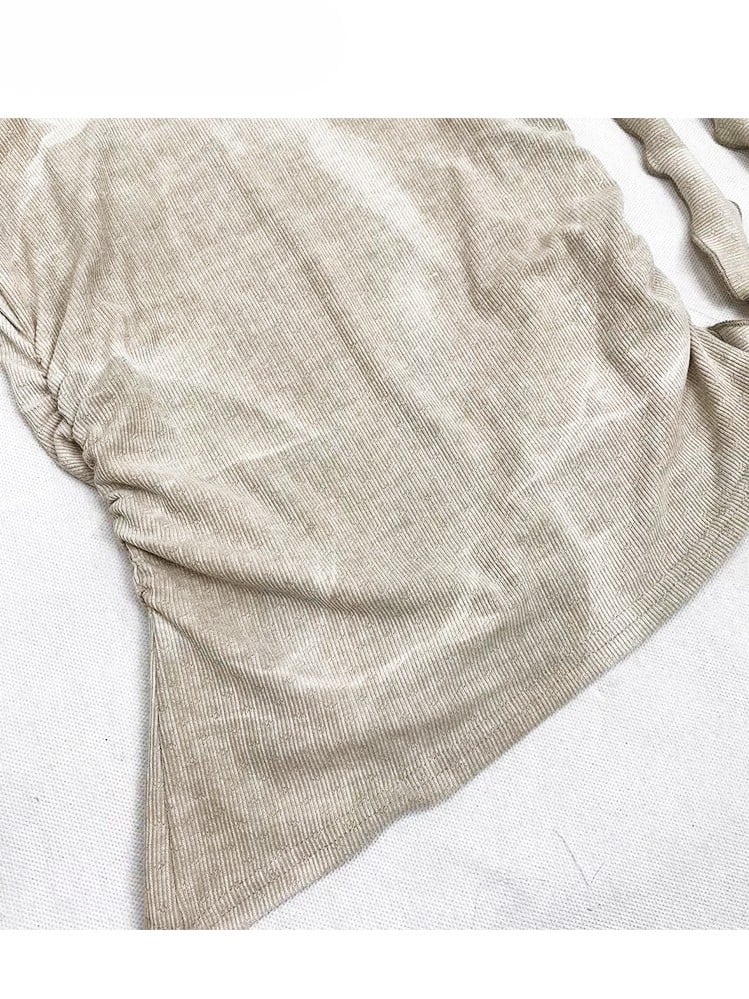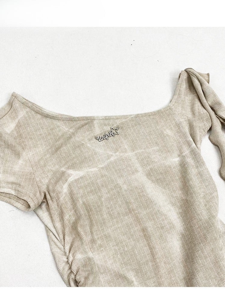 ベージュのグラマラスなアシンメトリーネックラインTシャツ