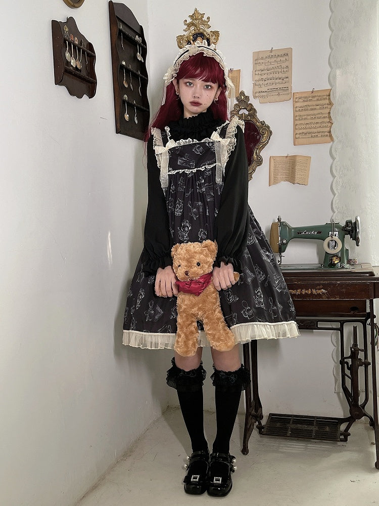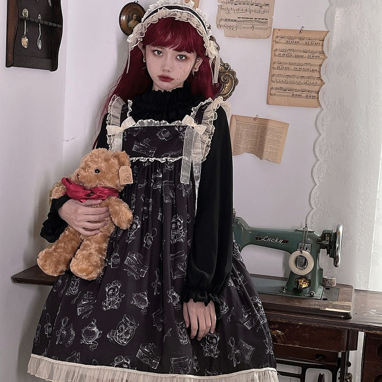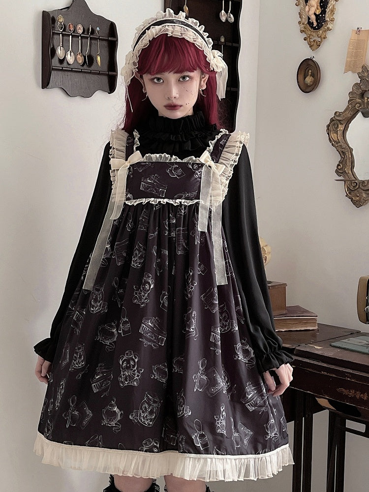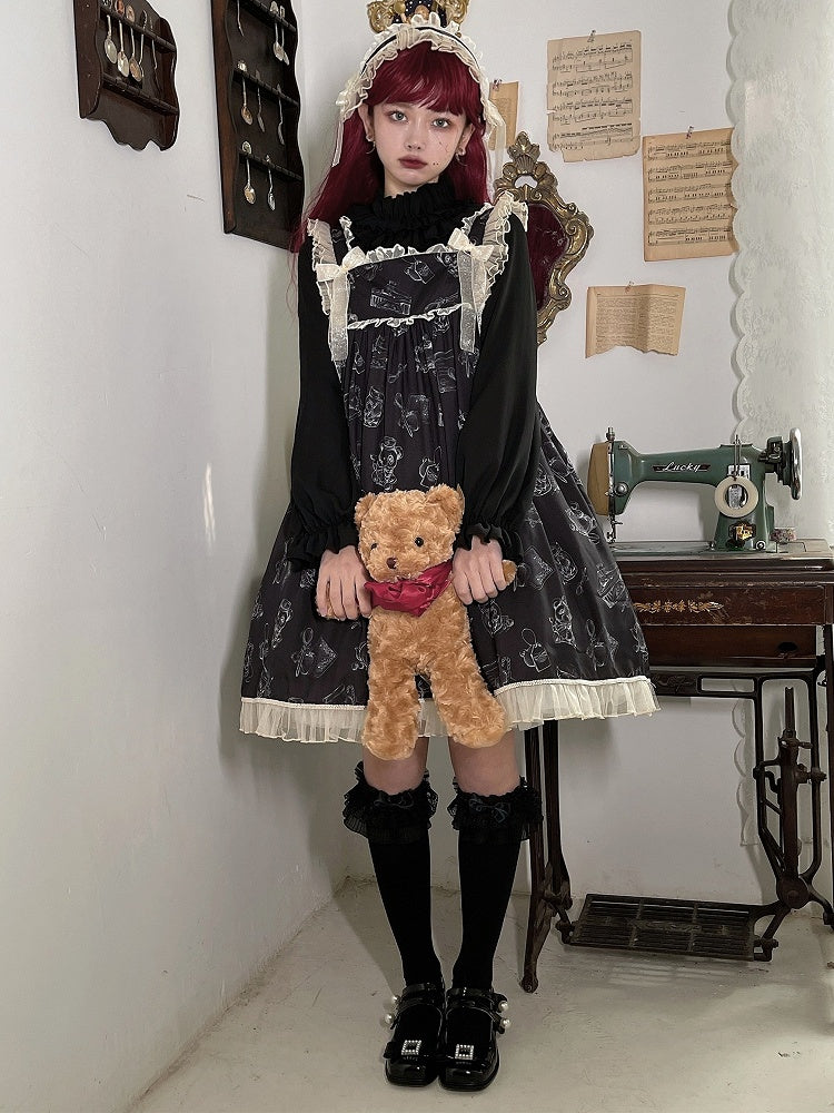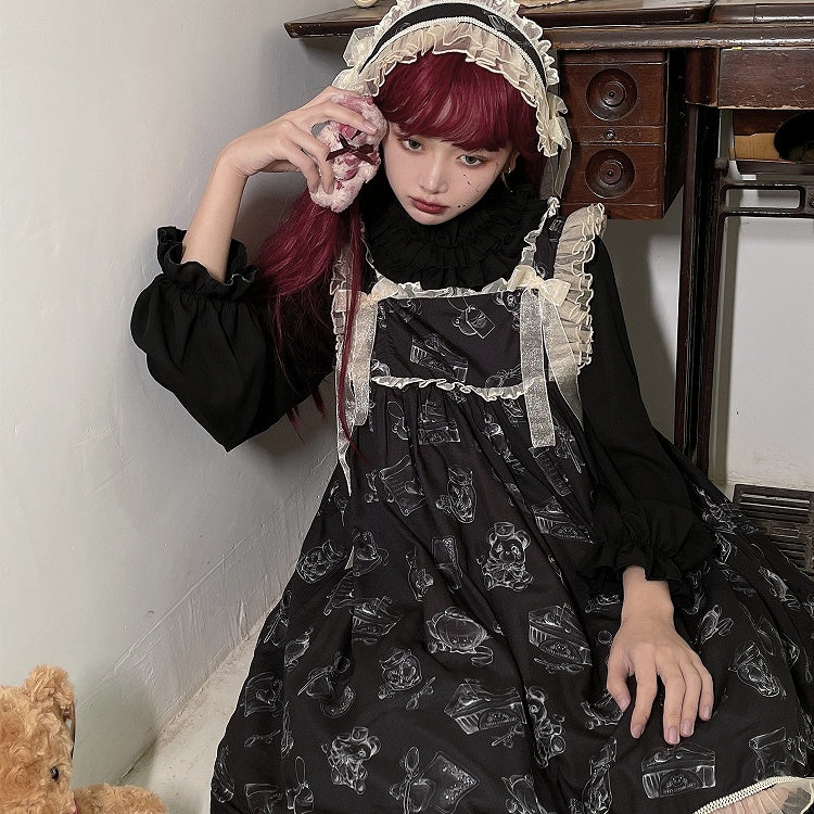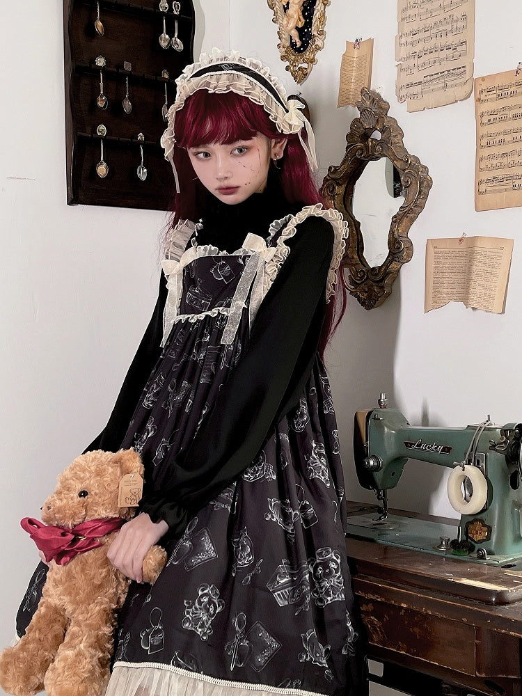 黒と白のオールドスクールロリータファッションドレス蝶結びロリータJSKセット