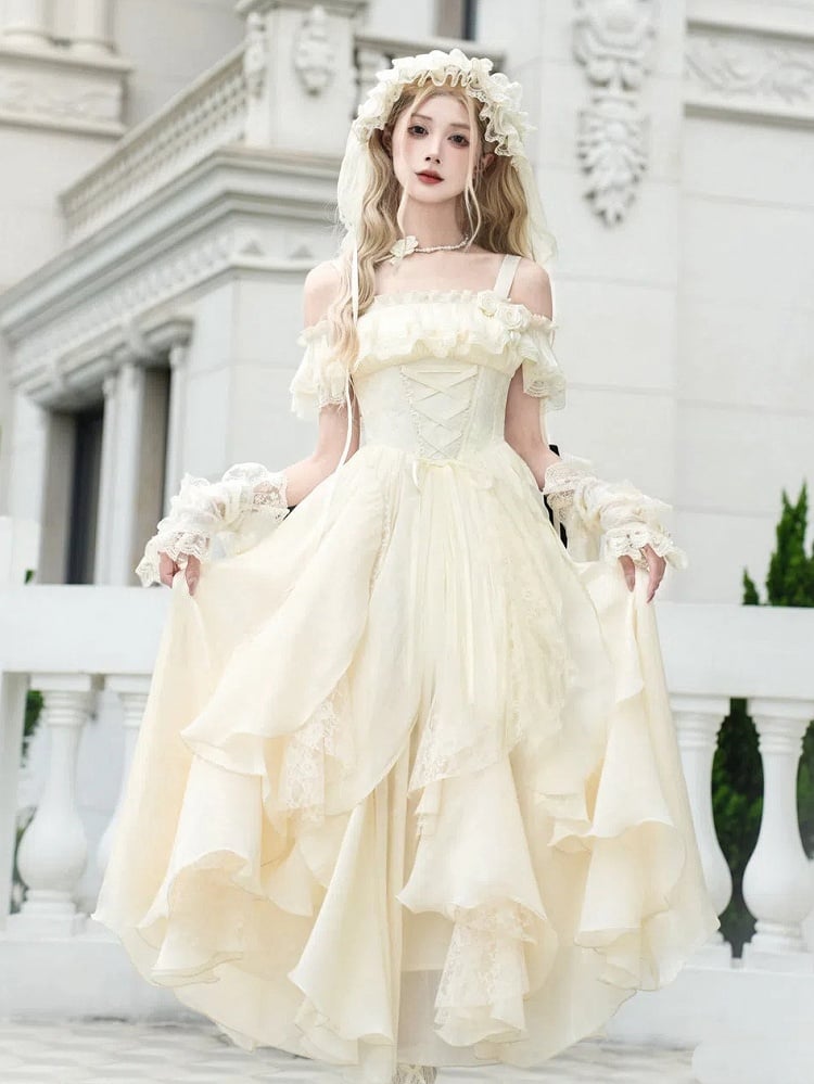 オフショルダー ベージュ ネックライン ショール 取り外し可能