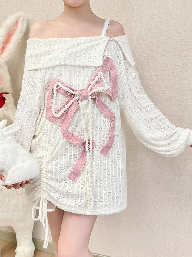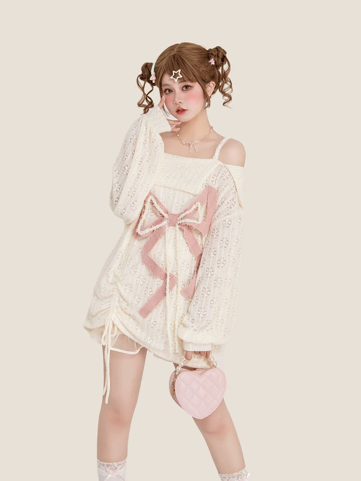 ピンクと白のオールドスクールロリータファッションドレス、蝶結びディテール、ロリータJSKセット