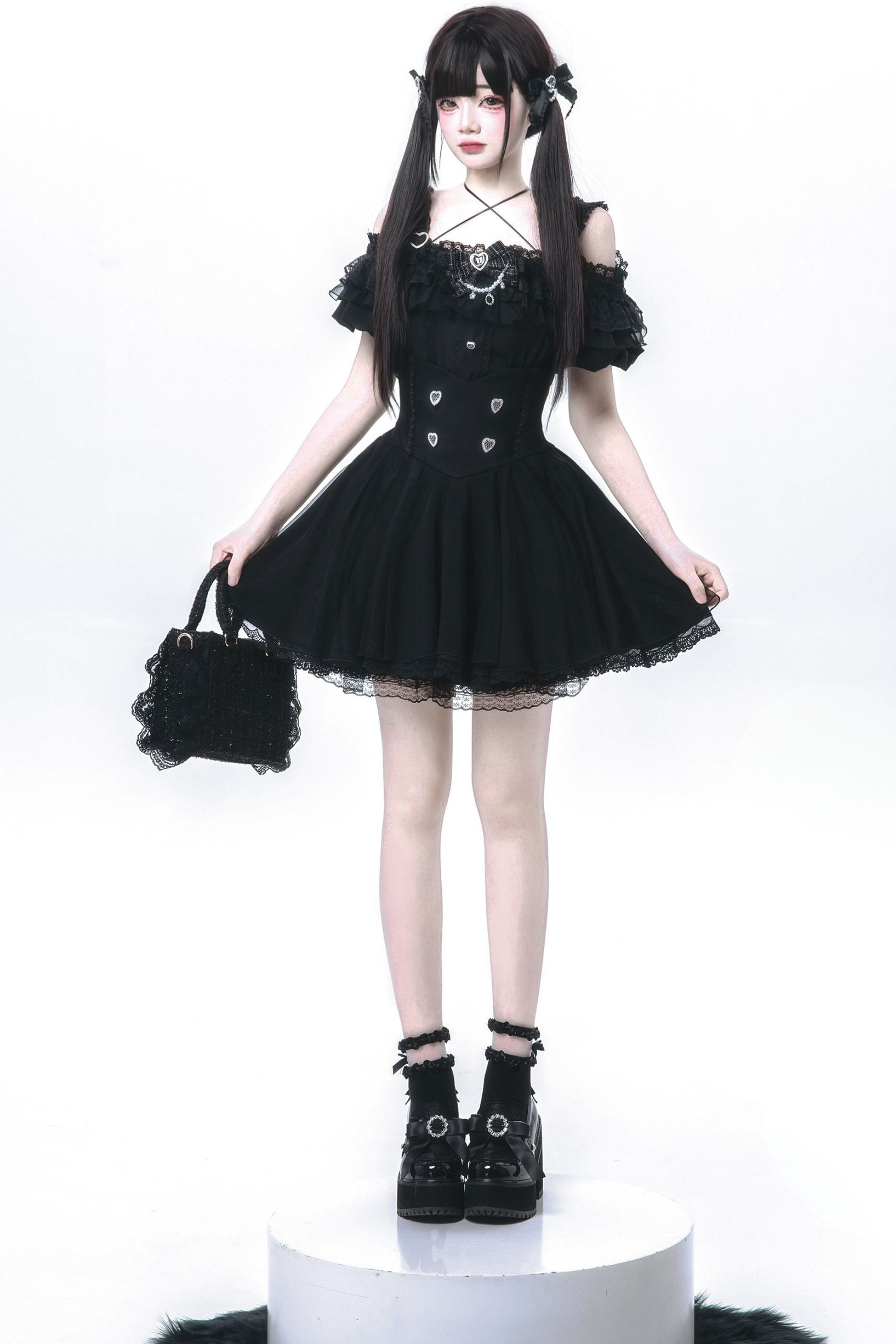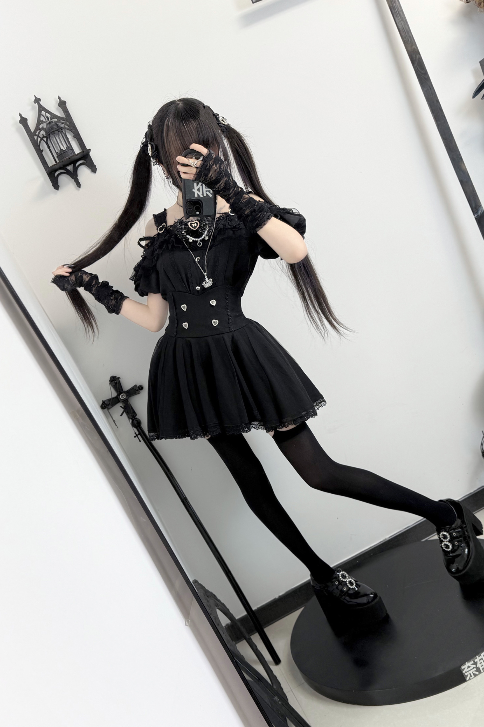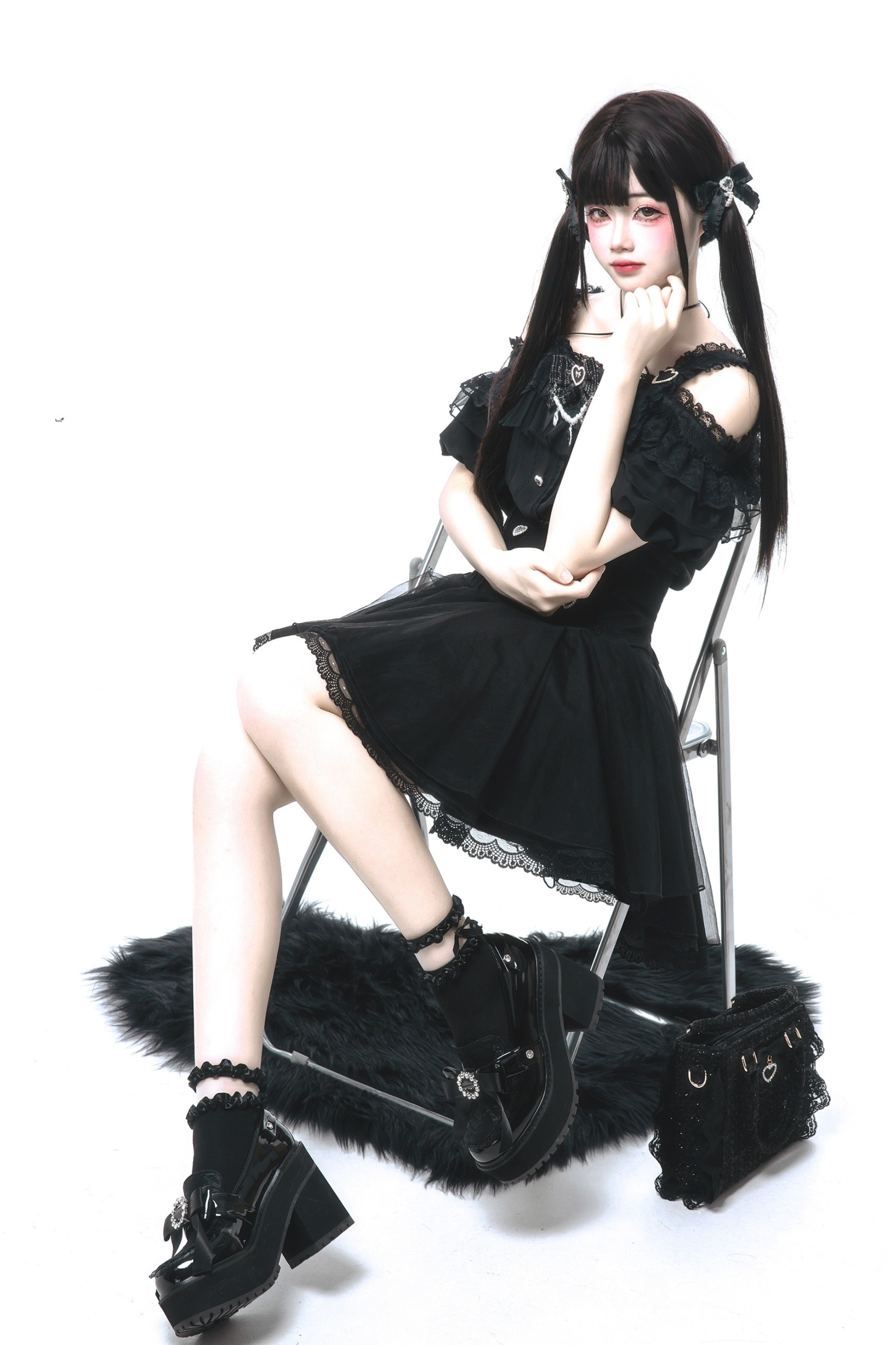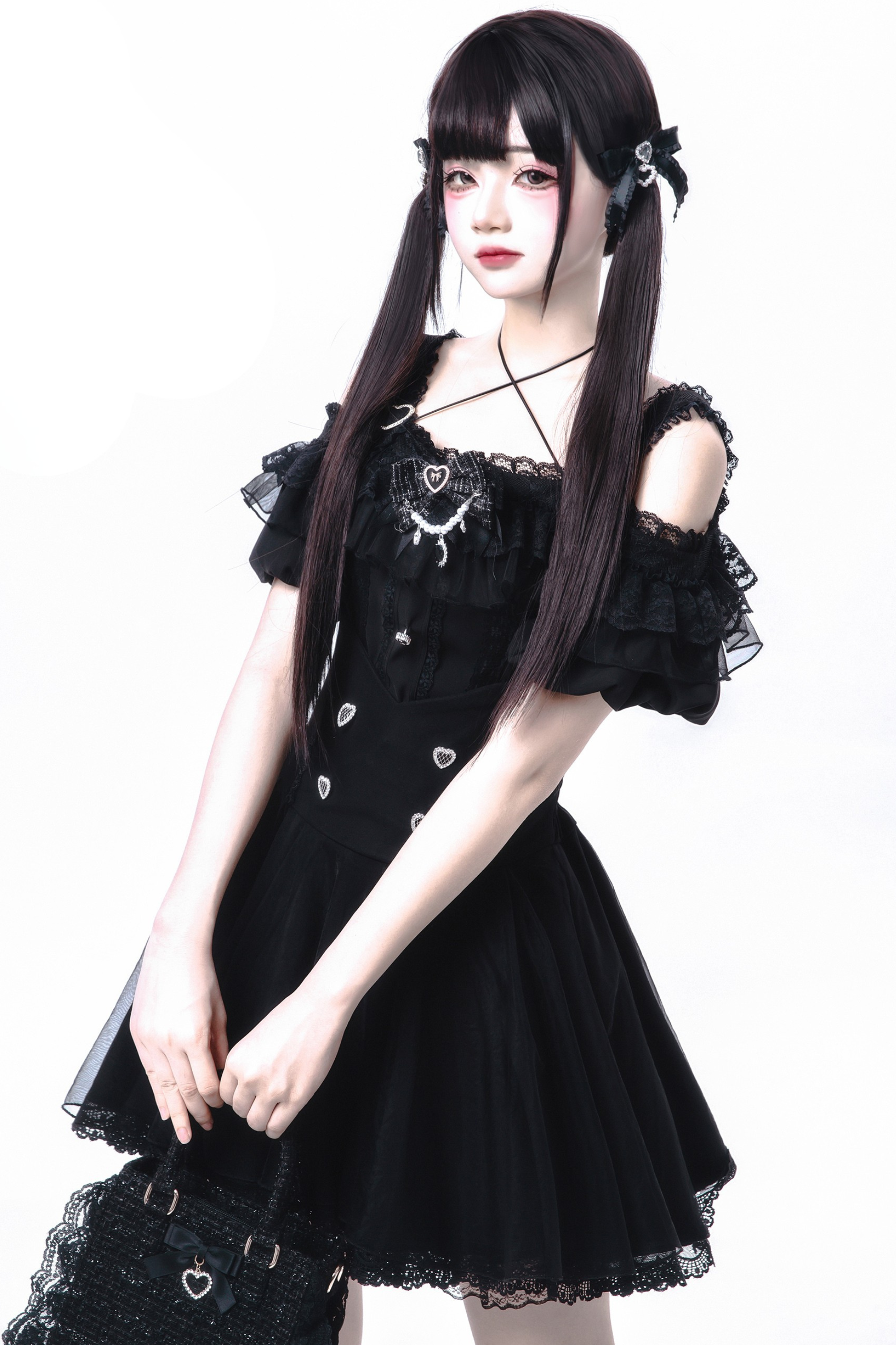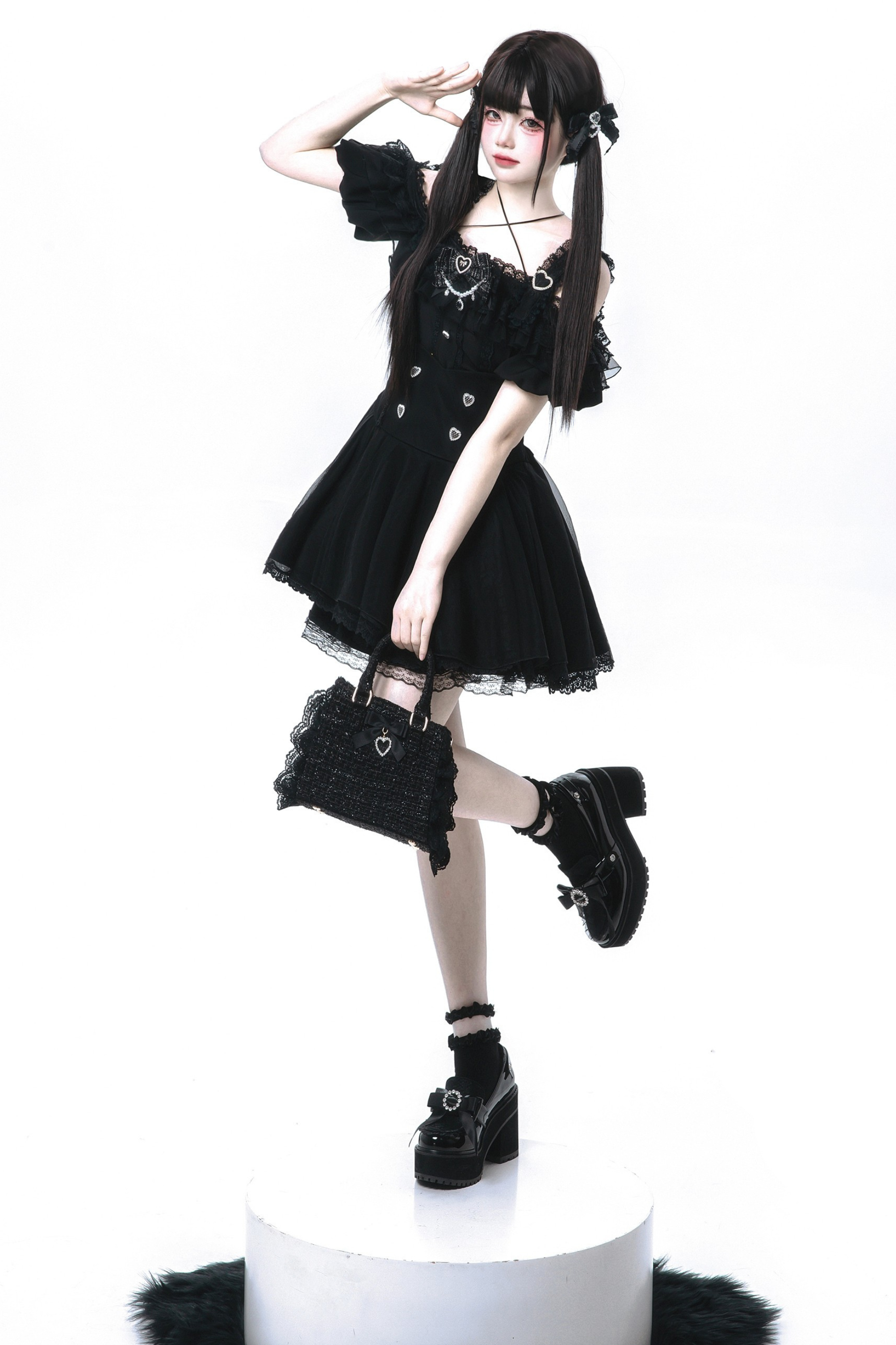 黒と白のオールドスクールロリータファッションドレス蝶結びロリータJSKセット