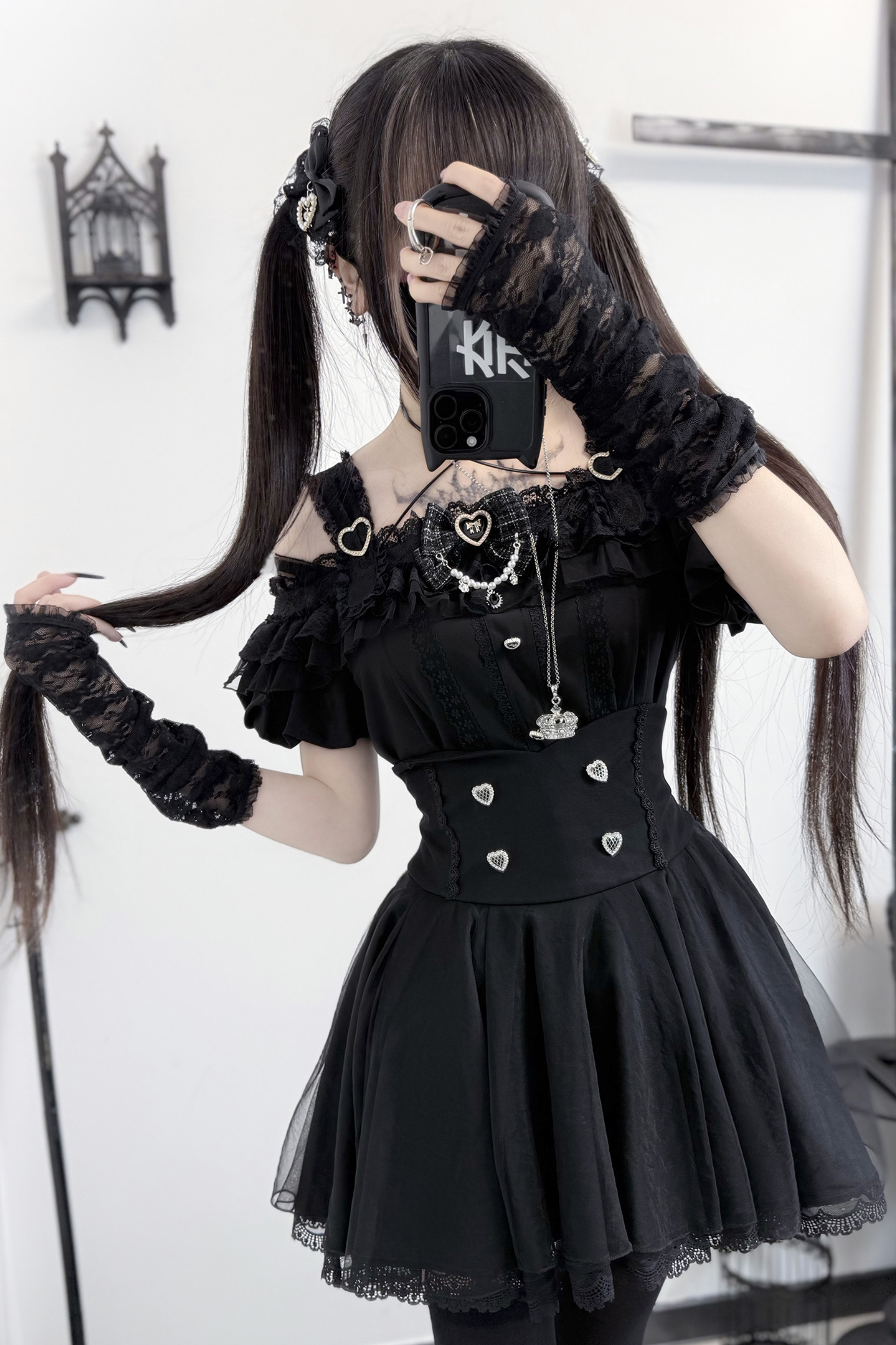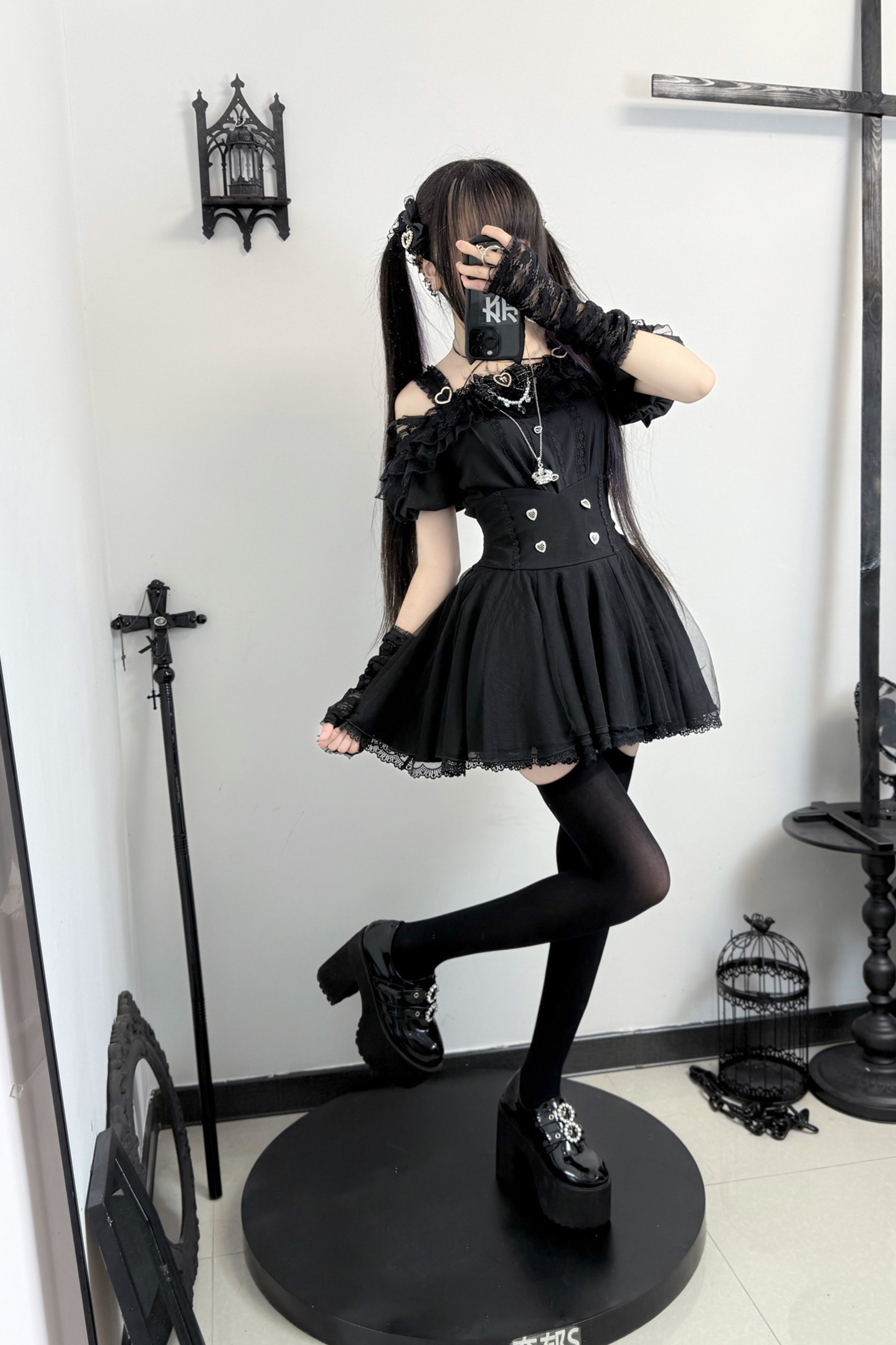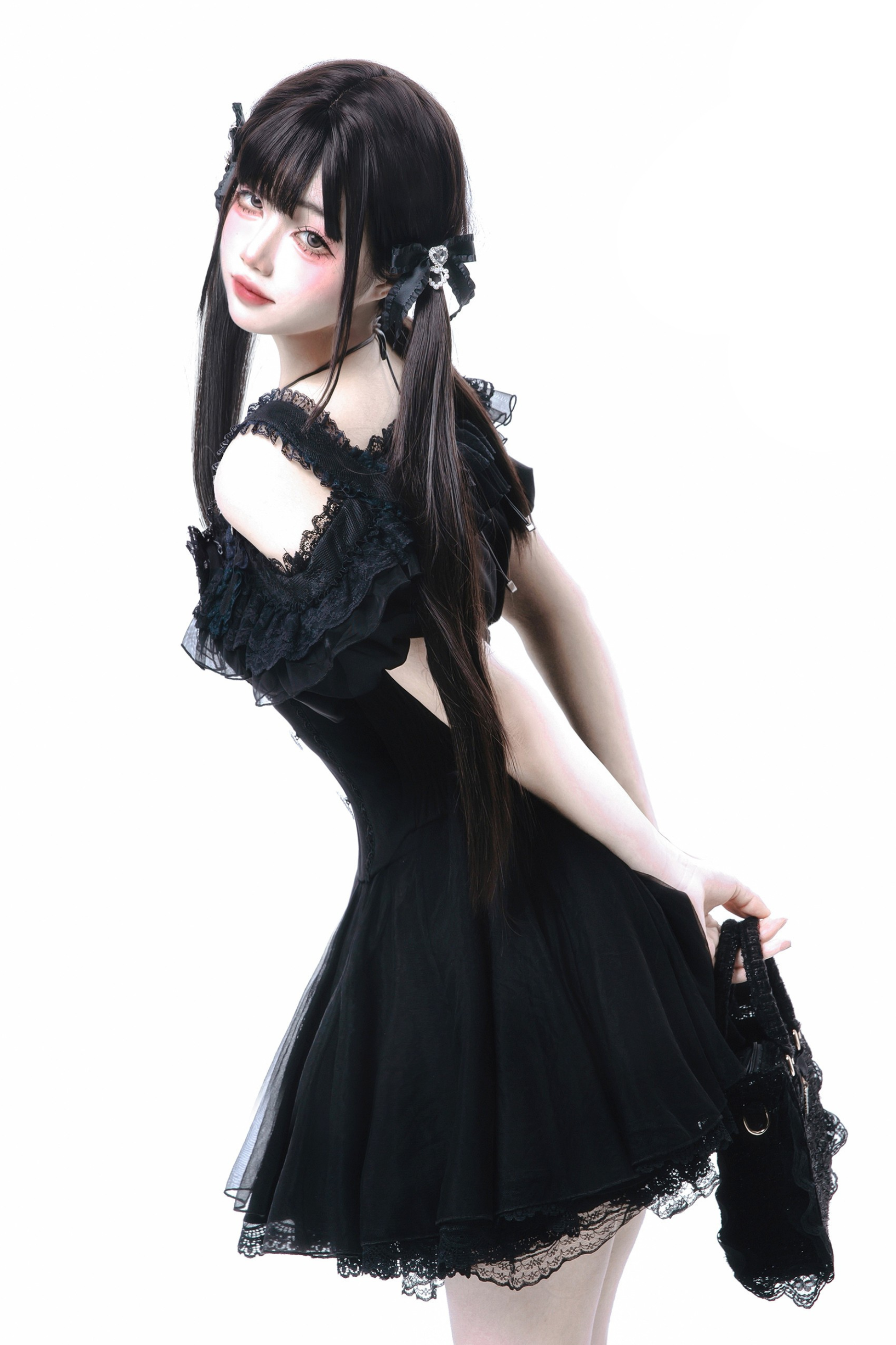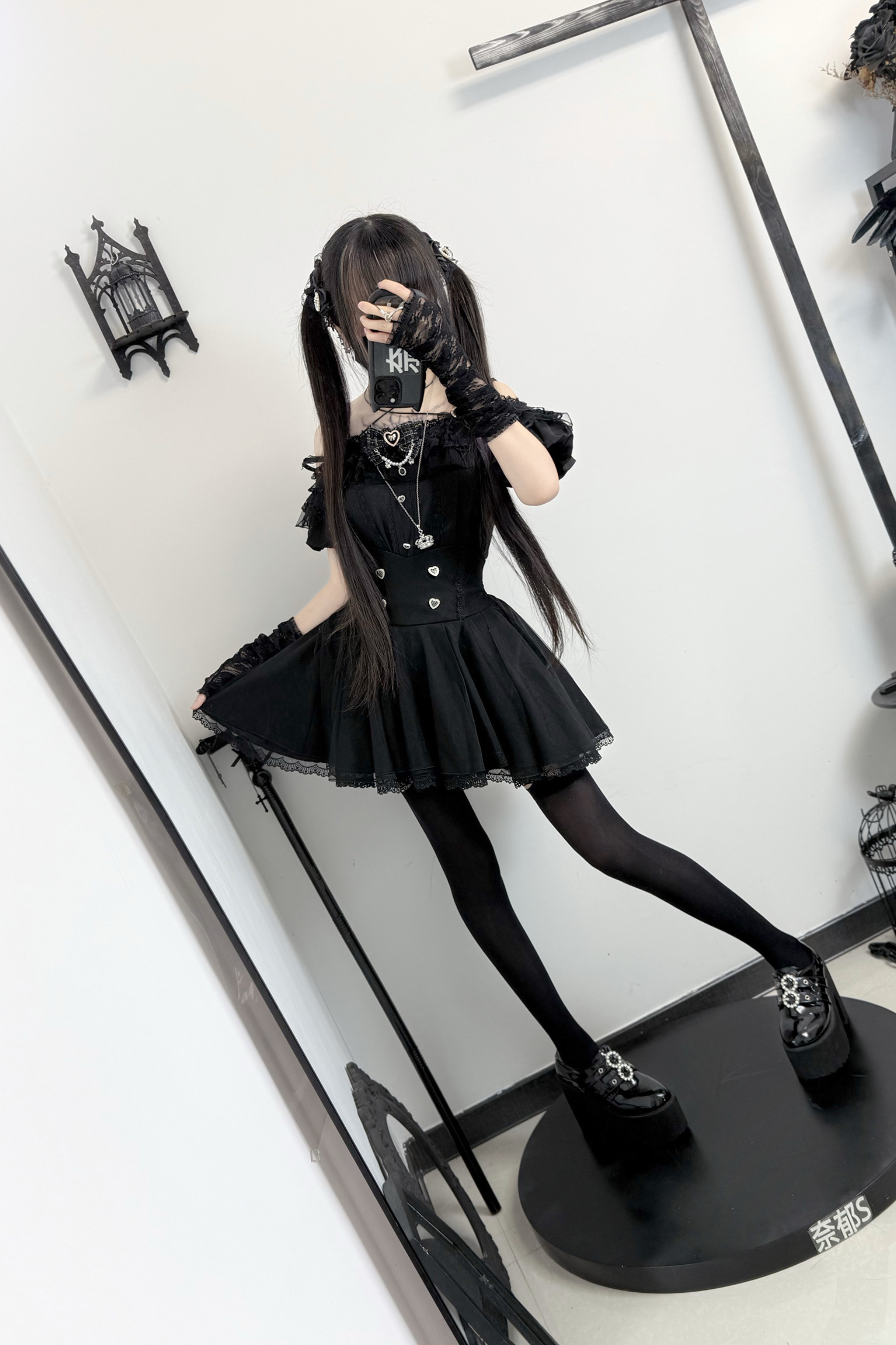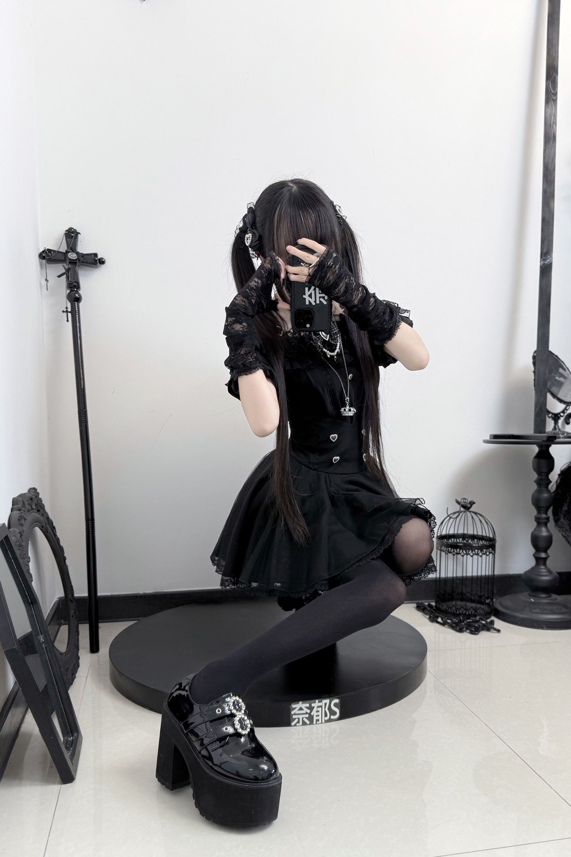 黒と白のオールドスクールロリータファッションドレス蝶結びロリータJSKセット