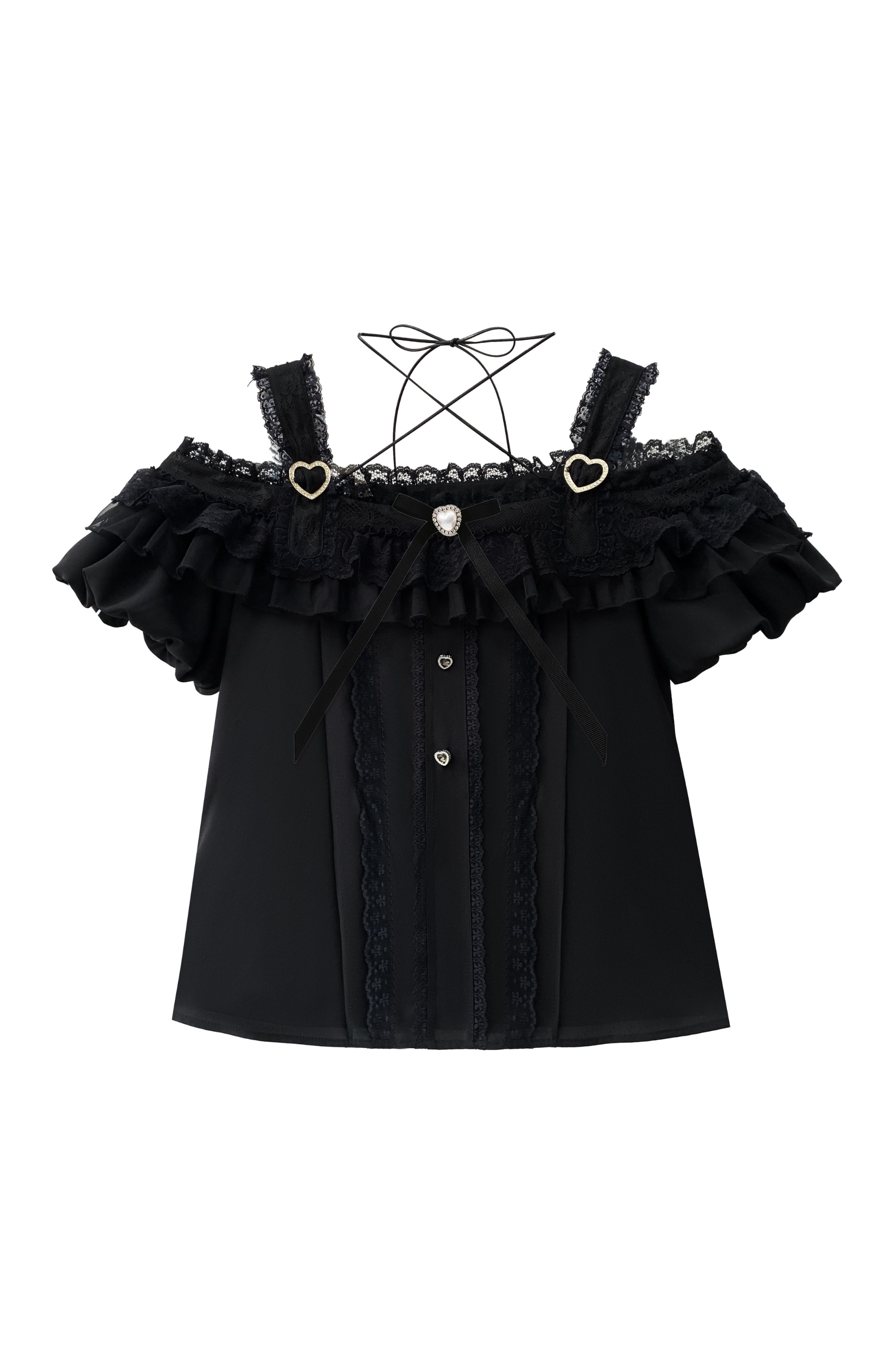 ❤Mineオフショルダートップス+フレアスカート+リボン❤