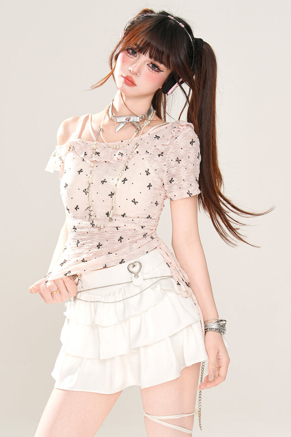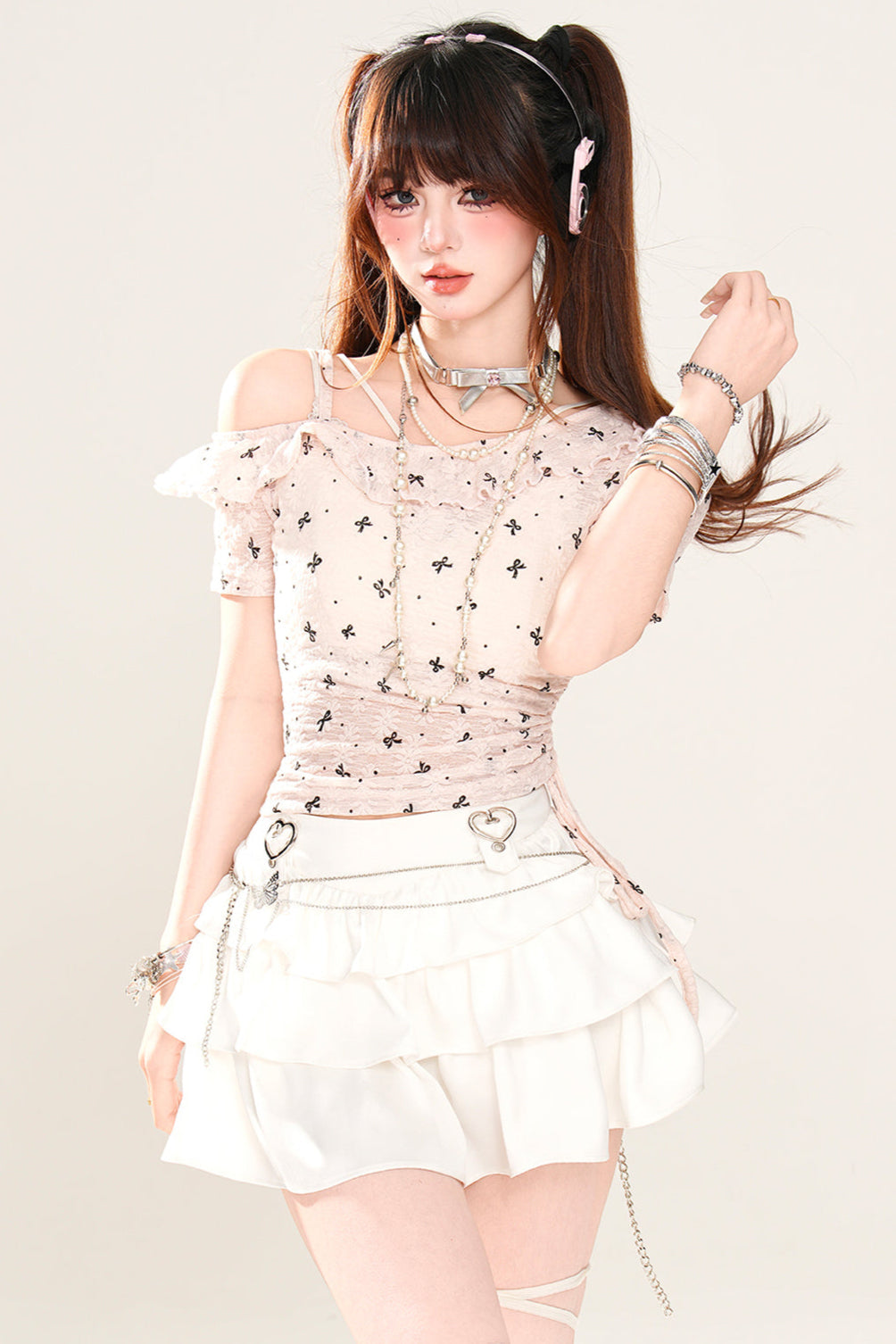 ホワイトとピンクのロリータボンネットチョーカー