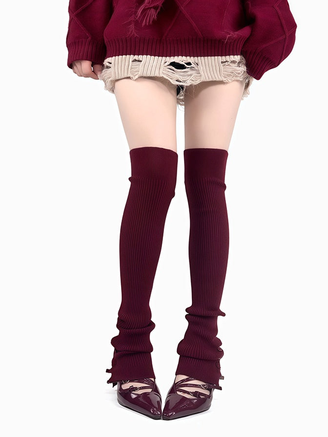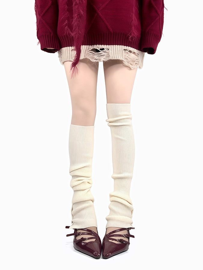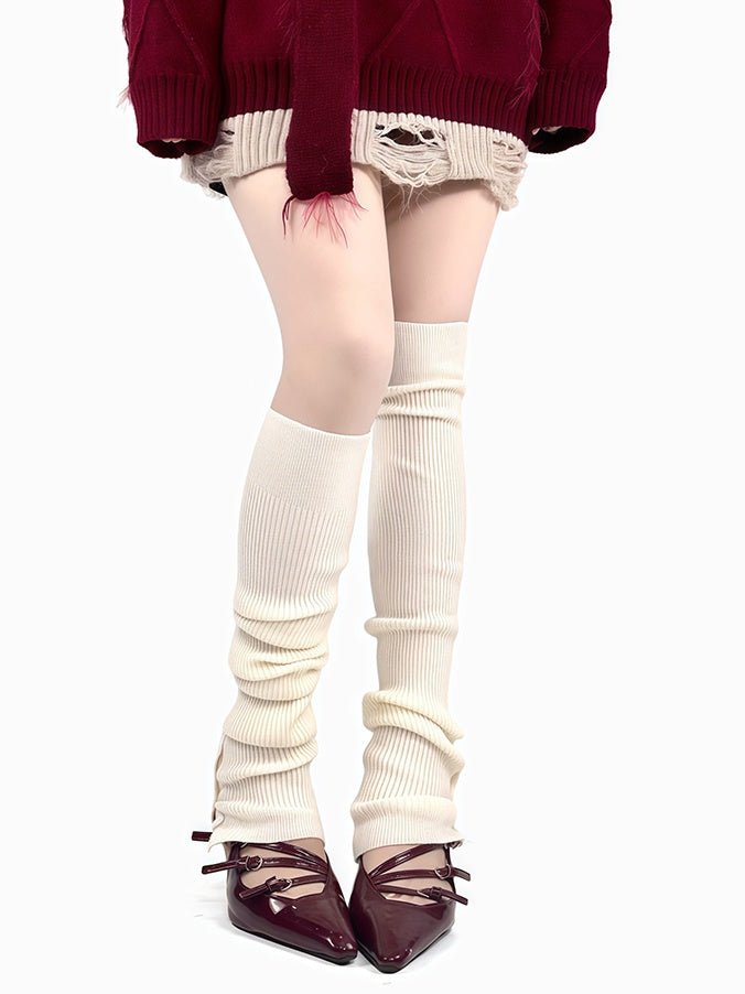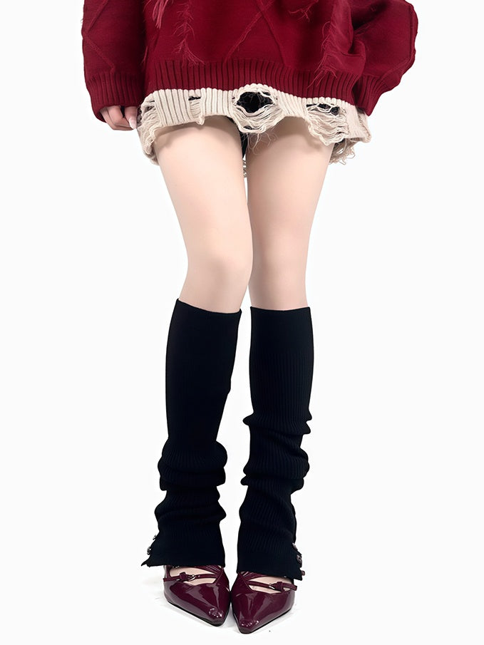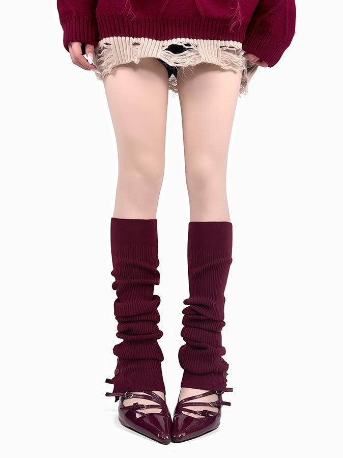 オフホワイト/グレー/ワインレッド/ブラック ボタンニット レッグウォーマー