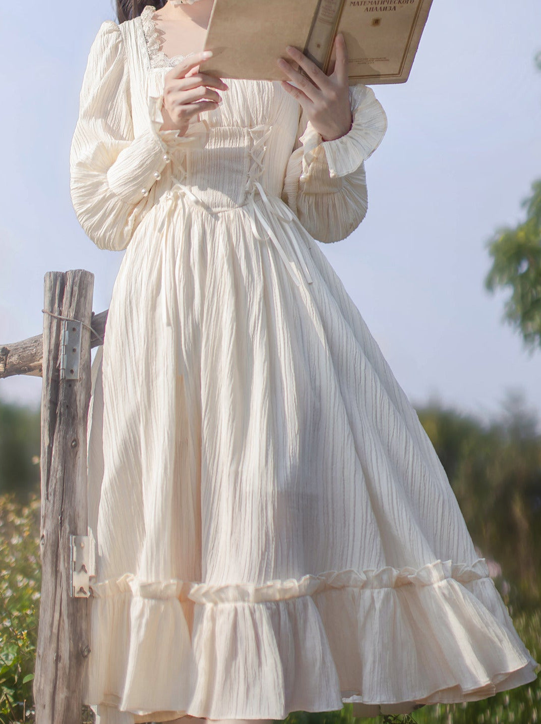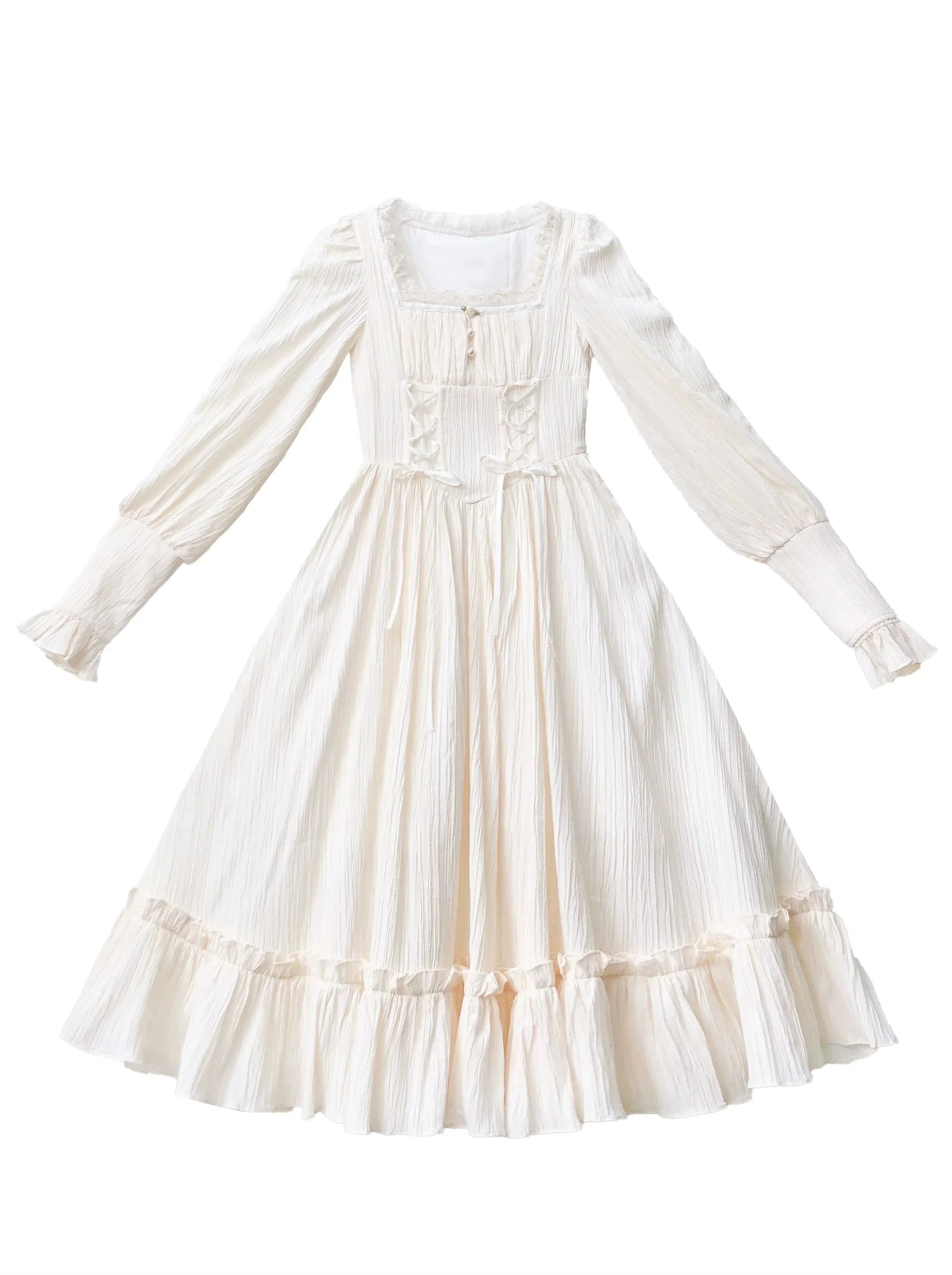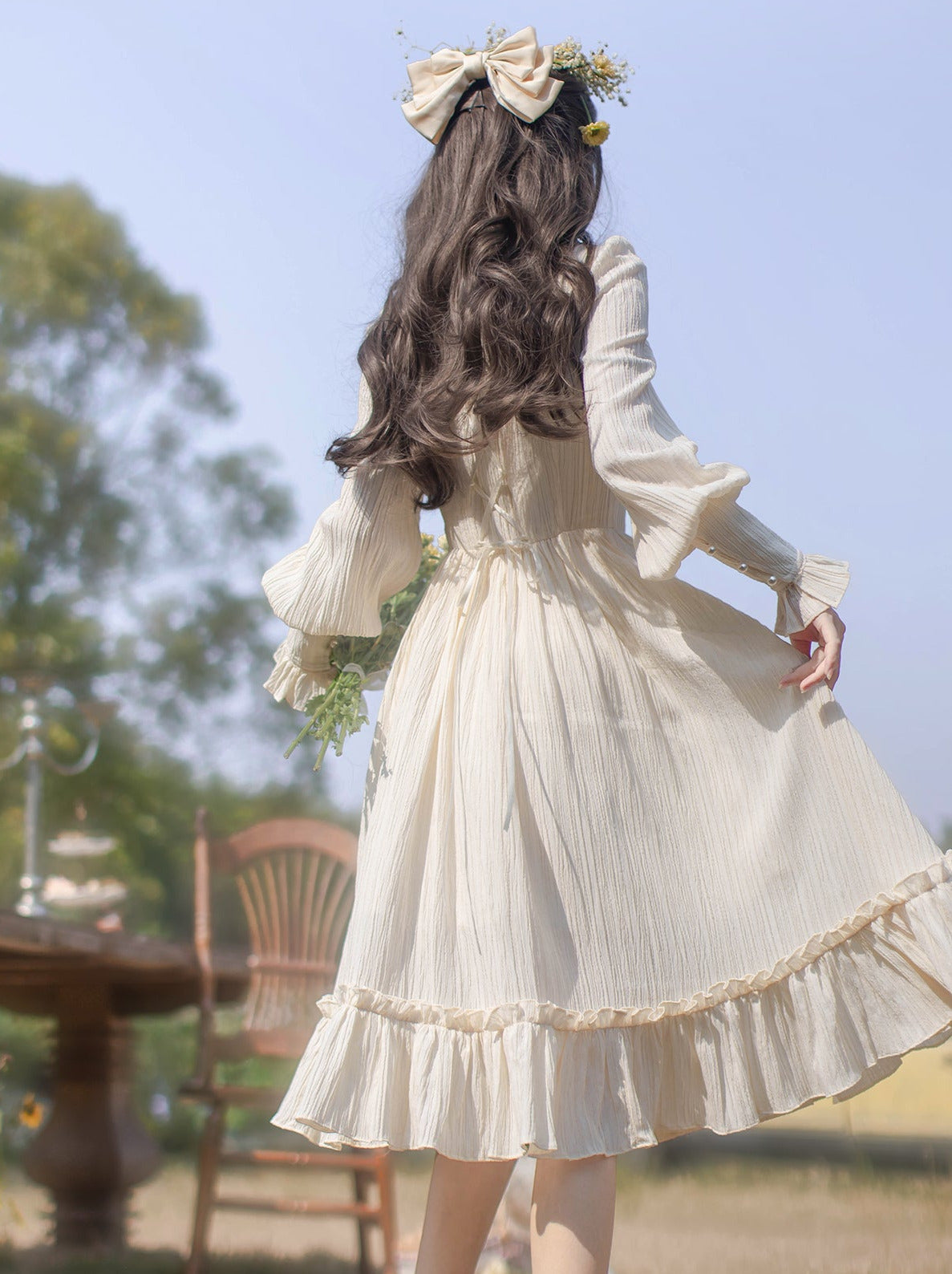 青と白のオールドスクールロリータファッションドレス 蝶結びディテール JSK セット