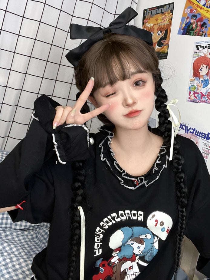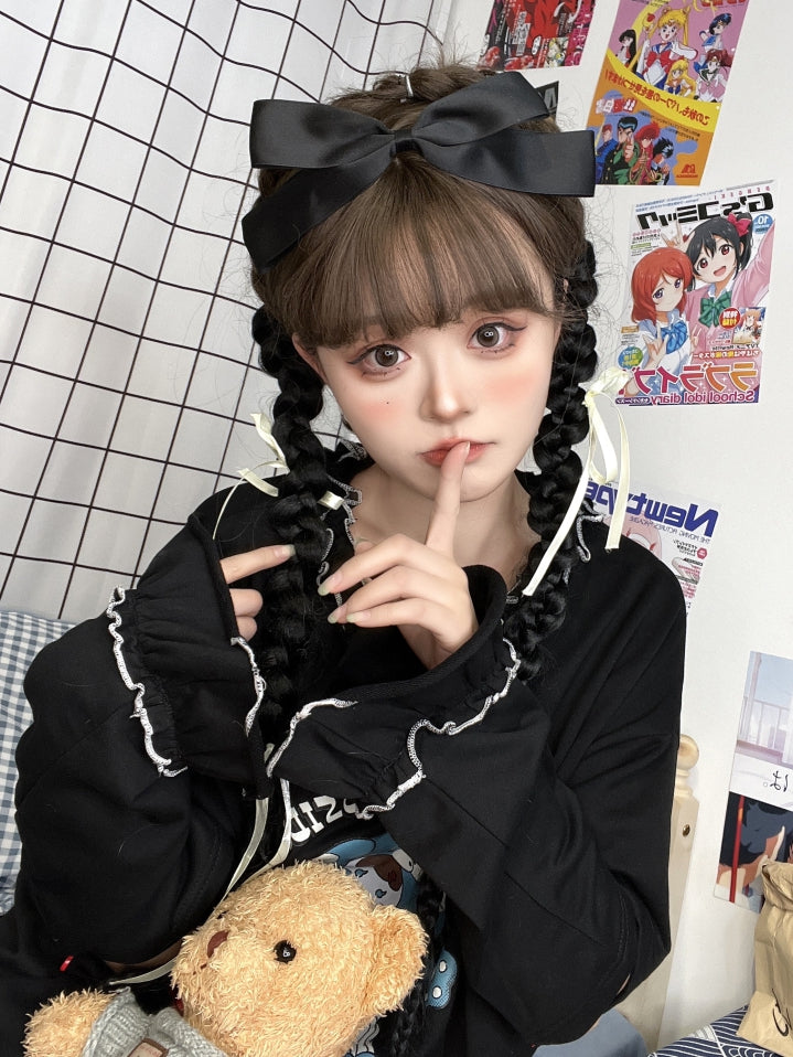 黒と白のオールドスクールロリータファッションドレス蝶結びロリータJSKセット