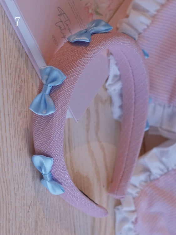 ピンクと白のオールドスクールロリータファッションドレス、蝶結びディテール、ロリータJSKセット