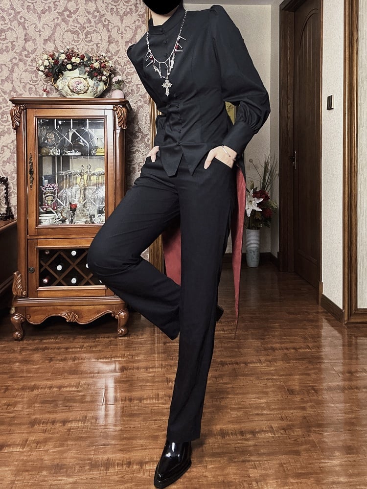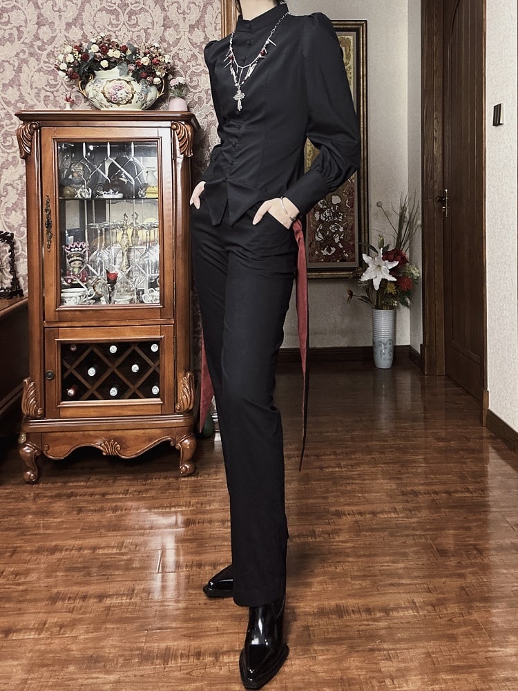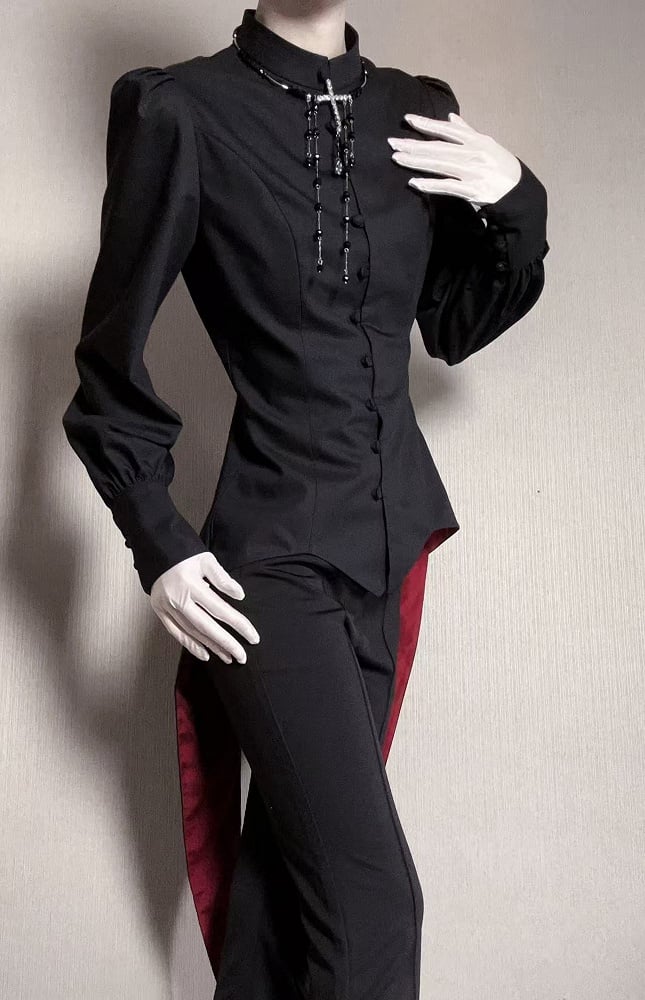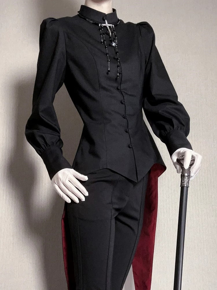 黒王子ロリータファッションマンダリンカラースワローテール長袖トップス