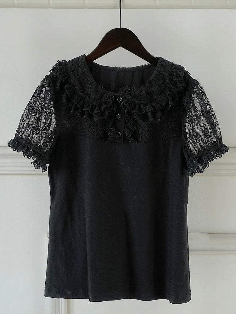 パンブラウス カラースリーブ ショート ロリータ ピーター ブラック
