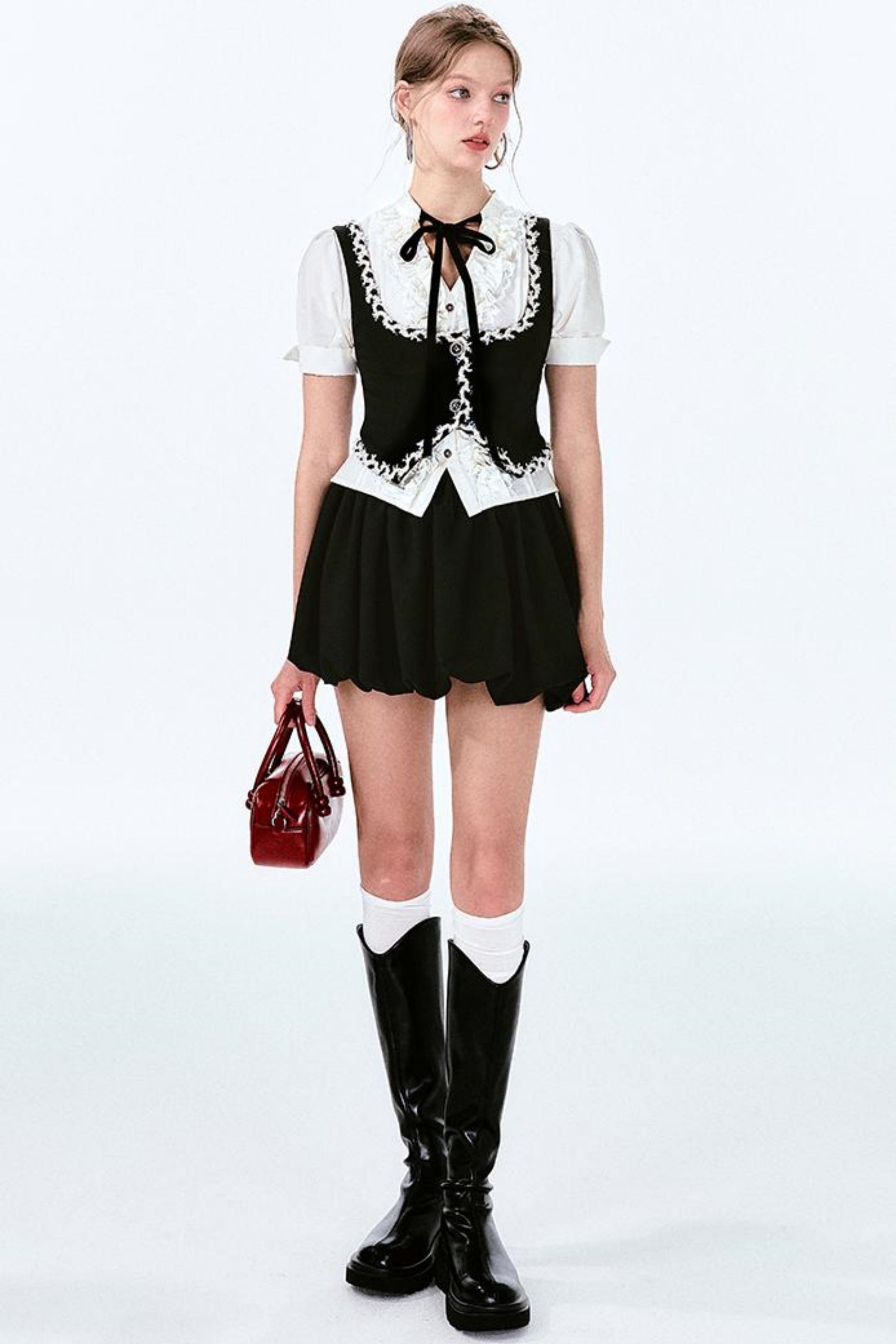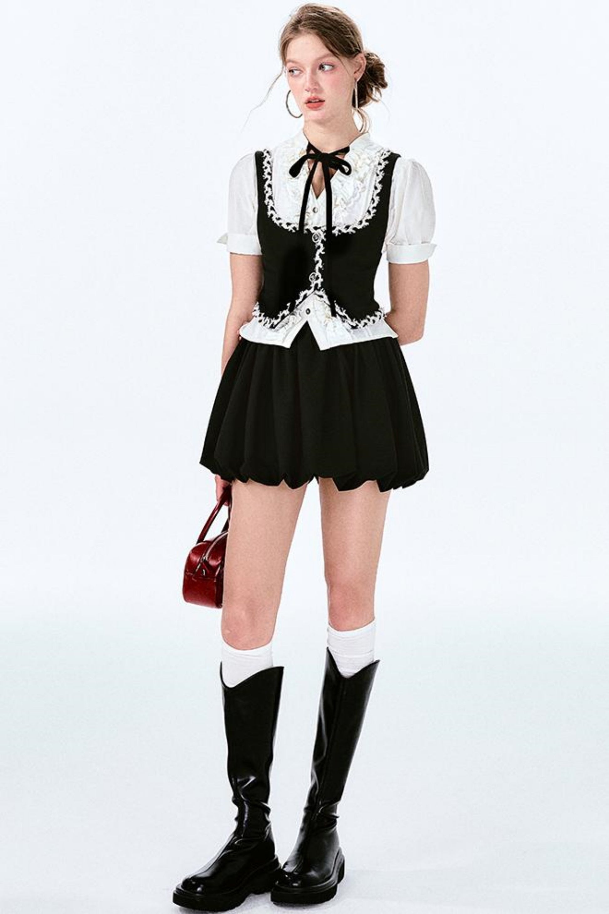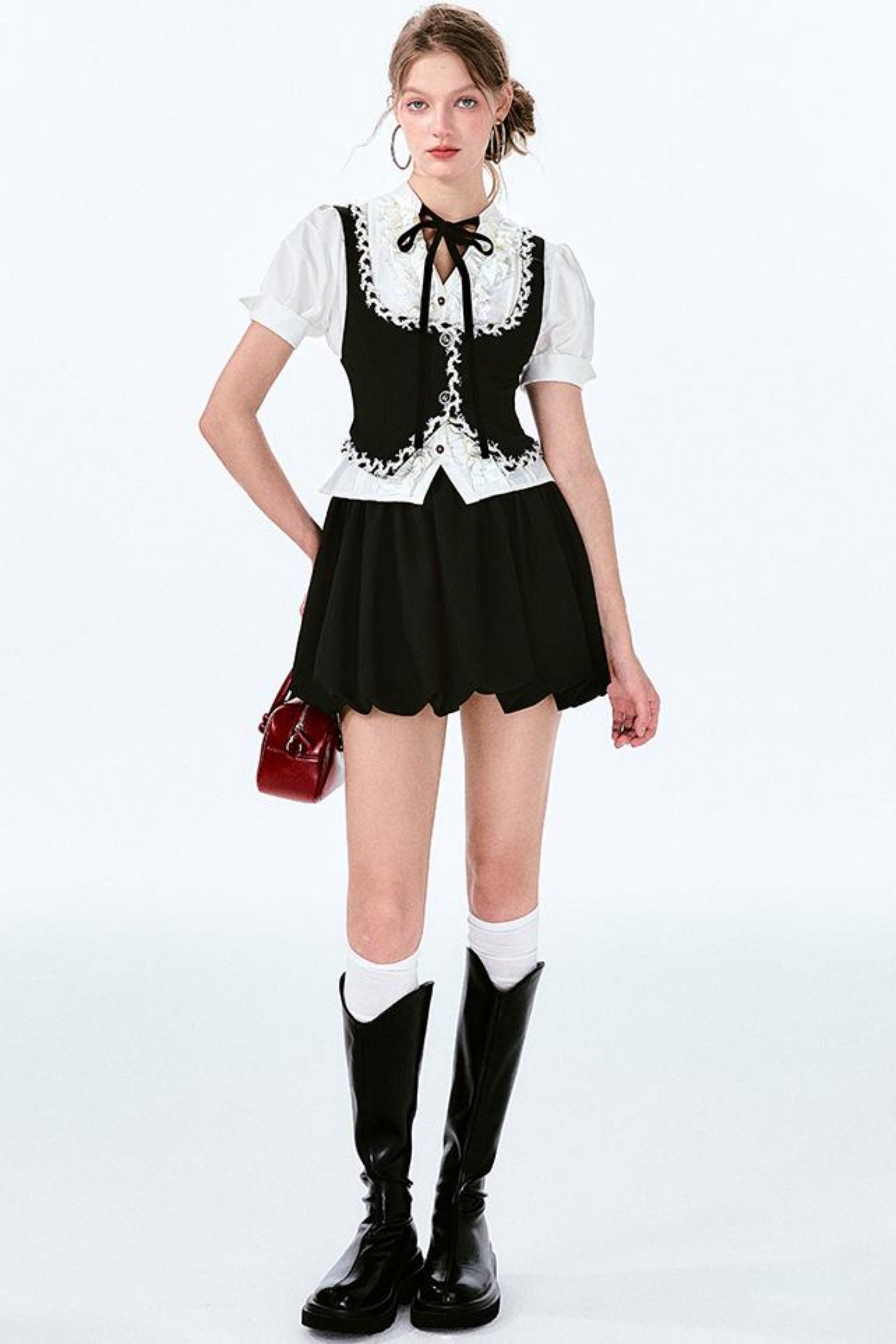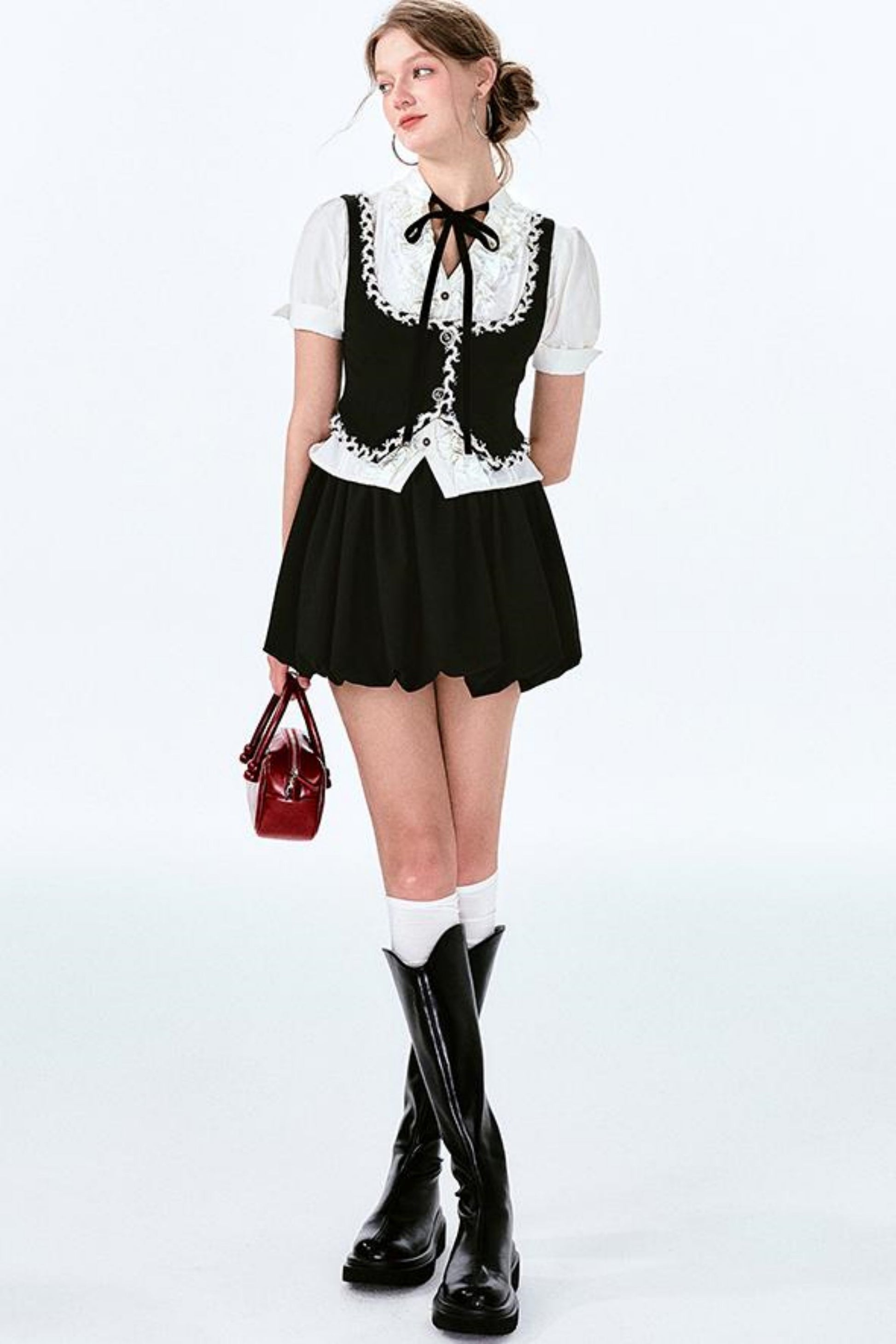 黒と白のオールドスクールロリータファッションドレス蝶結びロリータJSKセット