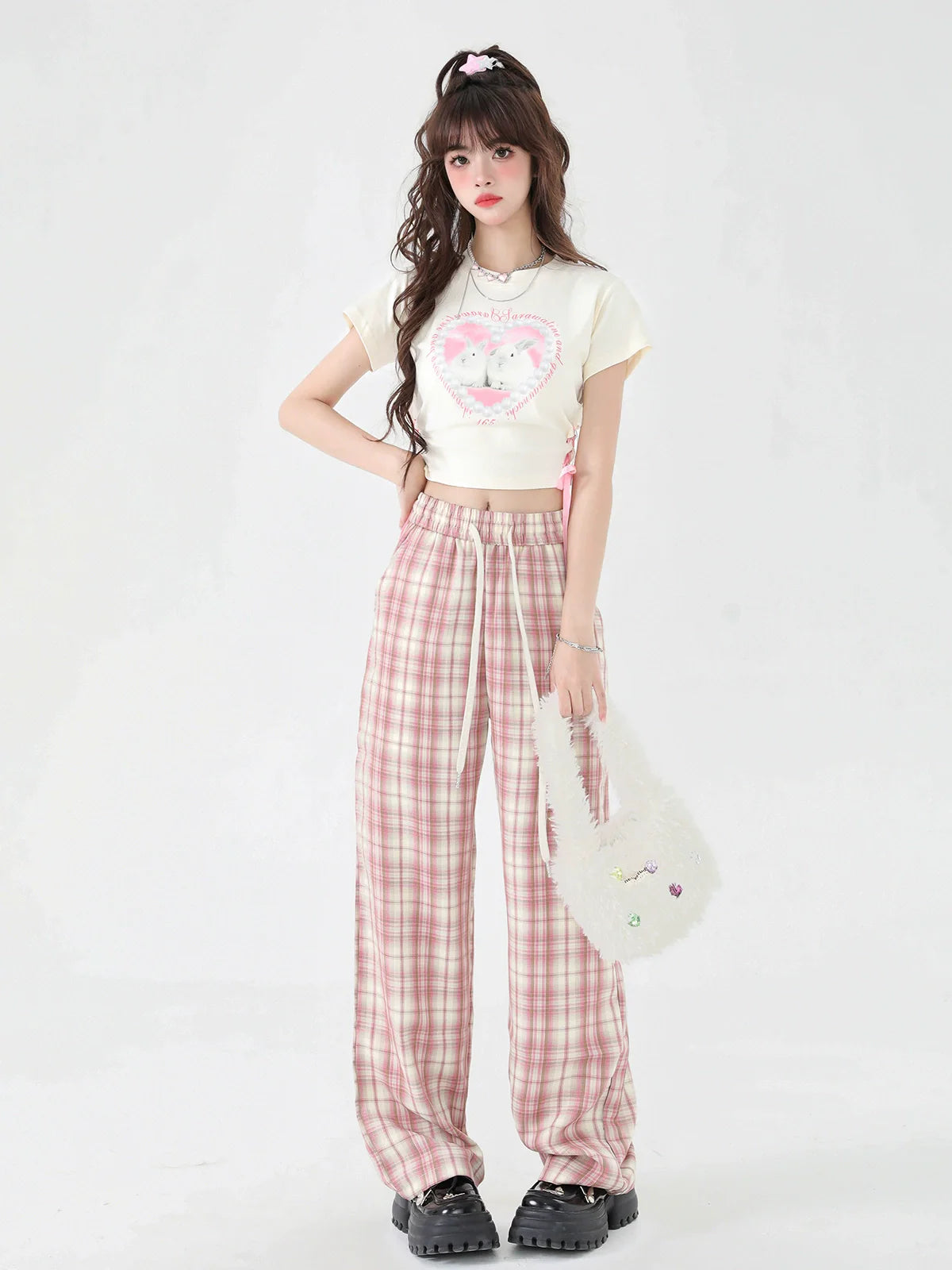 チャーミングなピンクのチェックパンツは、カジュアルなお出かけにぴったり。上質な生地を使用し、快適な着心地とスタイリッシュなルックスを実現。この愛らしいパンツで、ワードローブをワンランクアップさせましょう。