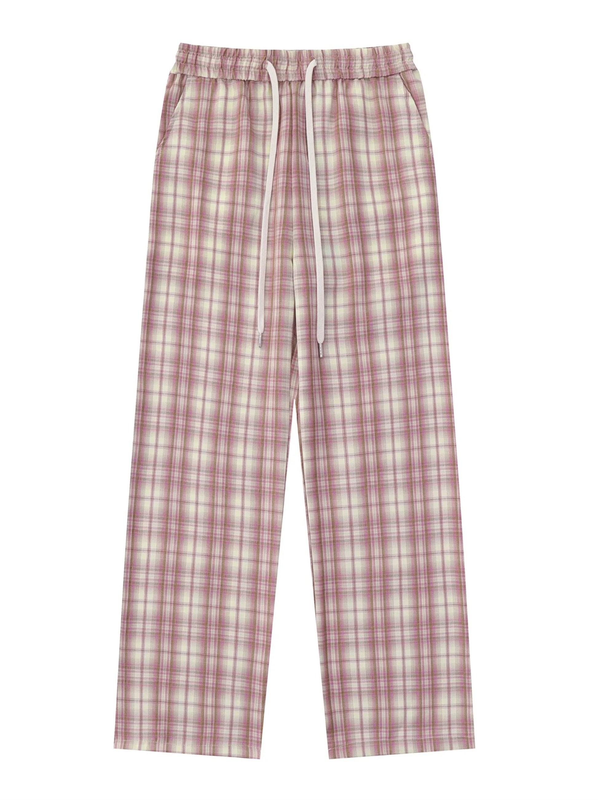 パンツ カジュアル チェック ピンク