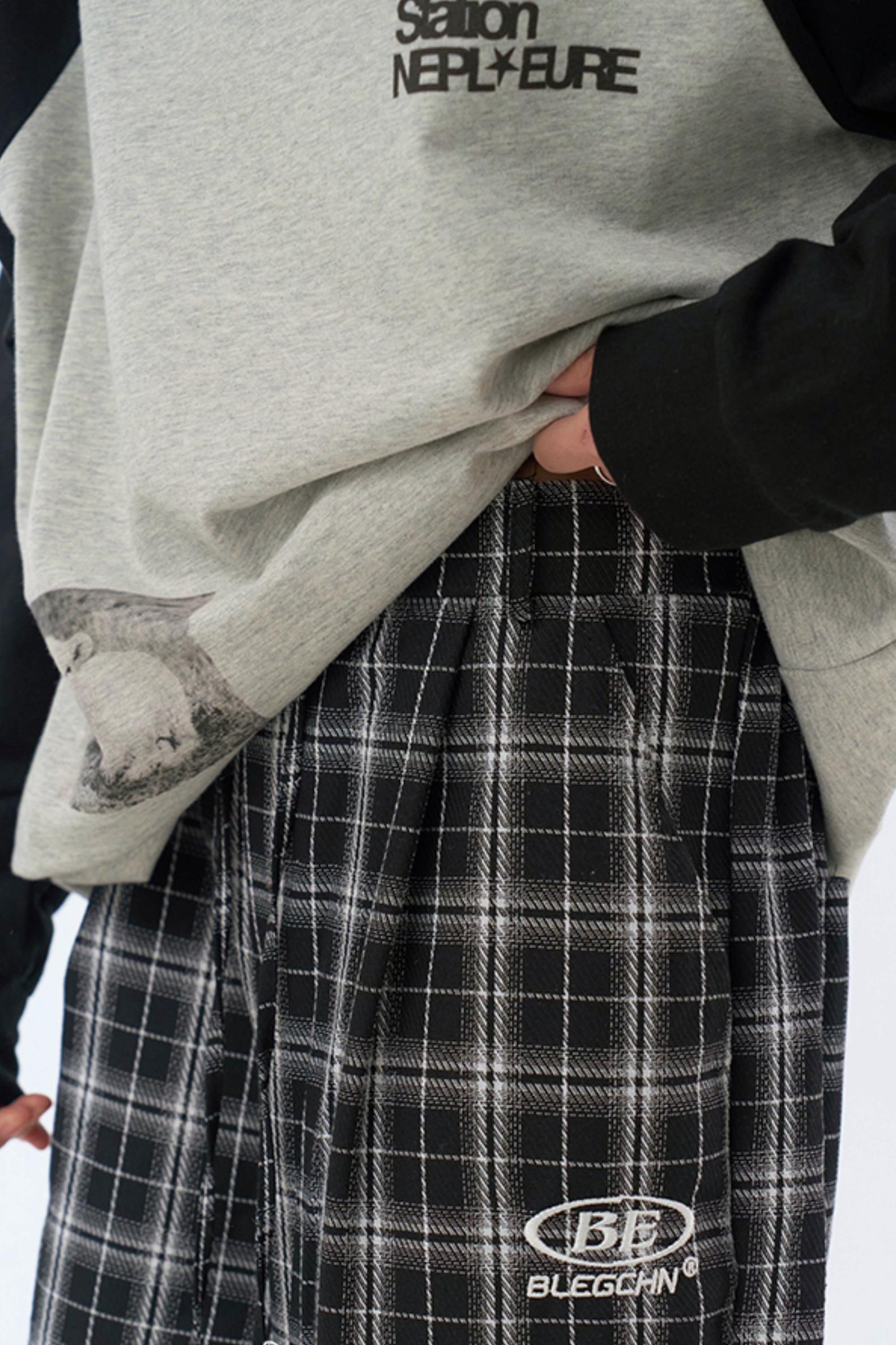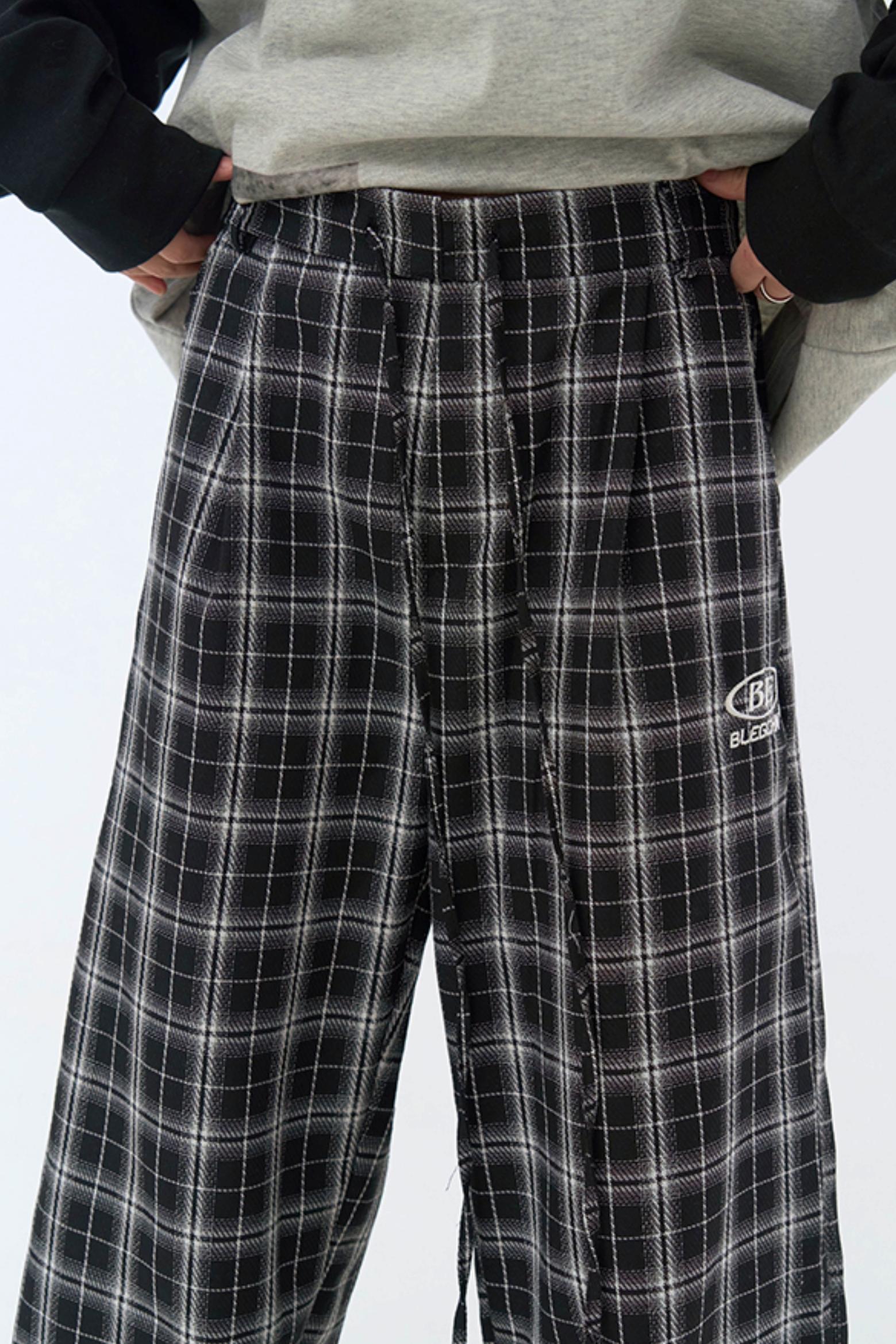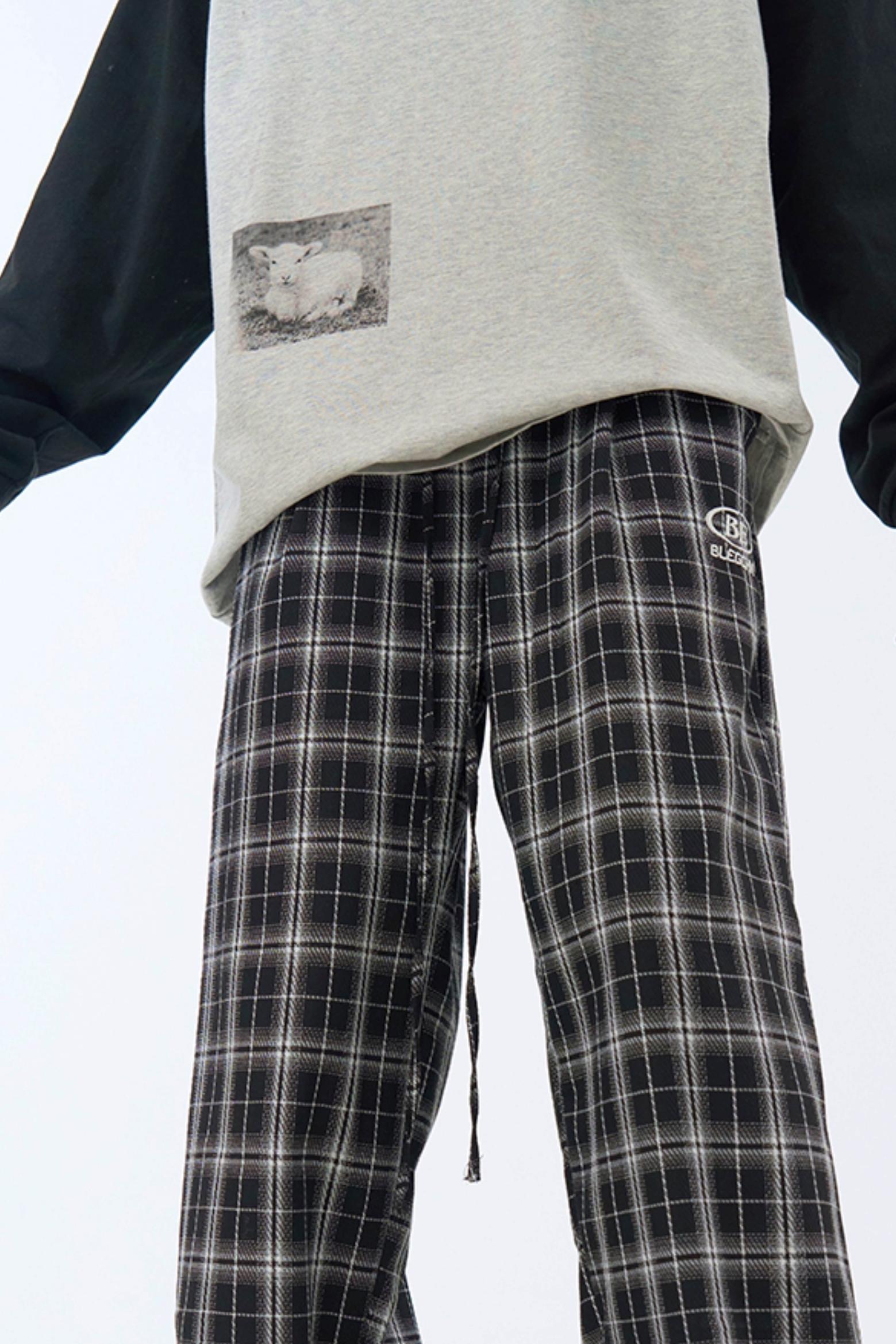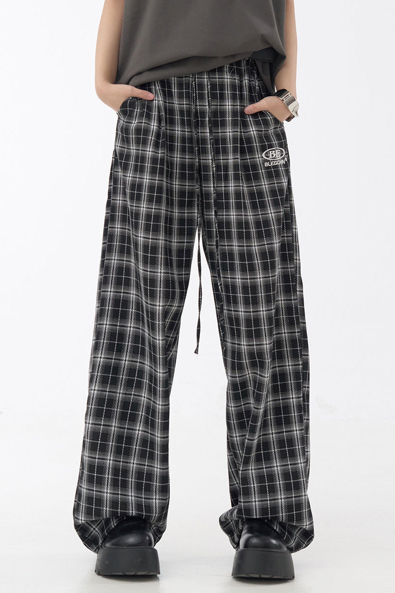 チェック柄ワイドレッグカジュアルパンツ