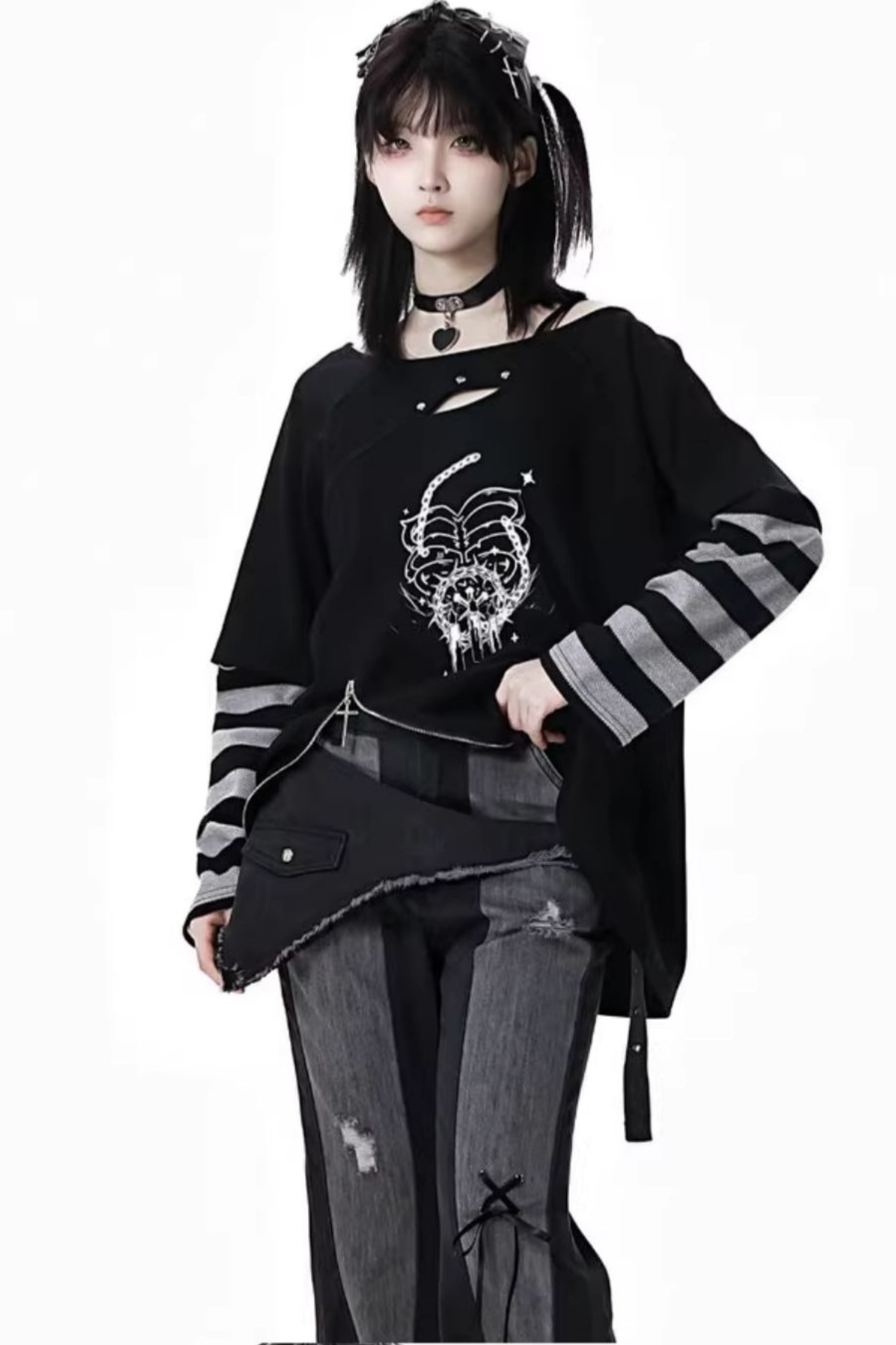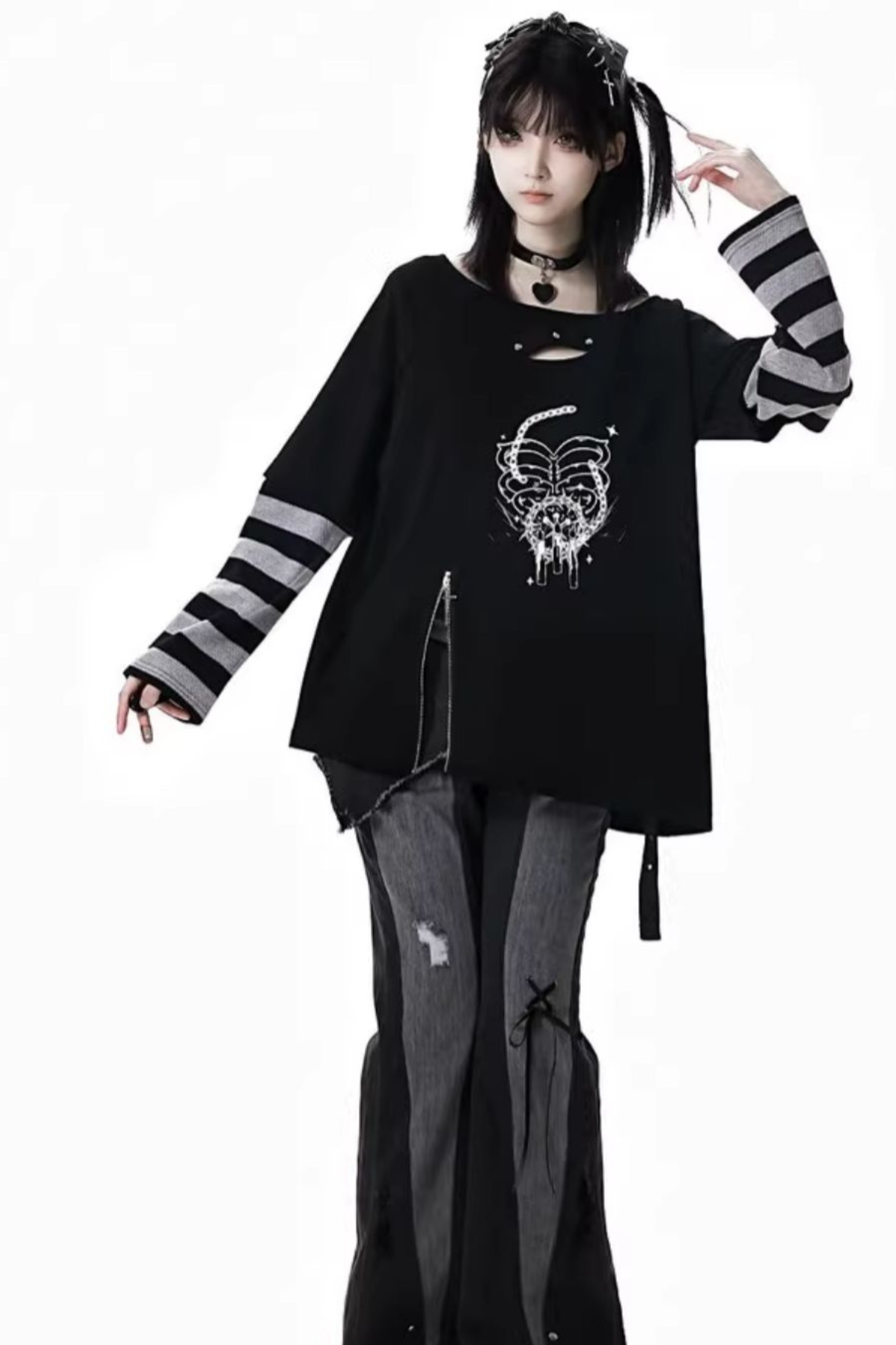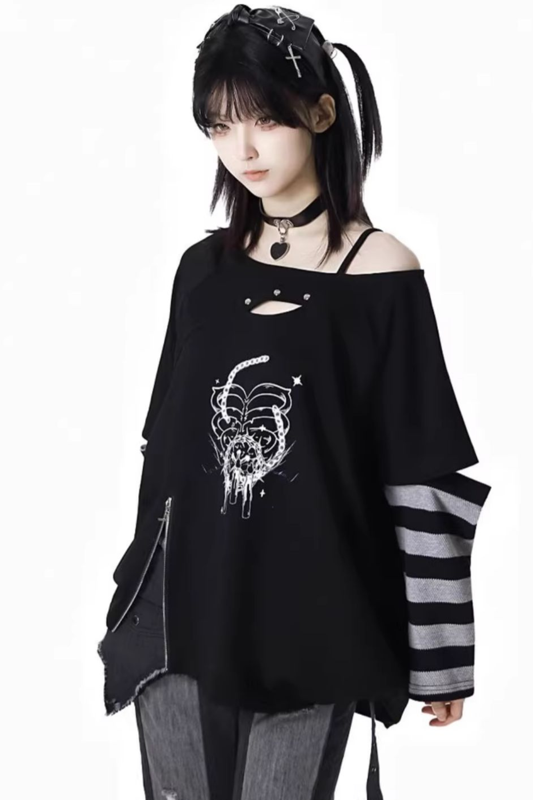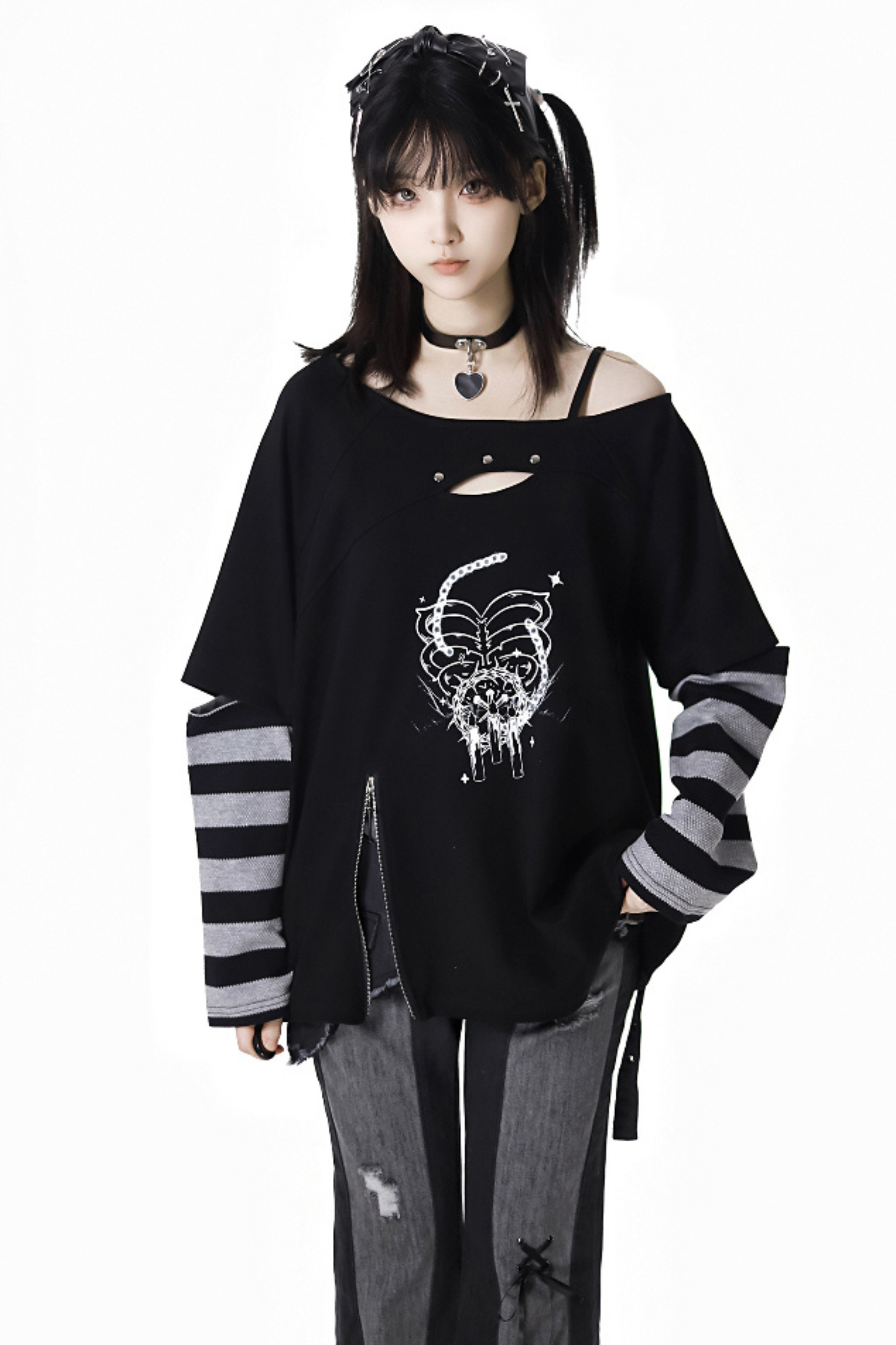 ホワイトとピンクのロリータボンネットチョーカー