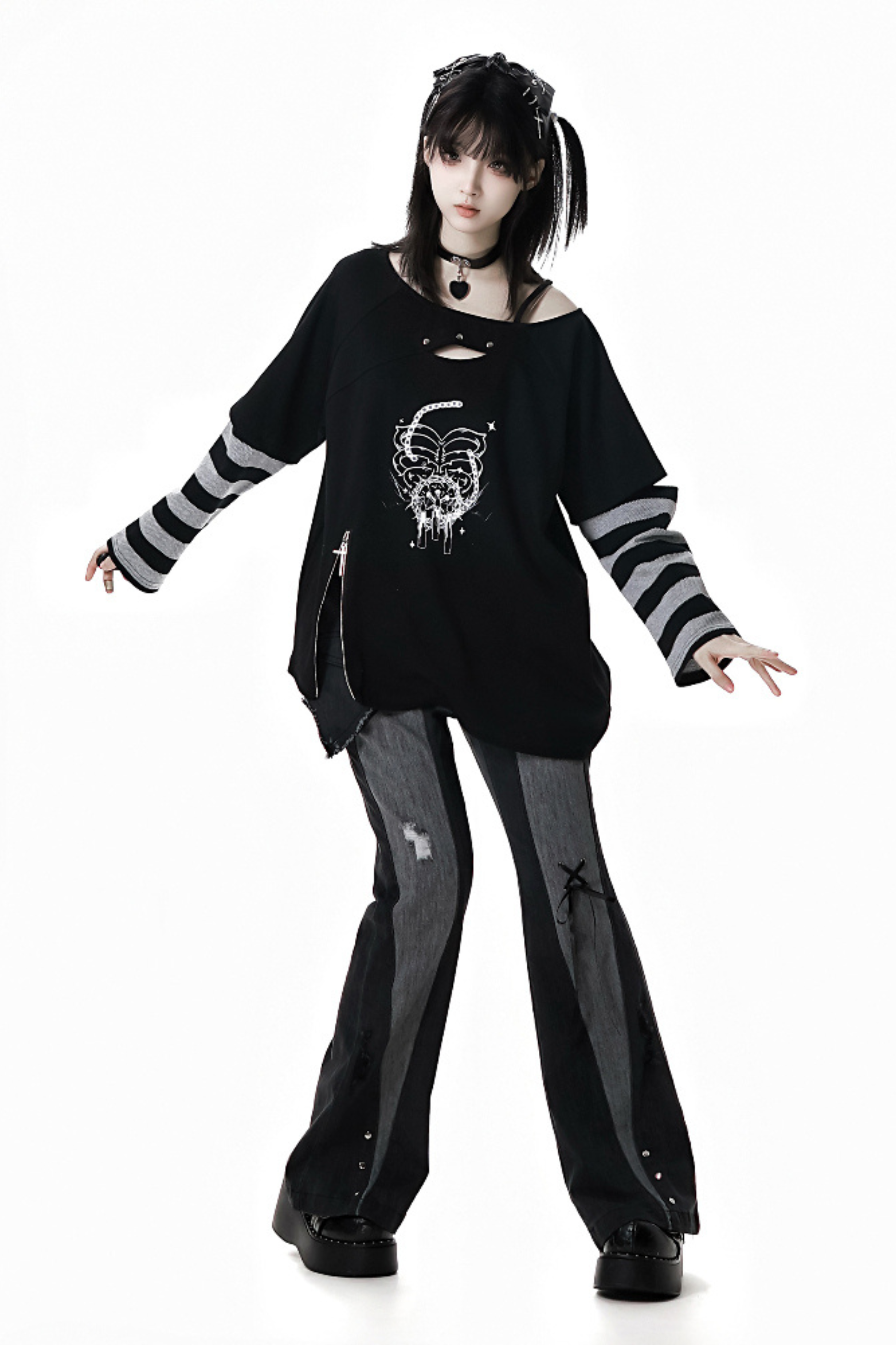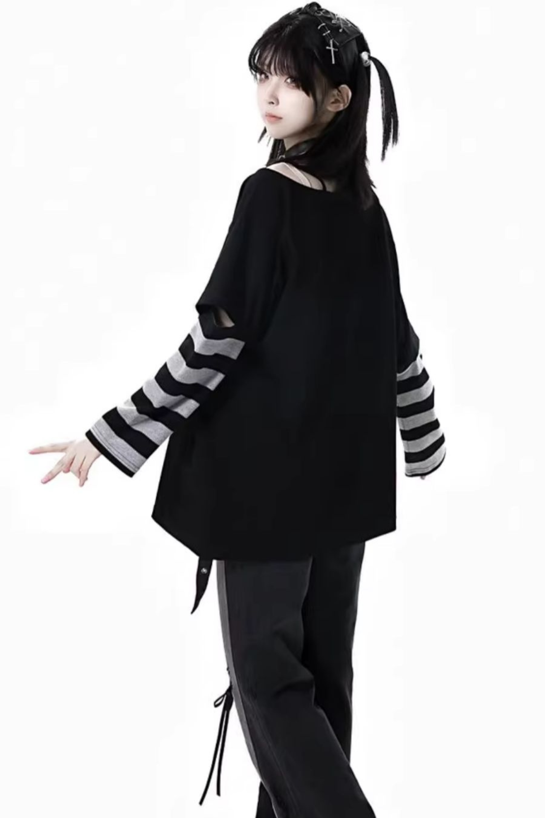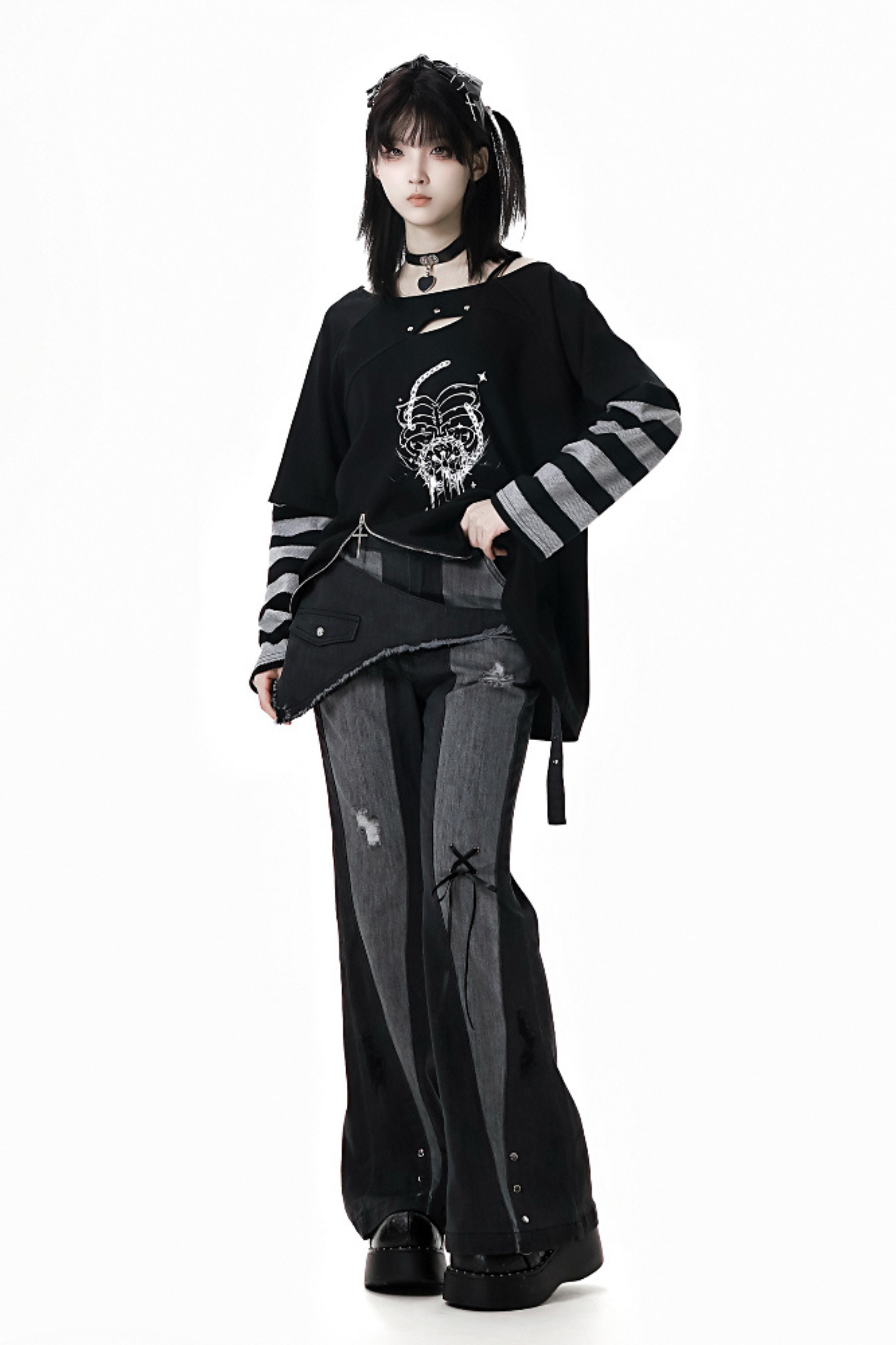 黒と白のオールドスクールロリータファッションドレス蝶結びロリータJSKセット