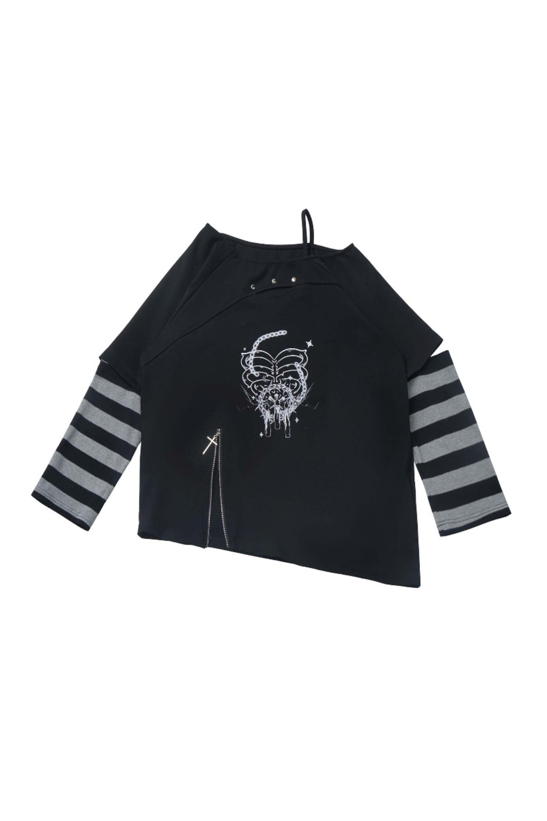 ❤パッチワークスリーブクールボーダートップス❤