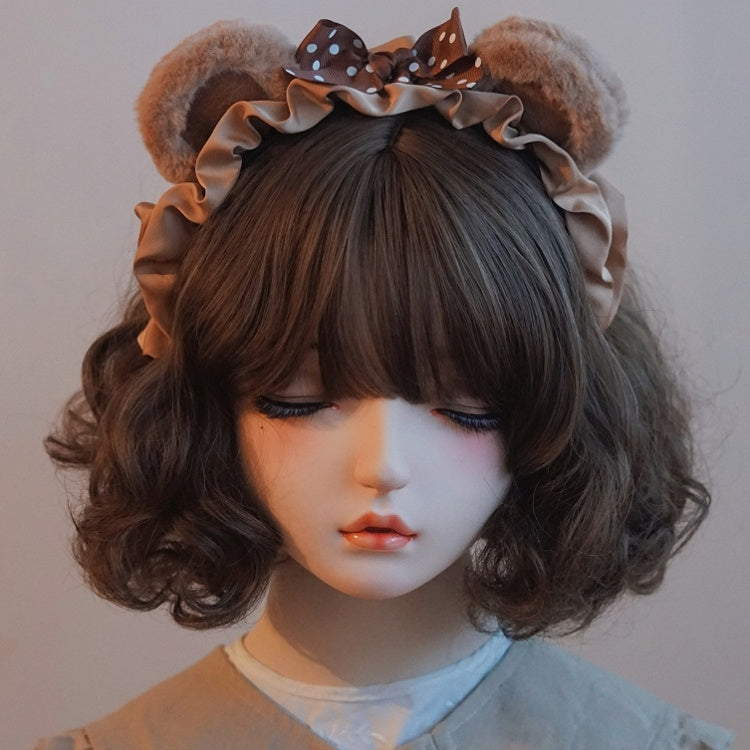 パターン耳蝶結び水玉ブラウン詳細クマKC