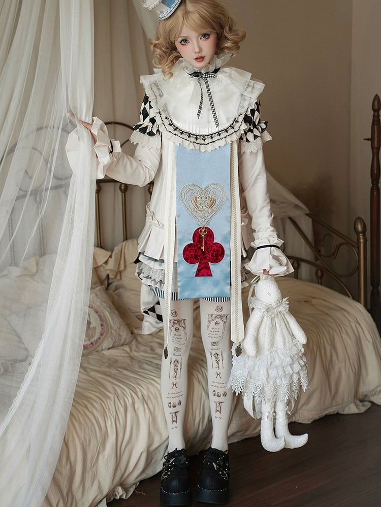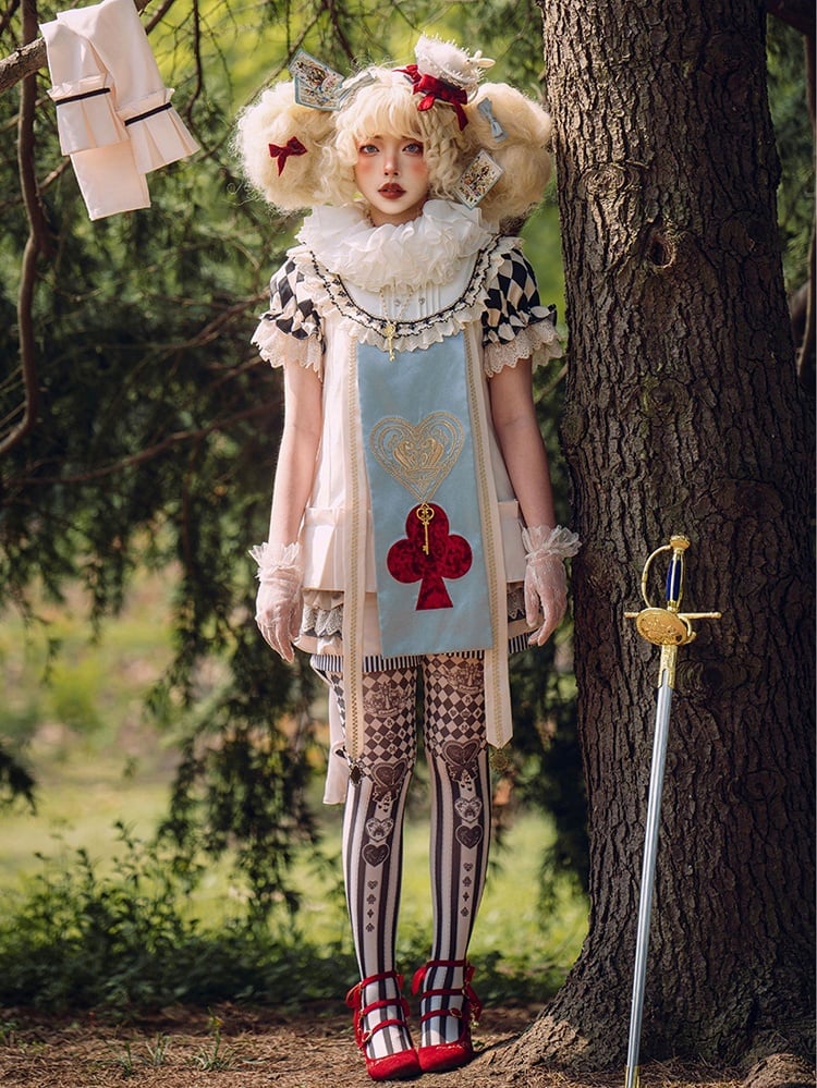 青と白のオールドスクールロリータファッションドレス 蝶結びディテール JSK セット