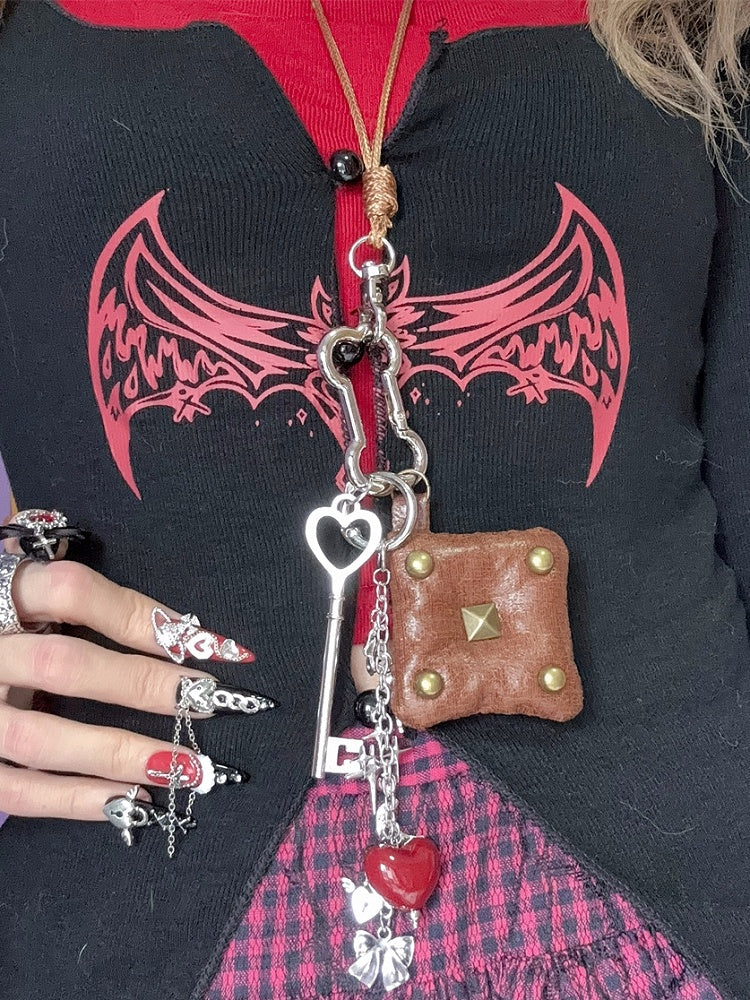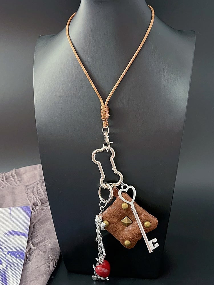 ペンダントパンクネックレスハートとウェイストランドブラウンキー