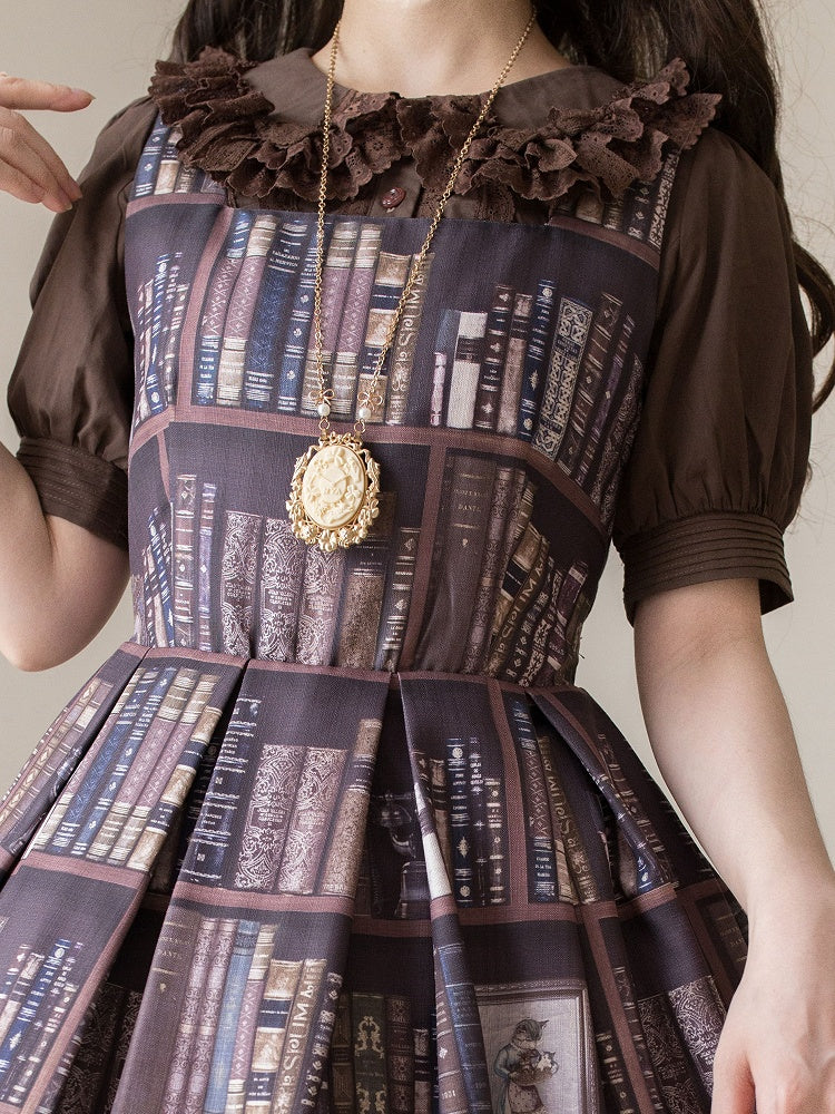 ピーターショートコーヒーブラウススリーブパフパンカラーコットン