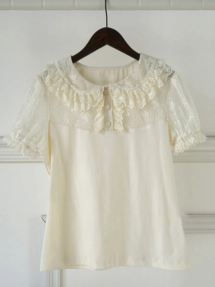 アプリコットのピーターパンカラー半袖ロリータブラウス