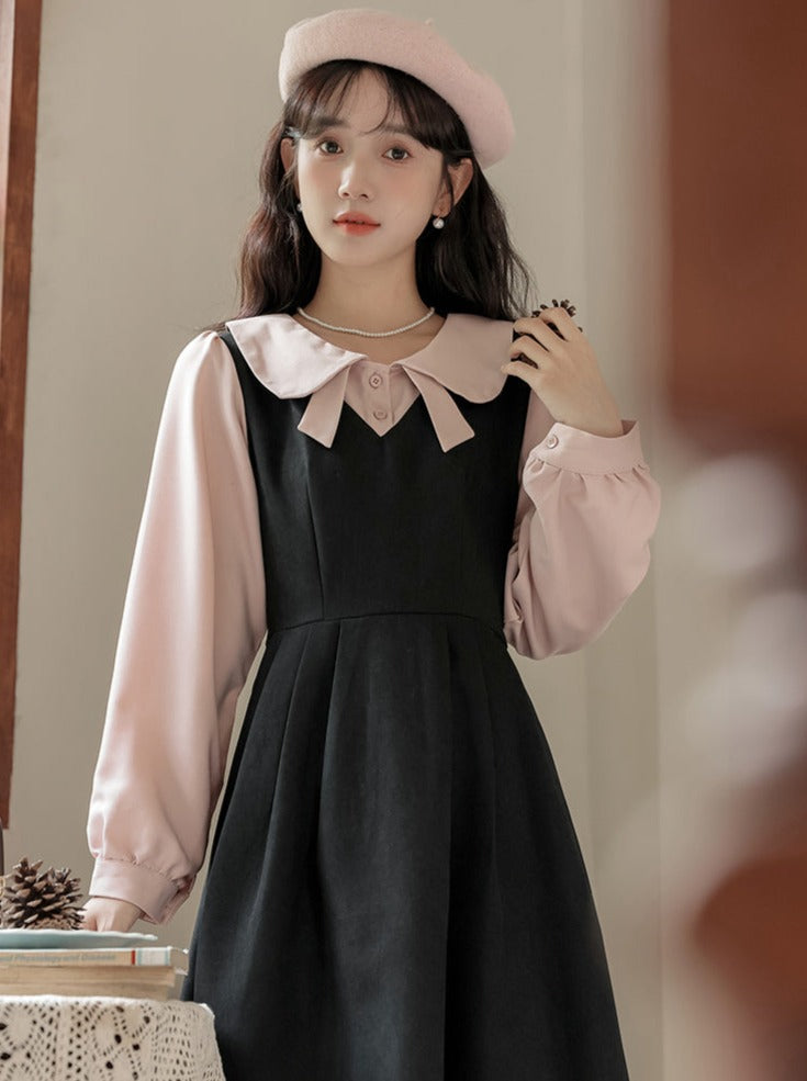ピースフェイクミドルプレッピースタイルツーフレンチドレス