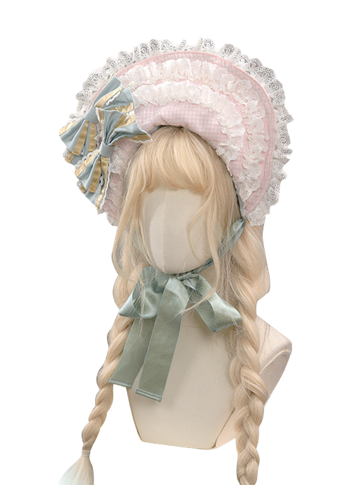 ピンクとブルーのロリータボンネット