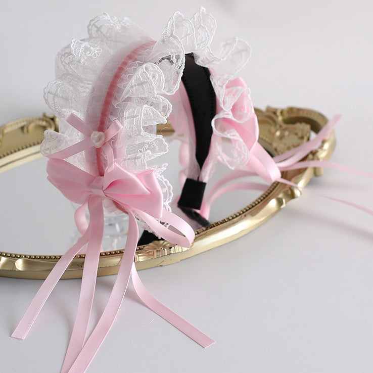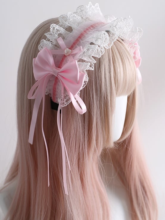 ピンクと白のスイートロリータレーストリム蝶結びKC