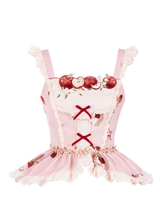 ピンクのアップル刺繍ネックラインタンクトップ