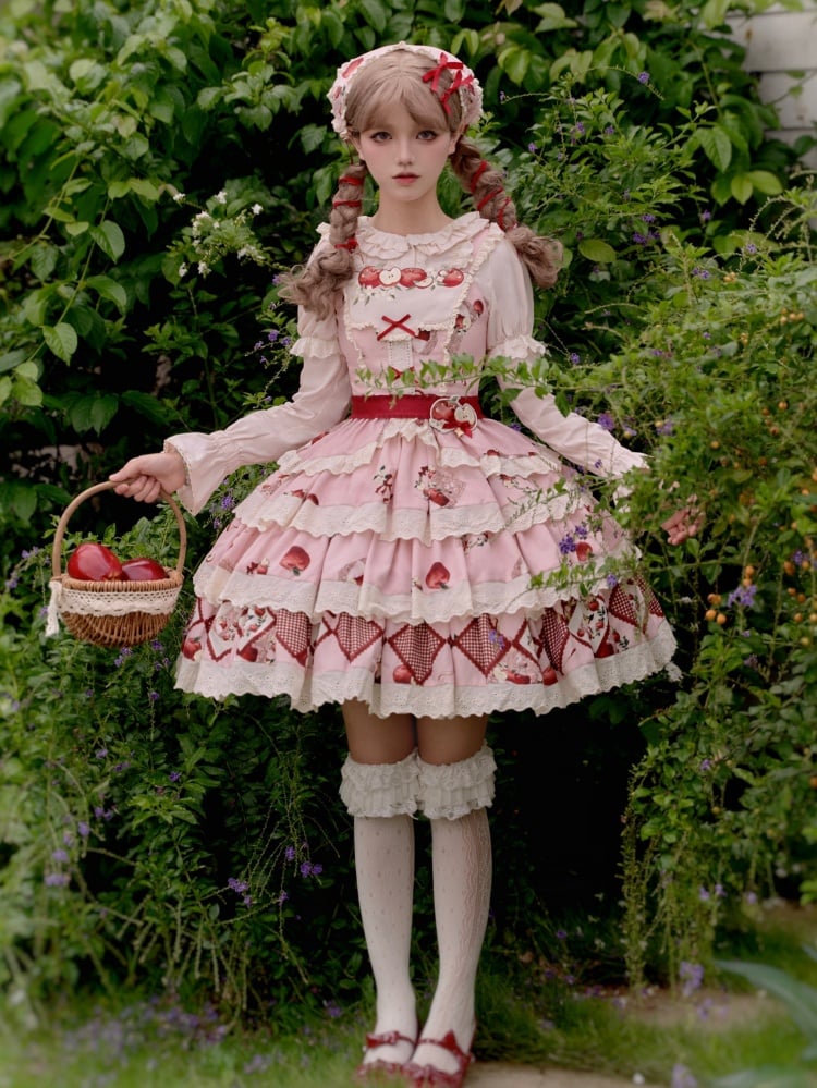 ピンクと白のオールドスクールロリータファッションドレス、蝶結びディテール、ロリータJSKセット
