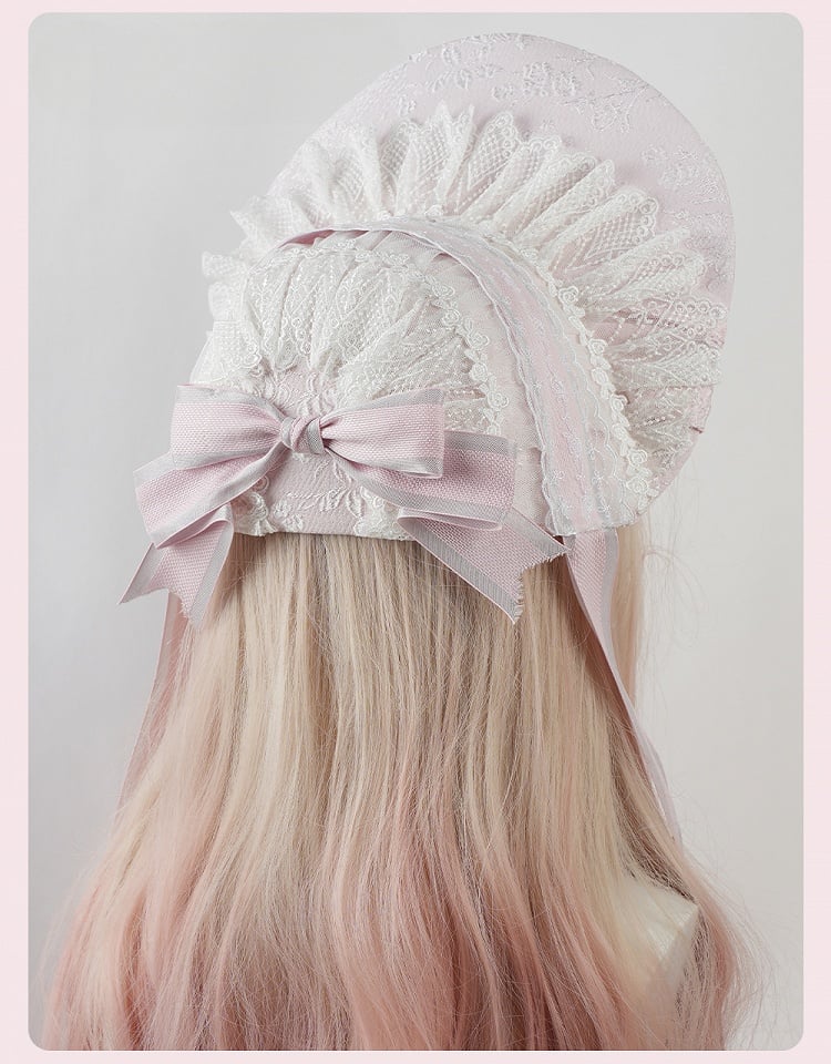 ピンクの大きなリボンと花柄のフリルレーストリムが特徴のロリータボンネットは、キュートでチャーミングなルックを完成させるのにぴったりのアクセサリーです。大きなリボンと繊細なレーストリムが、どんな装いにも甘さをプラス。この素敵なボンネットで、スタイリッシュで愛らしい装いを演出しましょう。