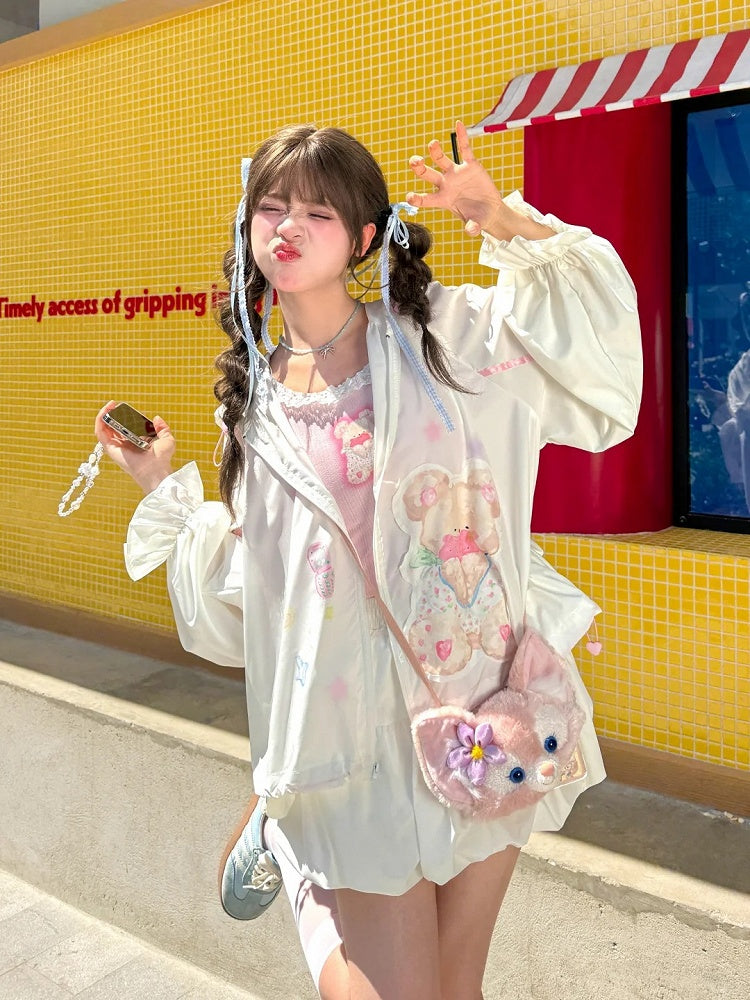 ピンクと白のオールドスクールロリータファッションドレス、蝶結びディテール、ロリータJSKセット