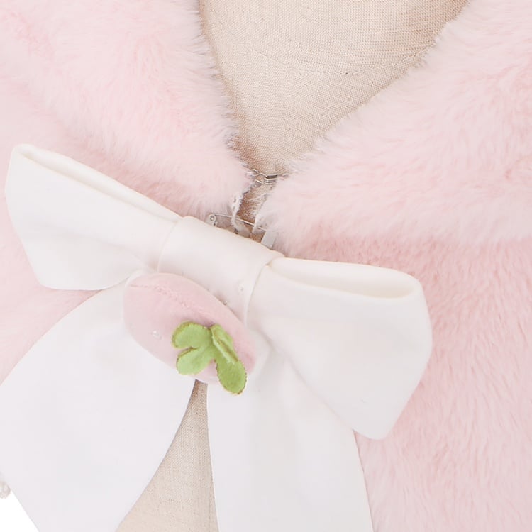 ピンクのうさぎ耳のぬいぐるみフード付きケープ(イチゴの蝶結び付き)