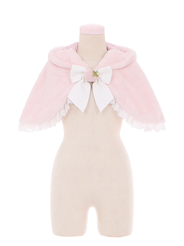 ストロベリーリボンとピンクのうさぎ耳がデザインされた、遊び心あふれるフード付きケープ。フードには愛らしいピンクのうさぎ耳をあしらった、魅力的なケープです。ケープ全体には、甘美なストロベリーリボンがあしらわれ、縁取りの繊細なレースのトリムが美しく映えます。とびきり柔らかなプラッシュ素材を使用し、暖かさとスタイリッシュさを両立しています。